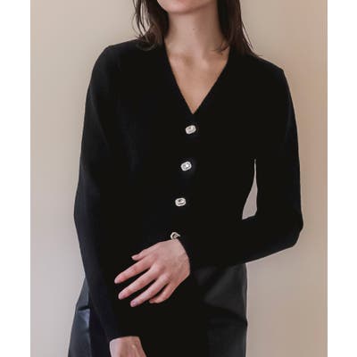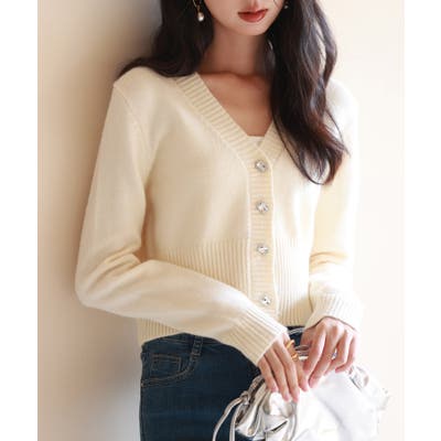 華やかなビジューボタンが映える、2wayのショート丈カーディガンです。