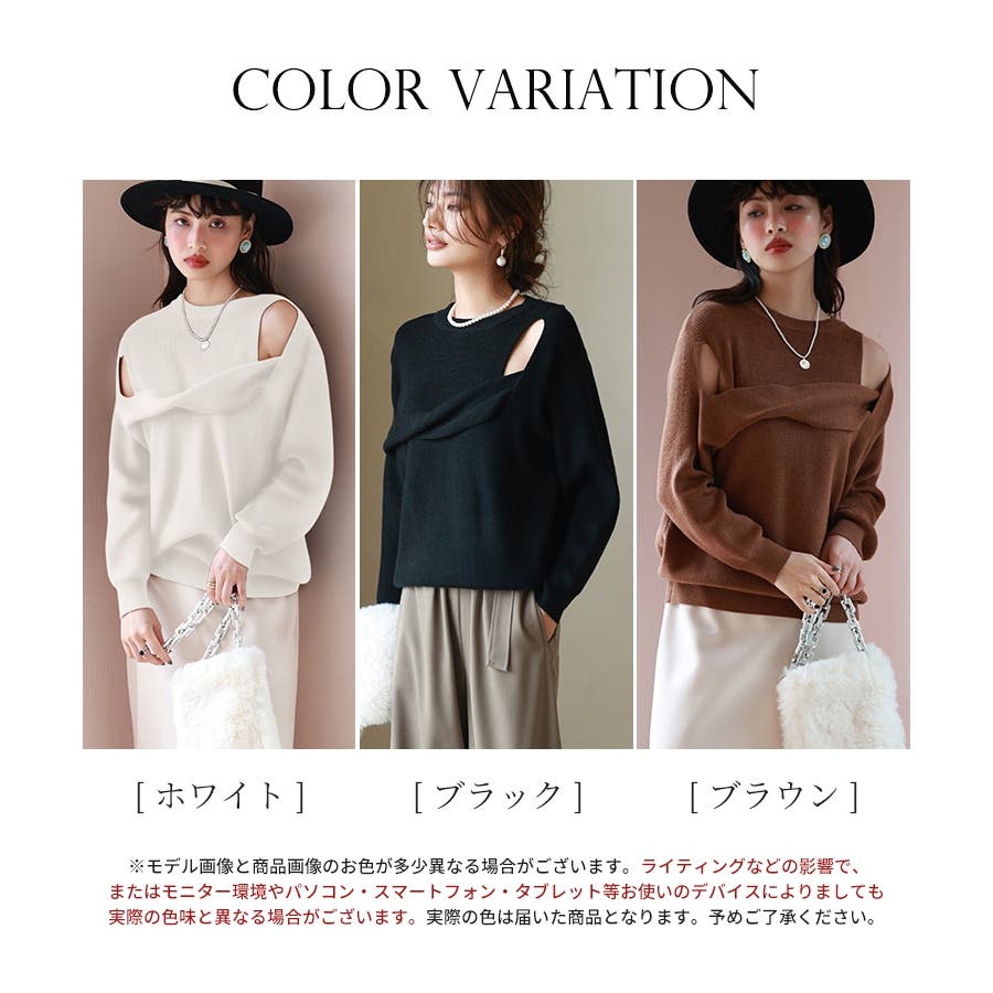 トレンドの肌見せコーデがオシャレにきまるショルダースリットのニットプルオーバー。