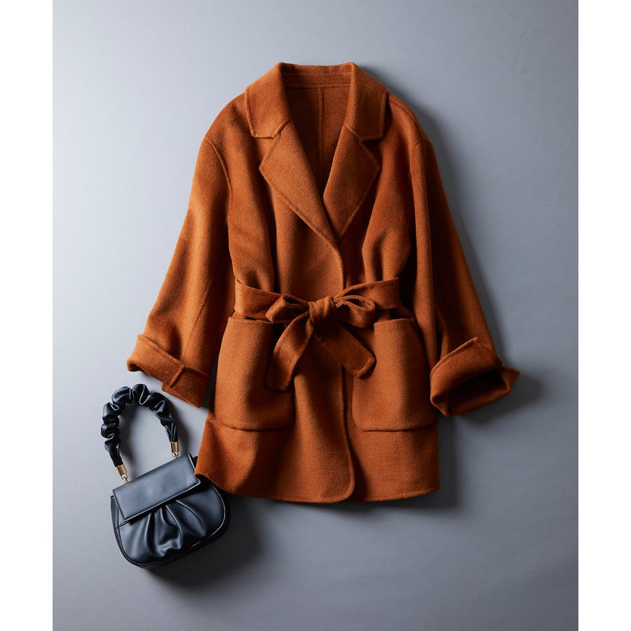 ヒップが隠れるくらいの丈感でパンツルックとも相性抜群なダブルフェイスのガウンコート。