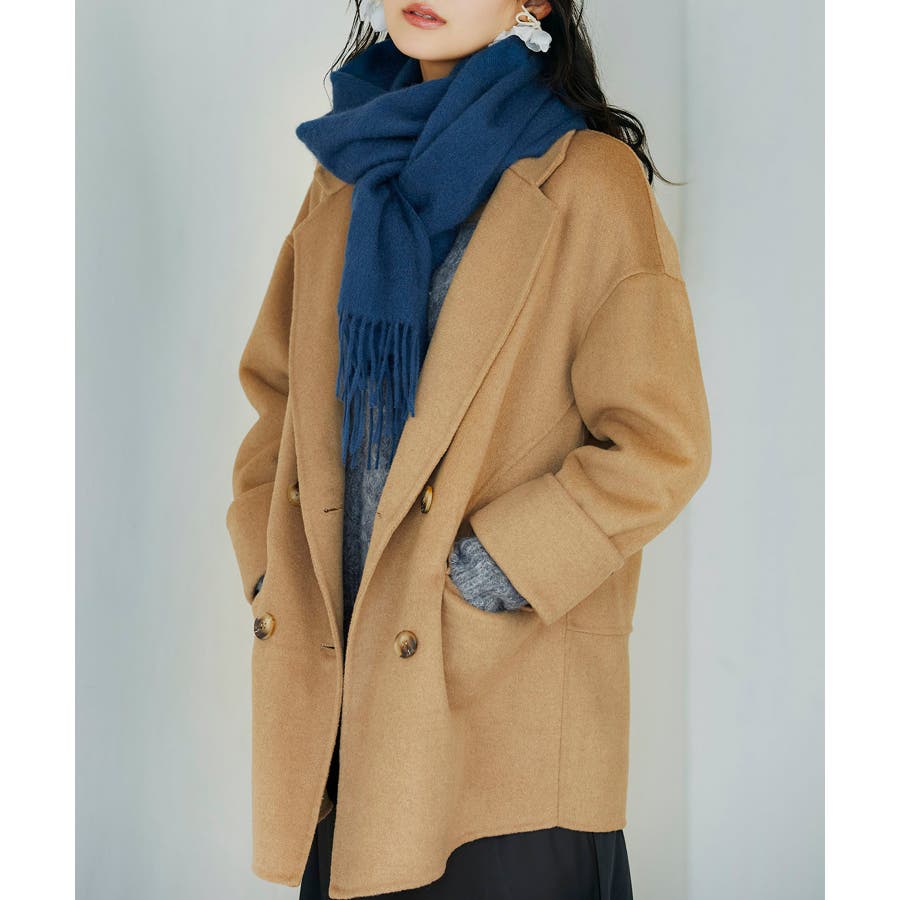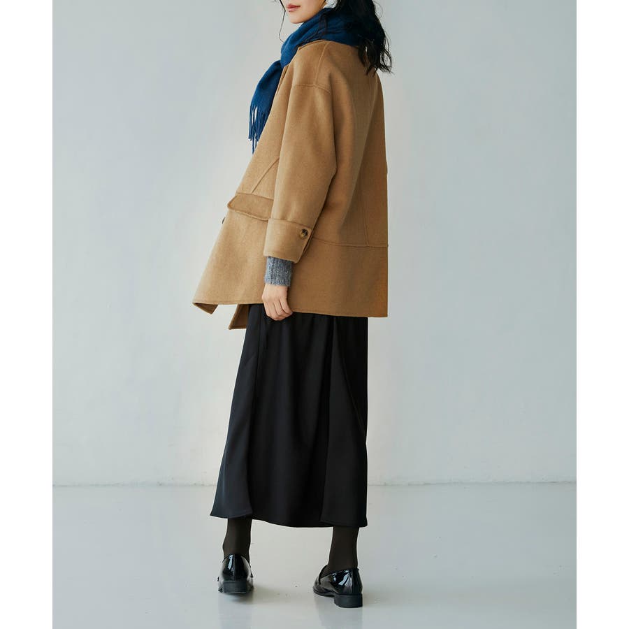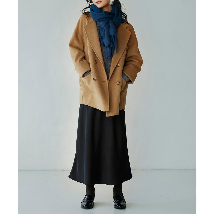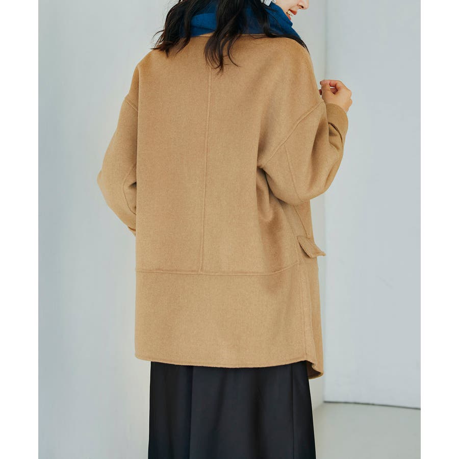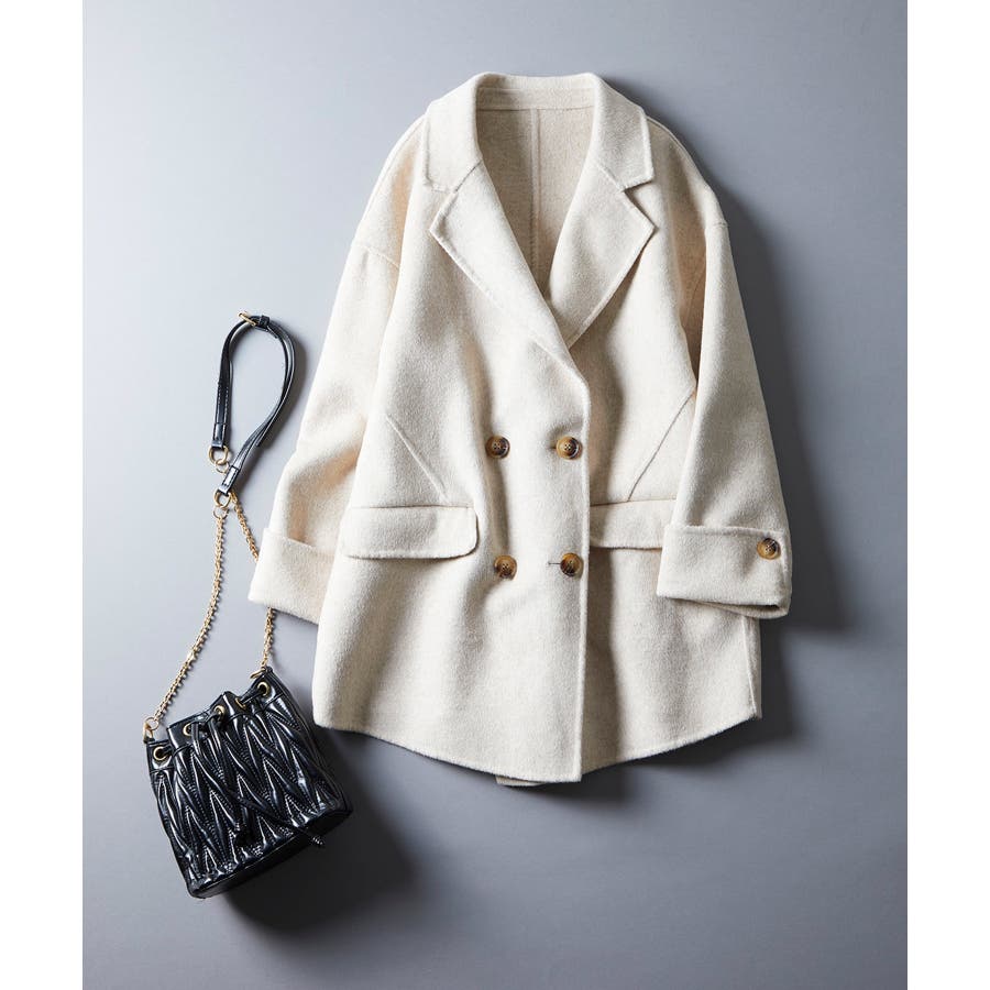 丸みのあるドロップショルダーとワイドシルエでいつものコーデを今っぽくアップグレードするダブルフェイスのPコート。