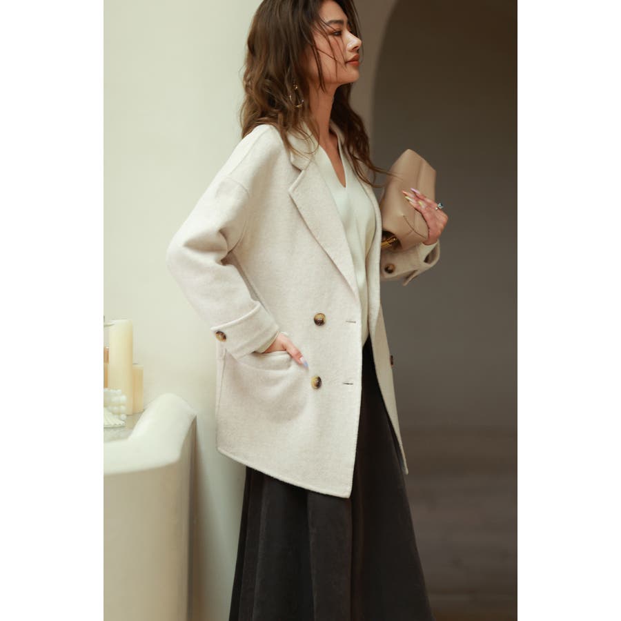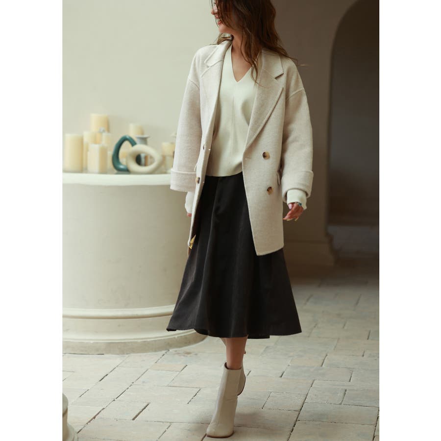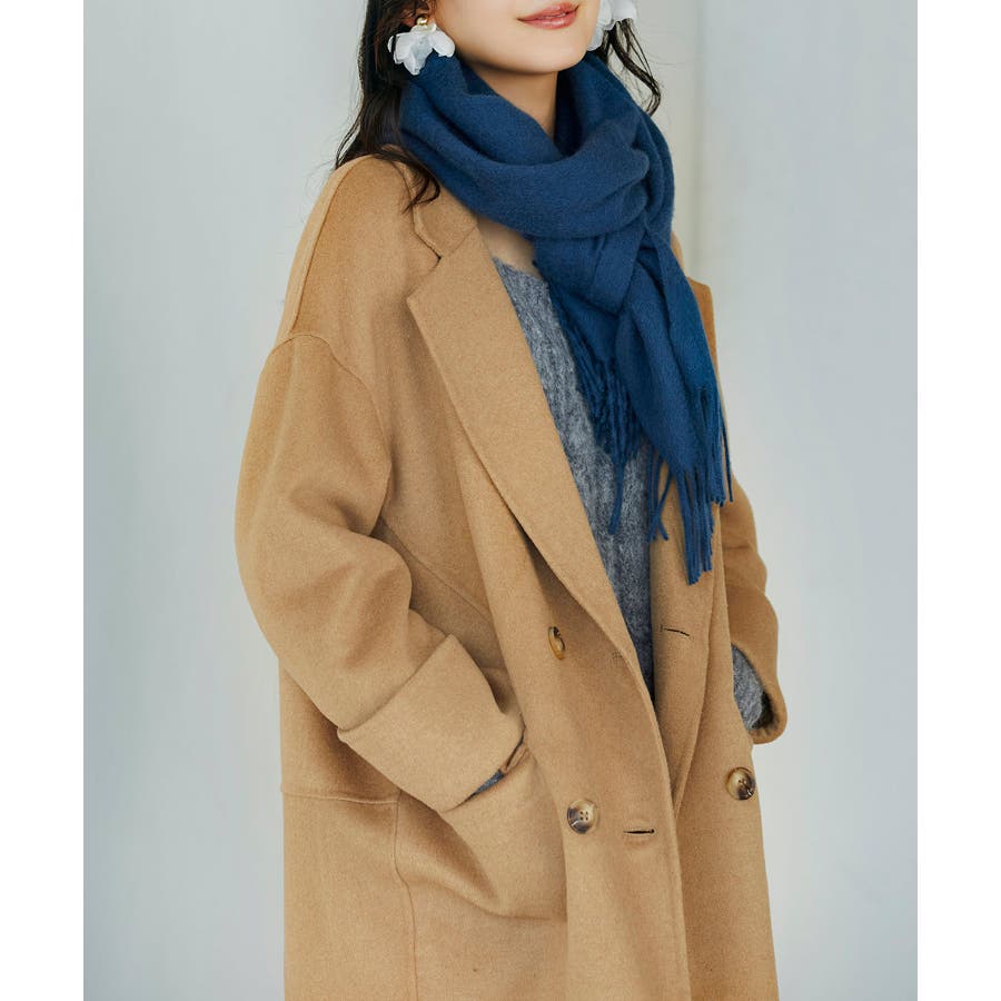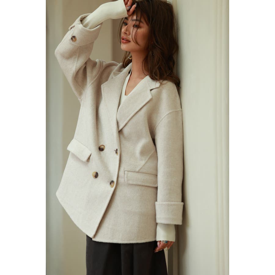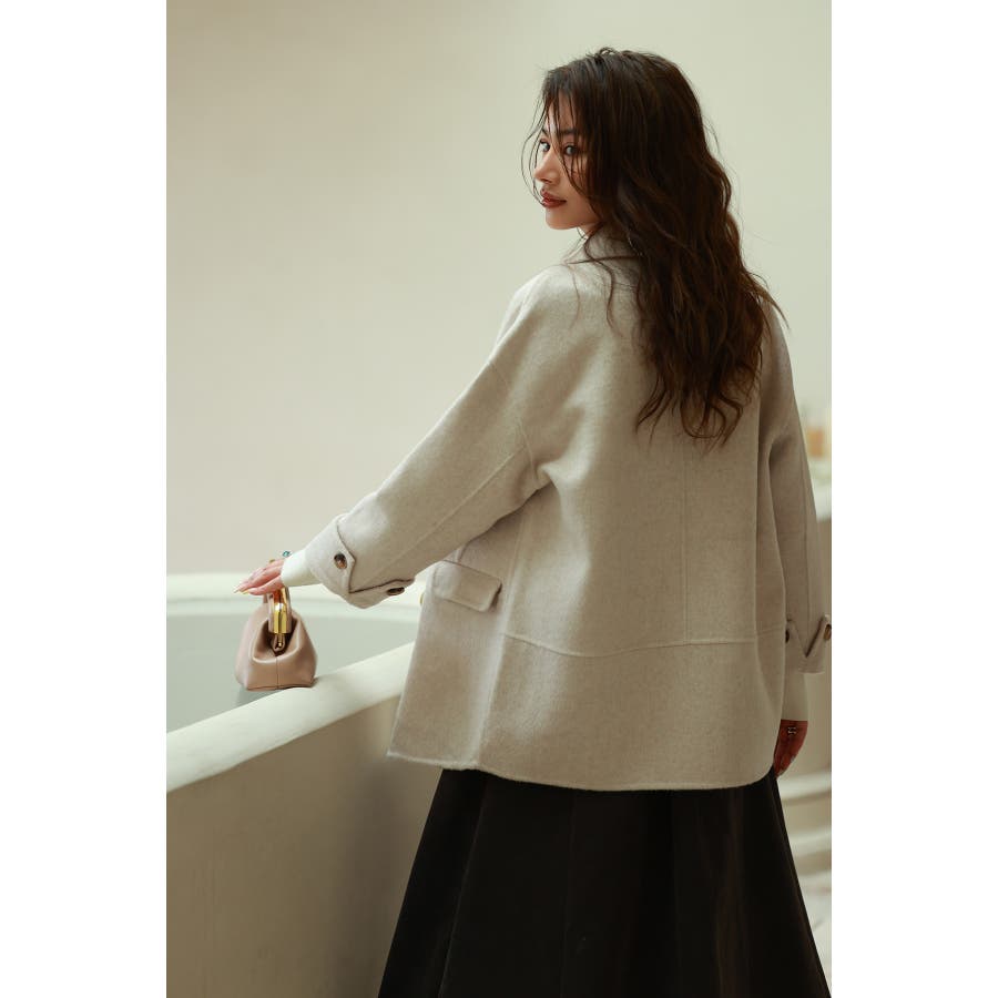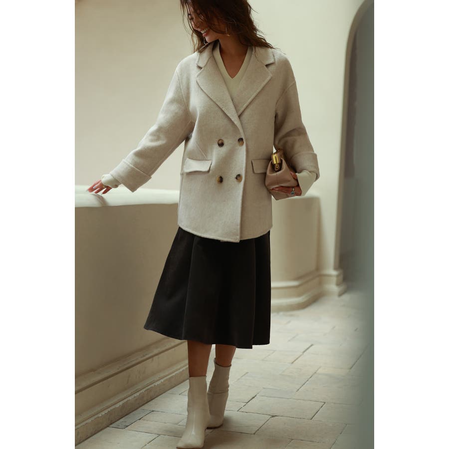丸みのあるドロップショルダーとワイドシルエでいつものコーデを今っぽくアップグレードするダブルフェイスのPコート。
