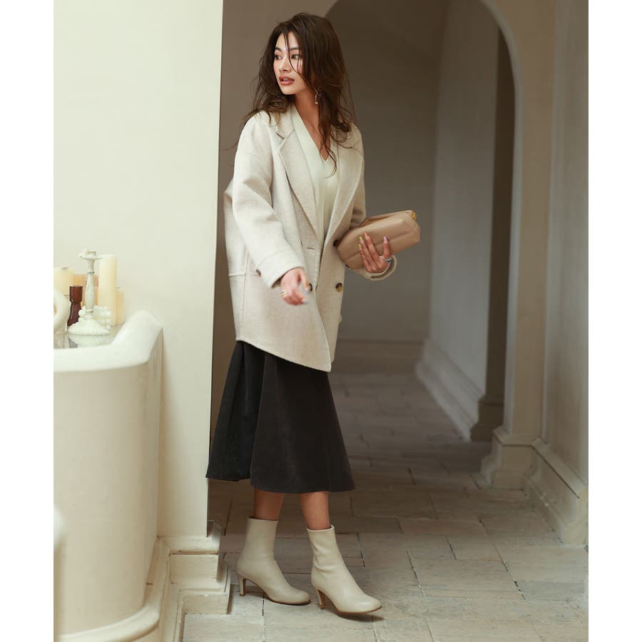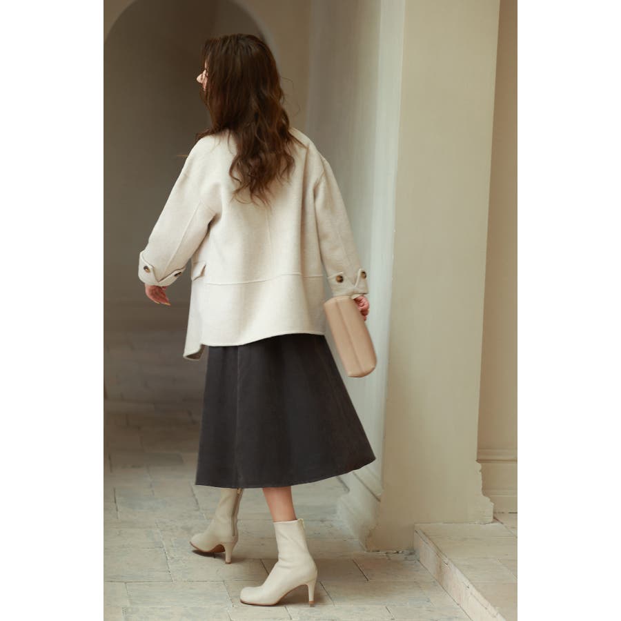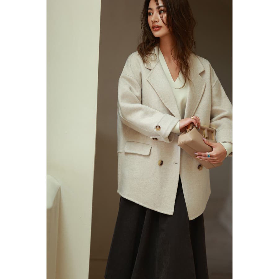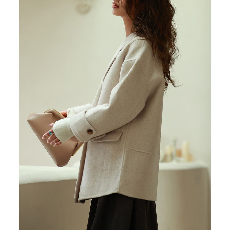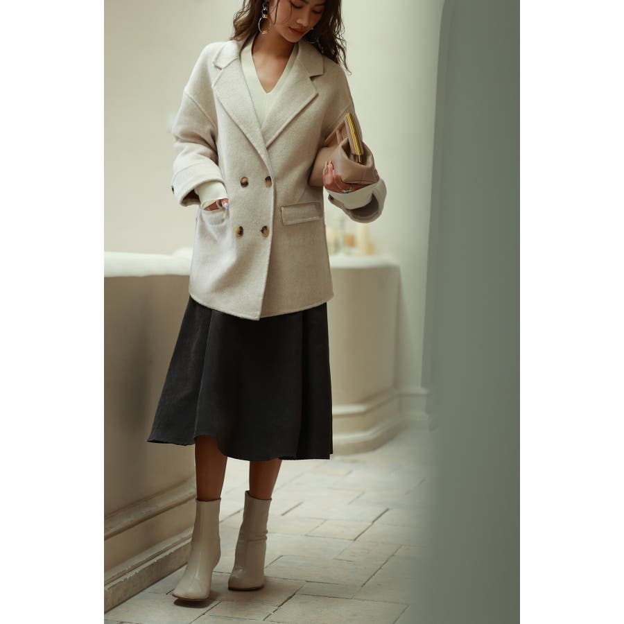 丸みのあるドロップショルダーとワイドシルエでいつものコーデを今っぽくアップグレードするダブルフェイスのPコート。
