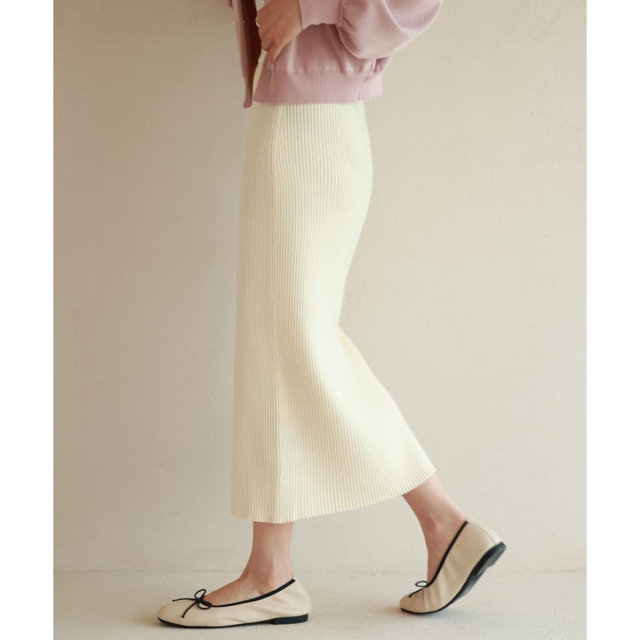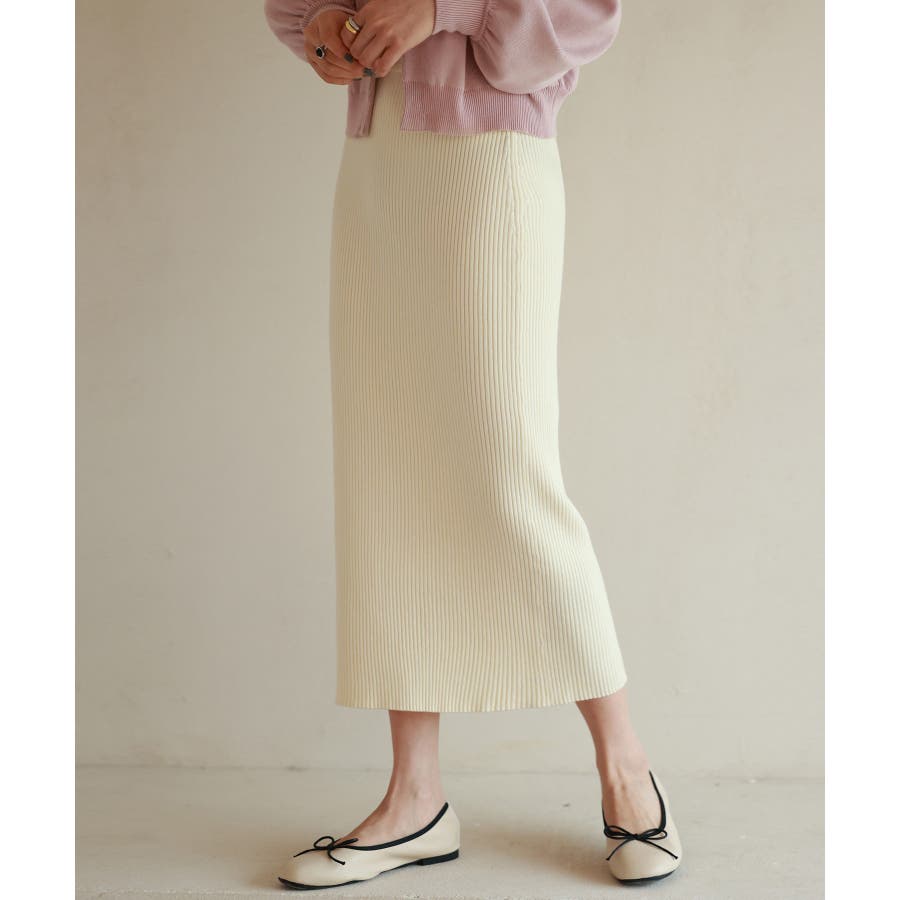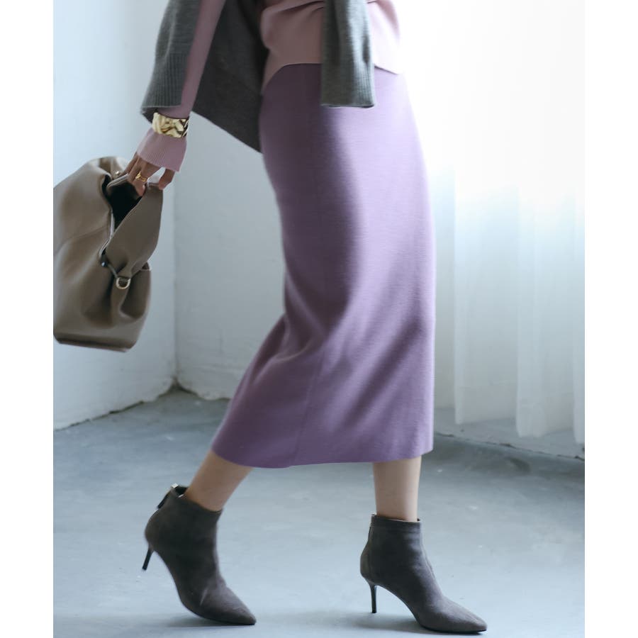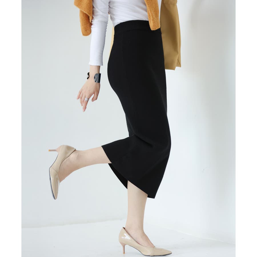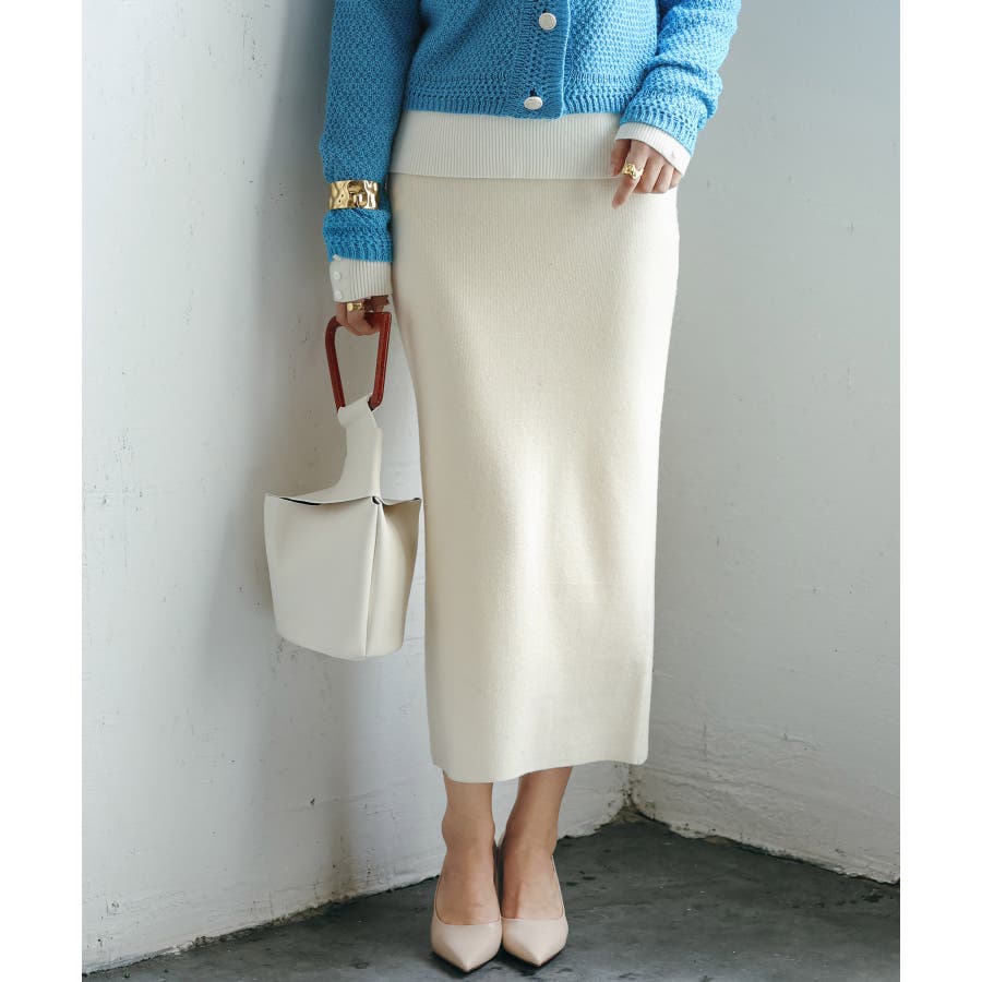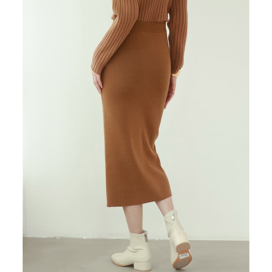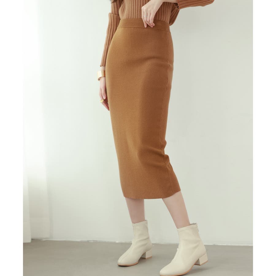 ニットのリラクシーな質感と長めの丈感でシーンを選ばず着回せるニットナロースカート。