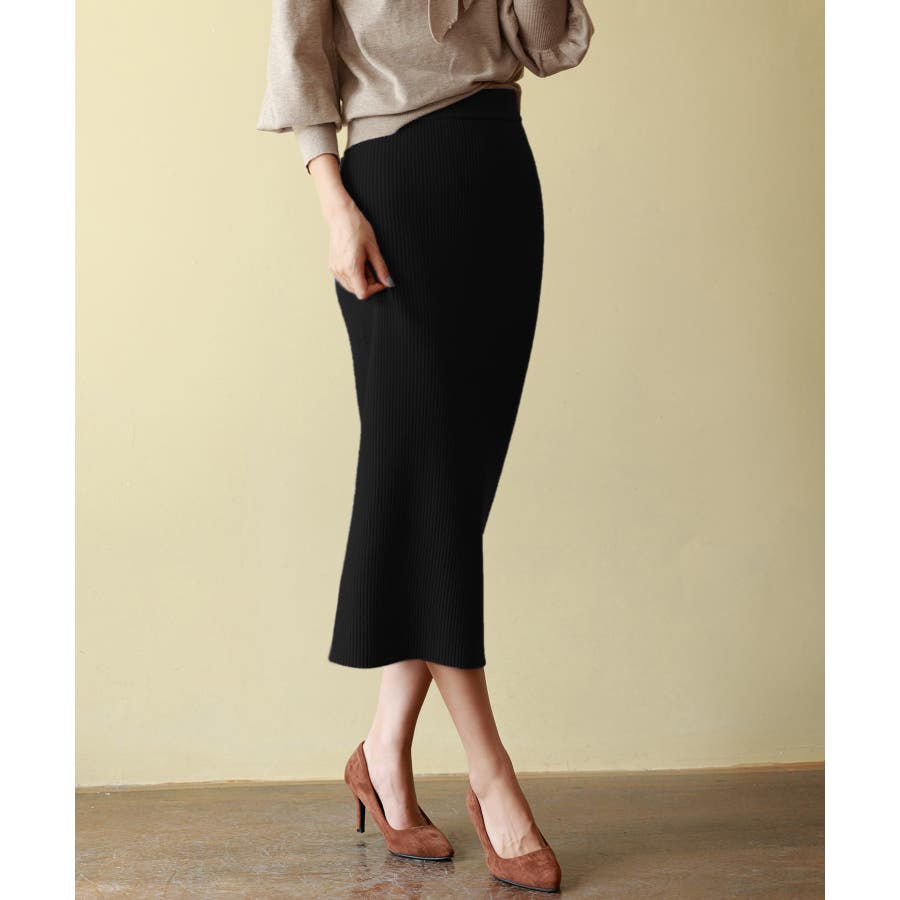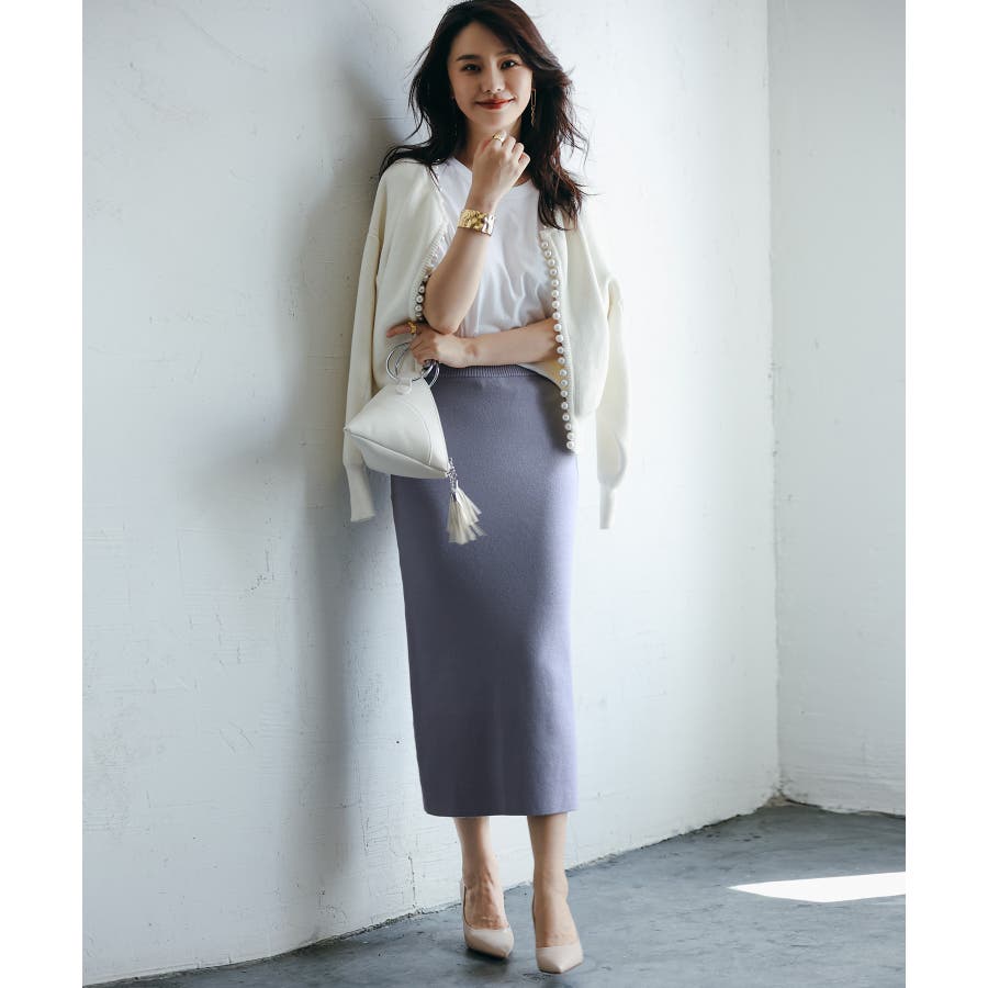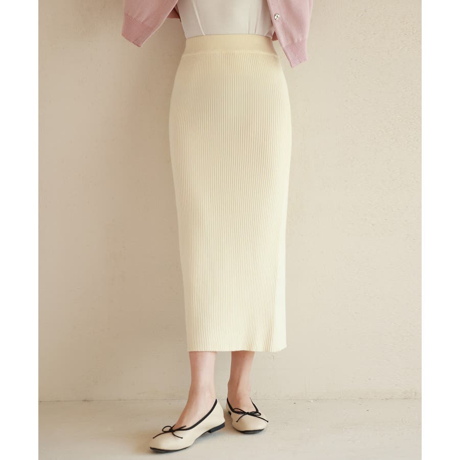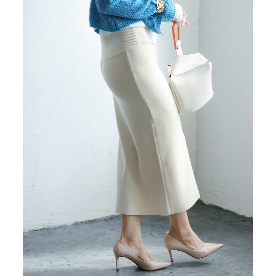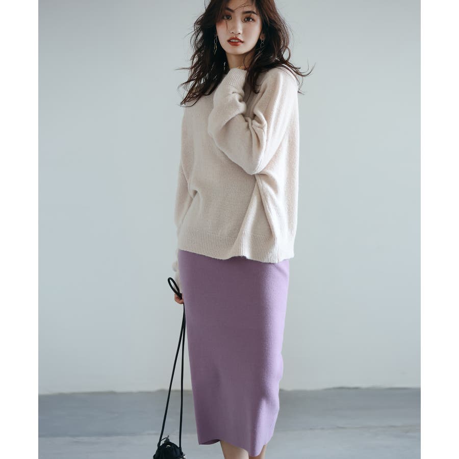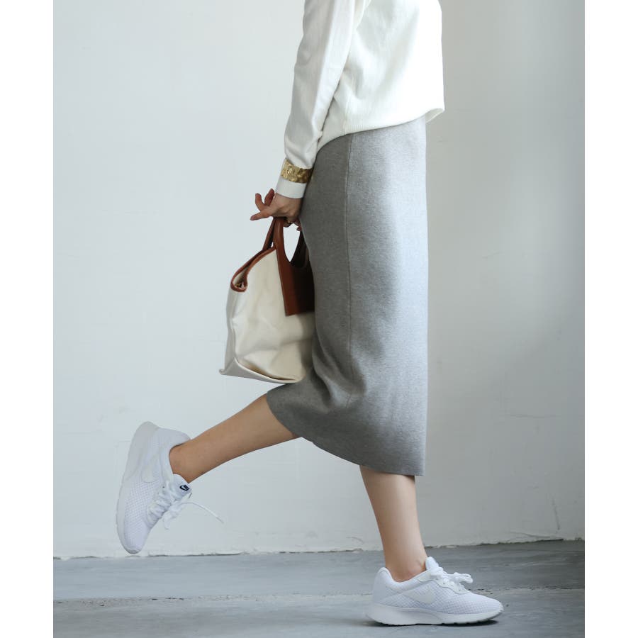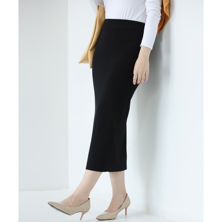 ニットのリラクシーな質感と長めの丈感でシーンを選ばず着回せるニットナロースカート。