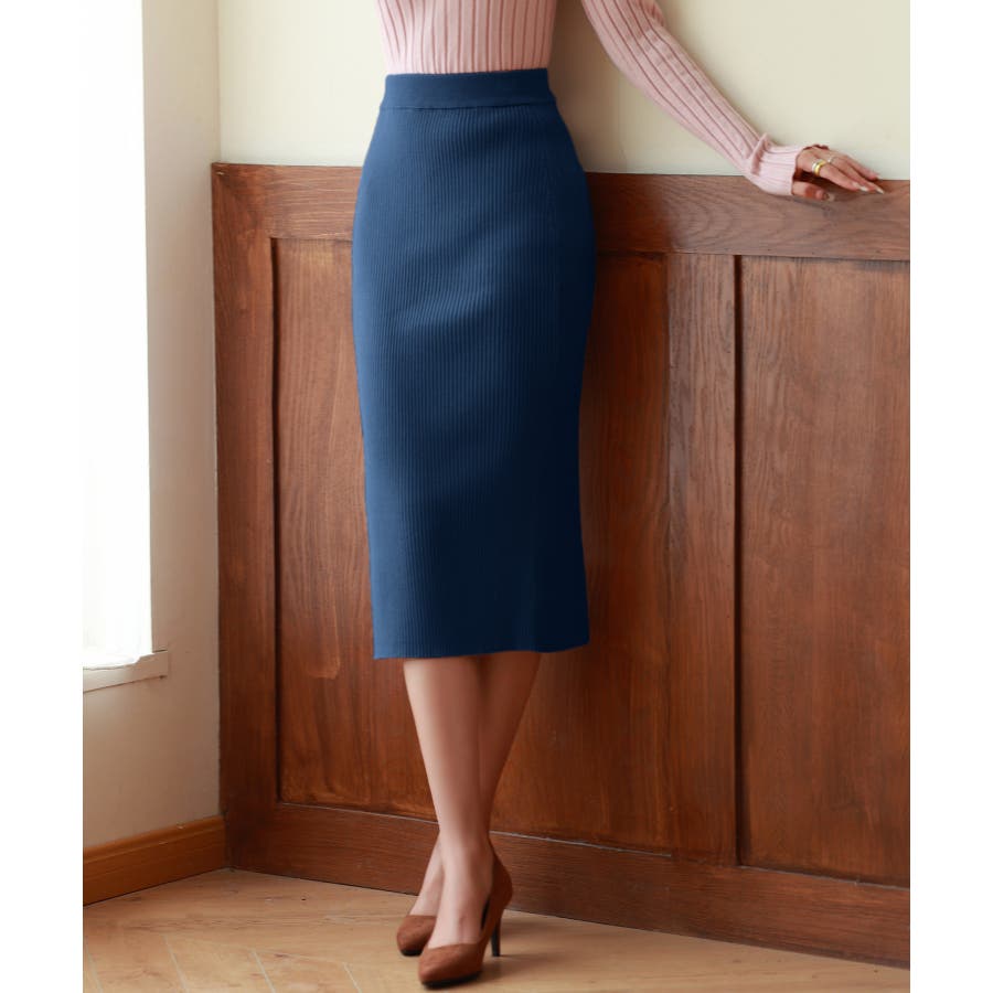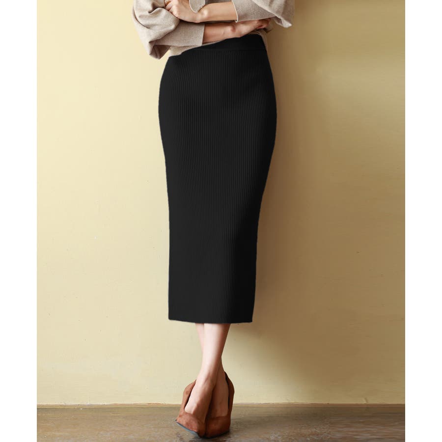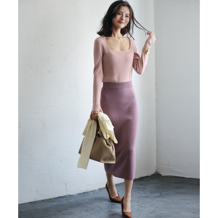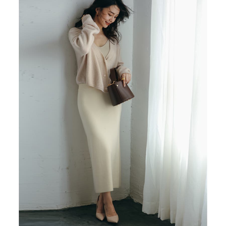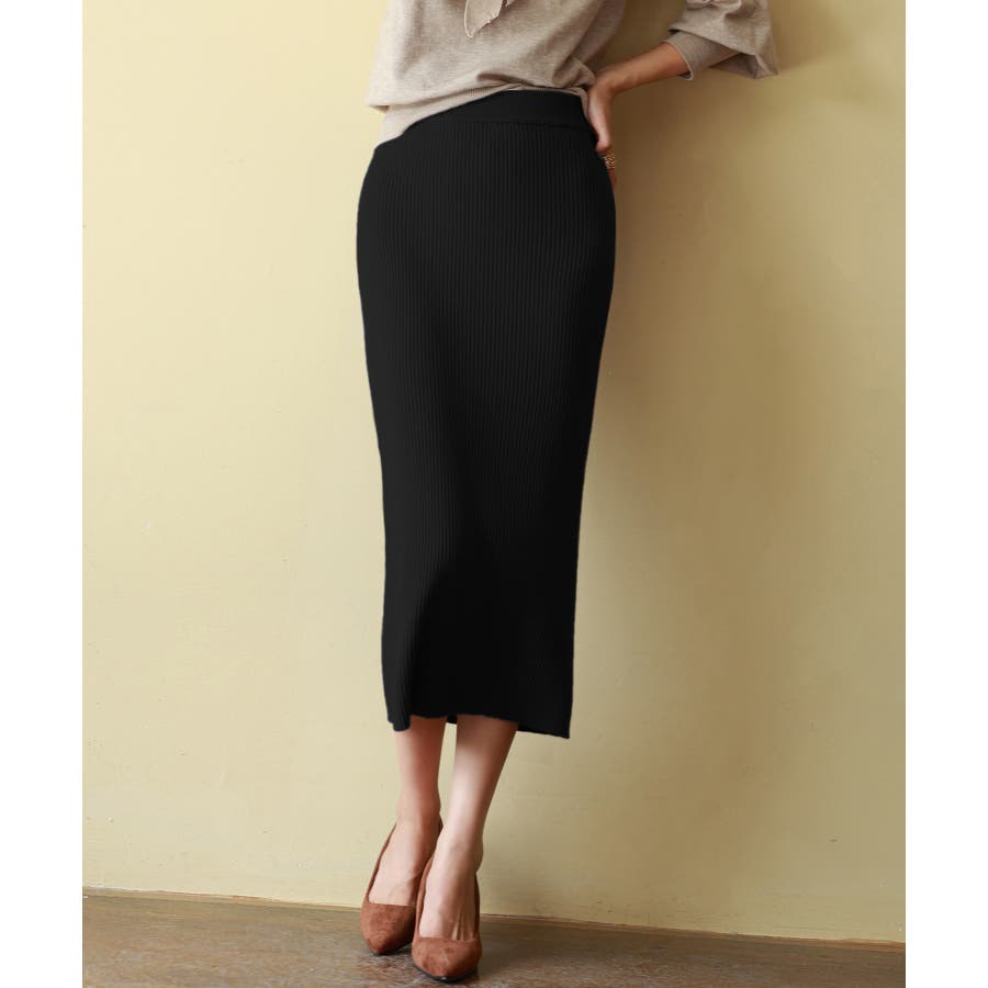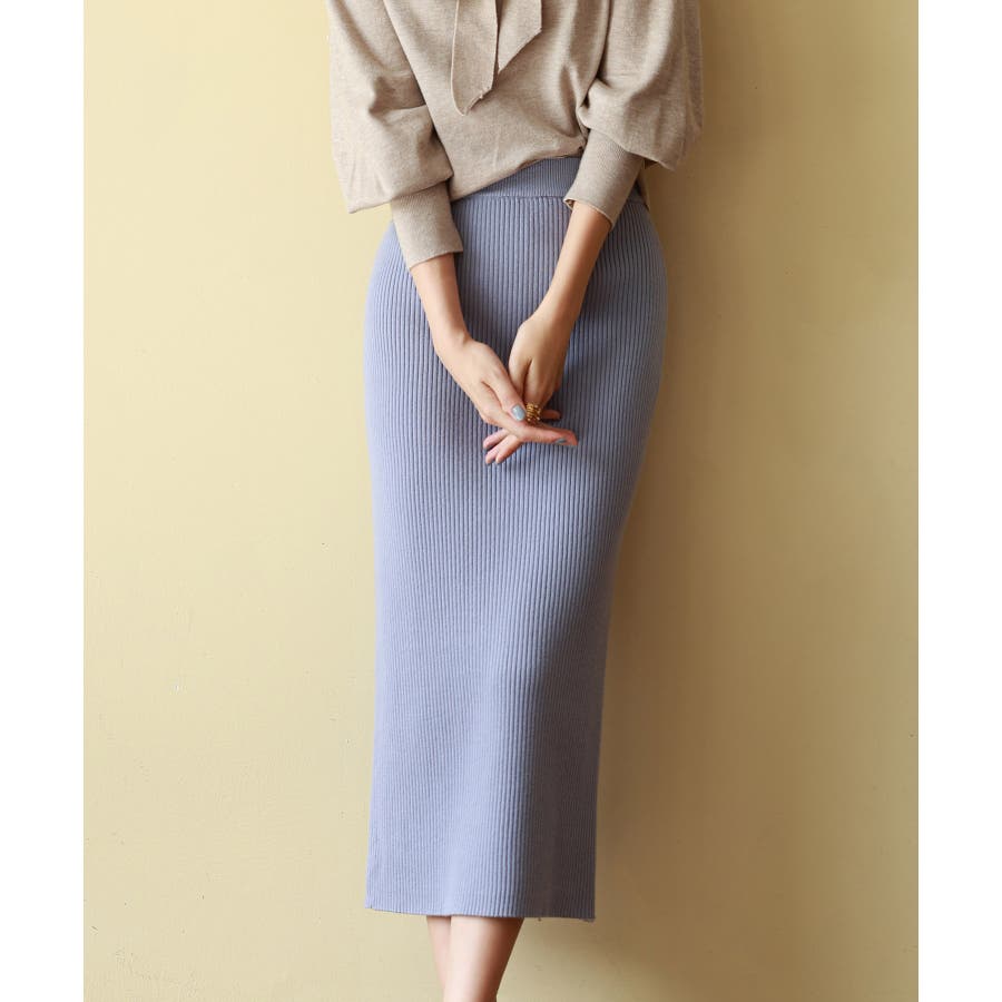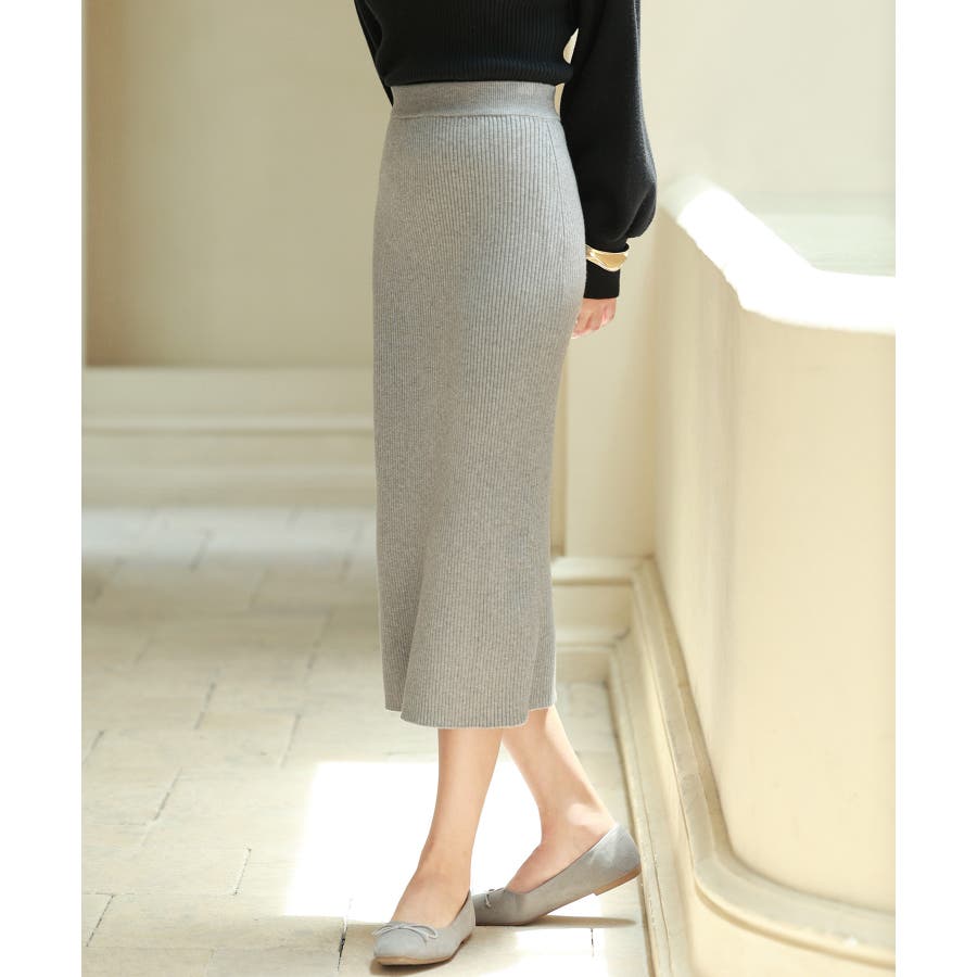 ニットのリラクシーな質感と長めの丈感でシーンを選ばず着回せるニットナロースカート。