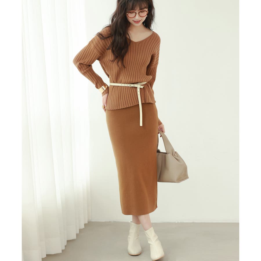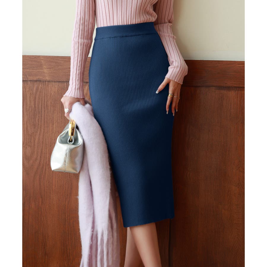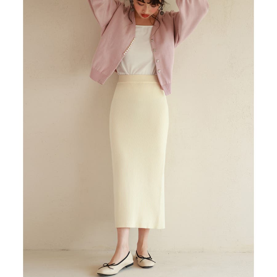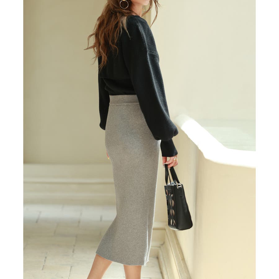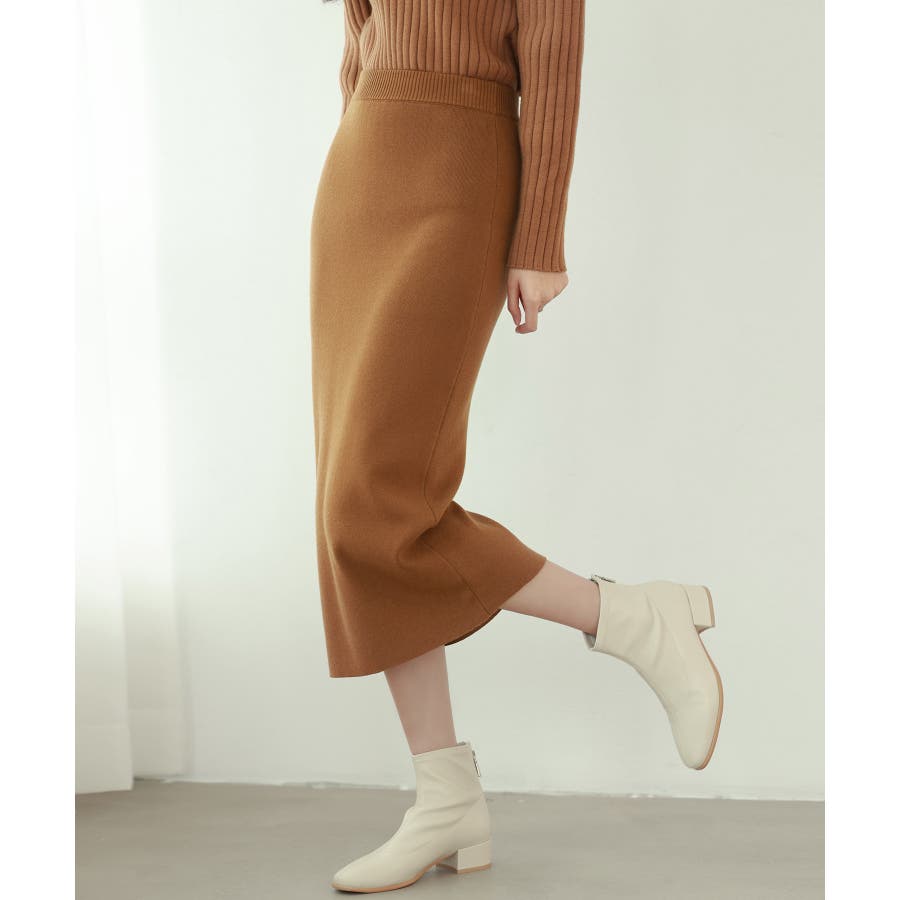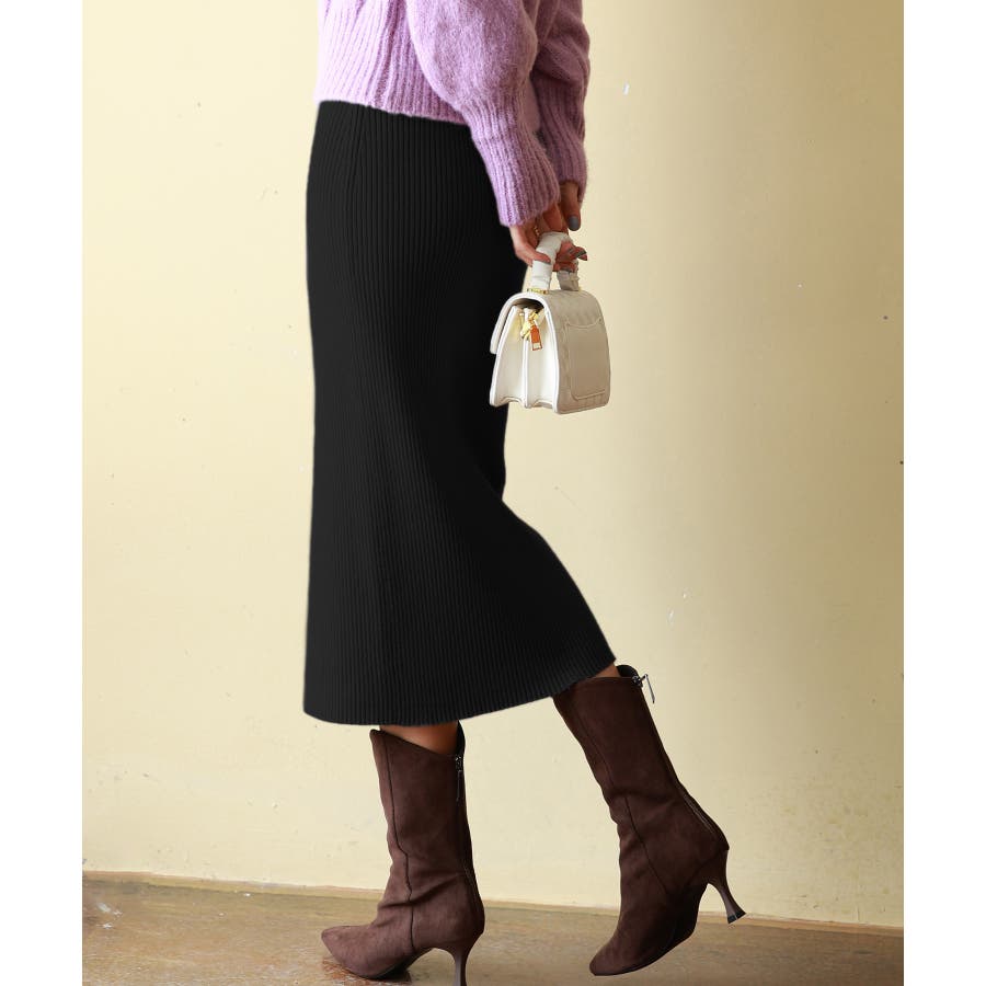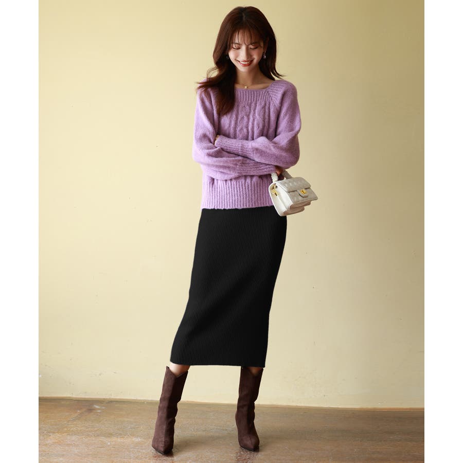 ニットのリラクシーな質感と長めの丈感でシーンを選ばず着回せるニットナロースカート。