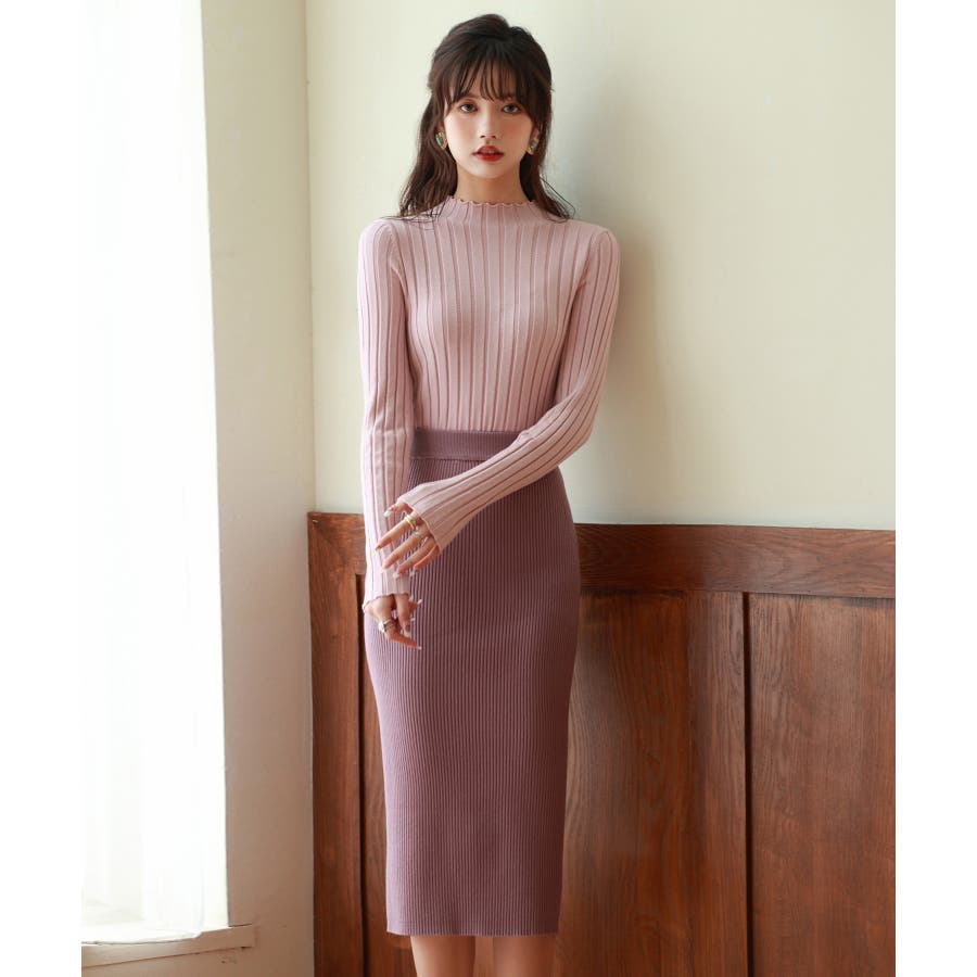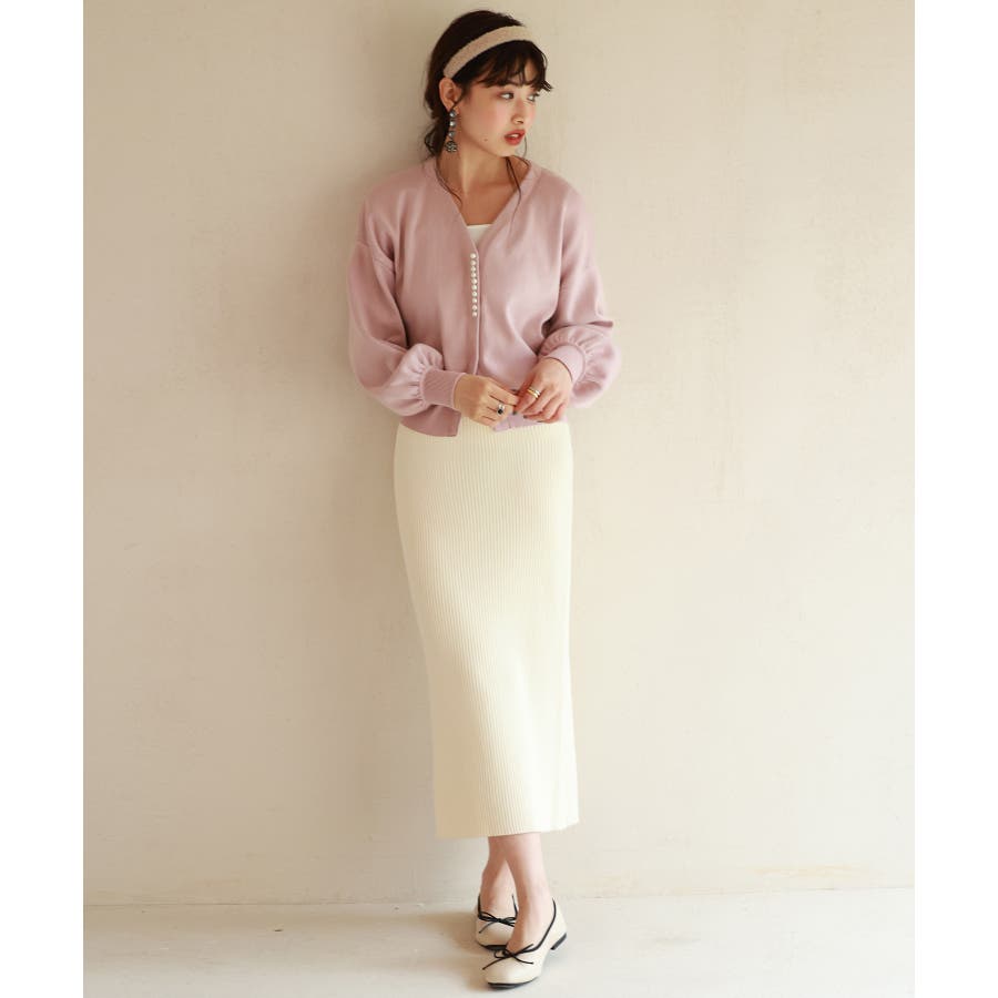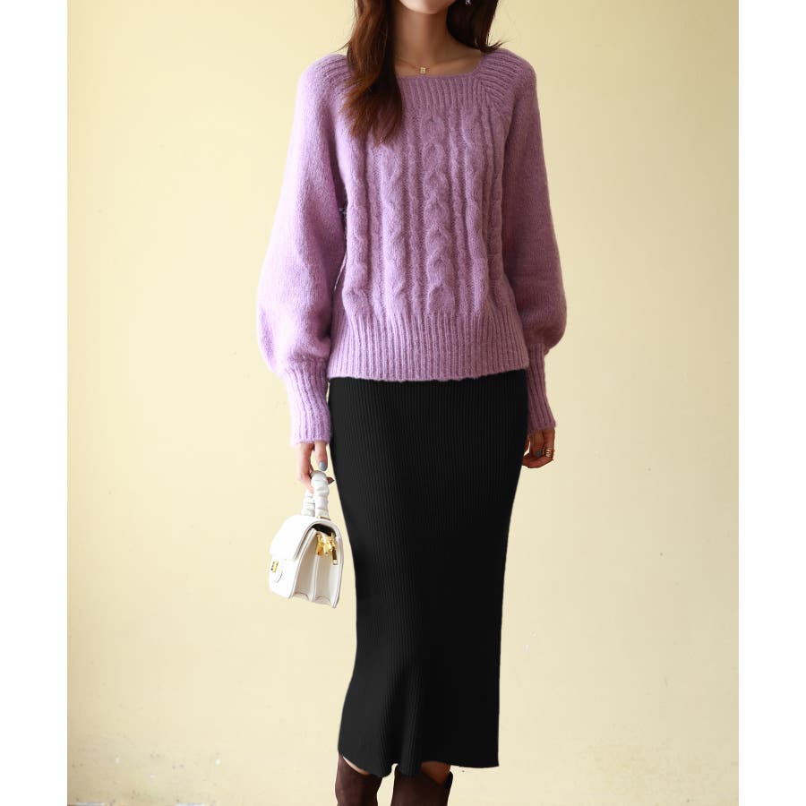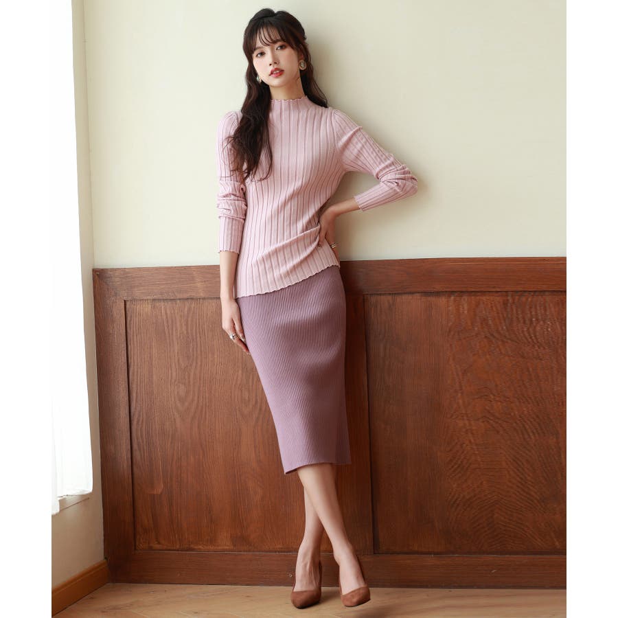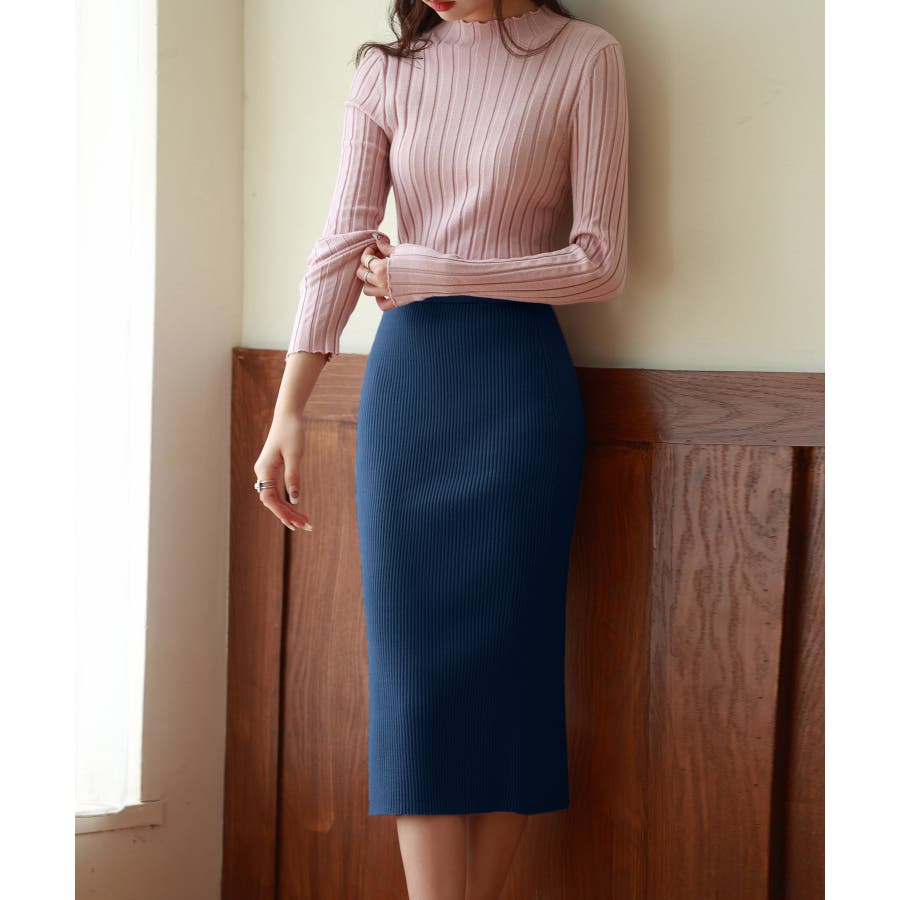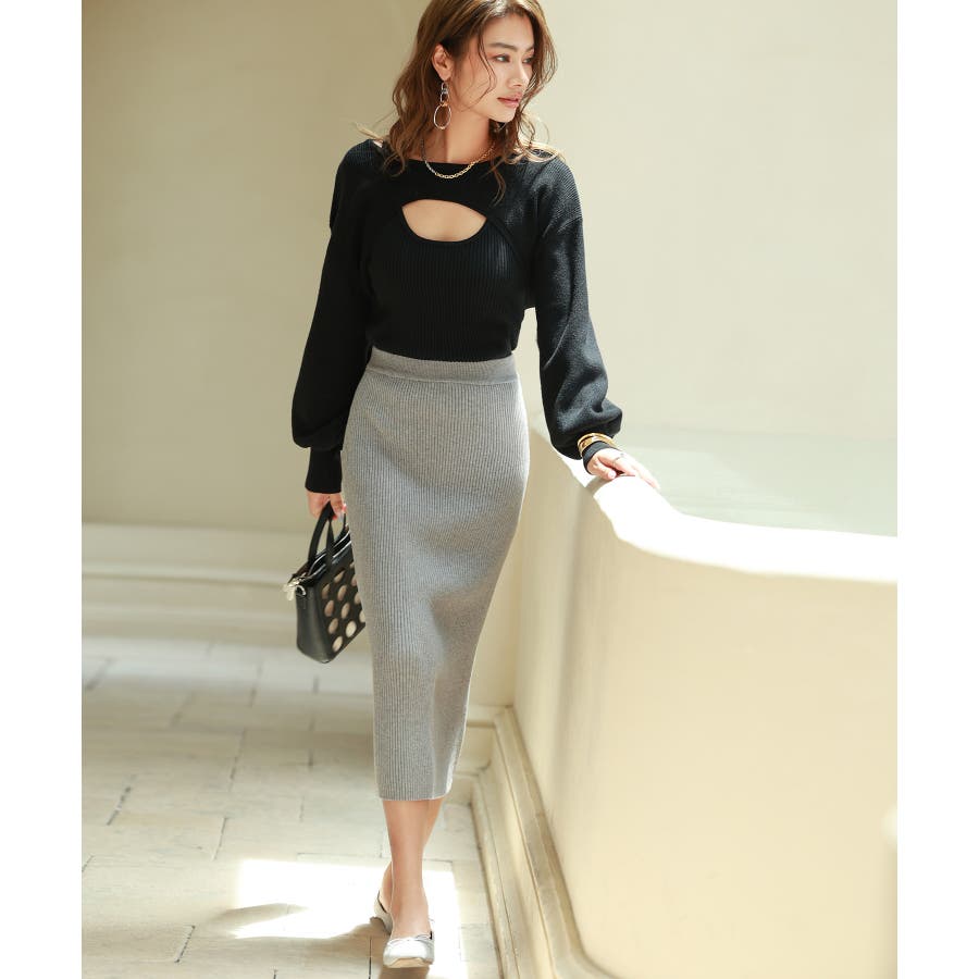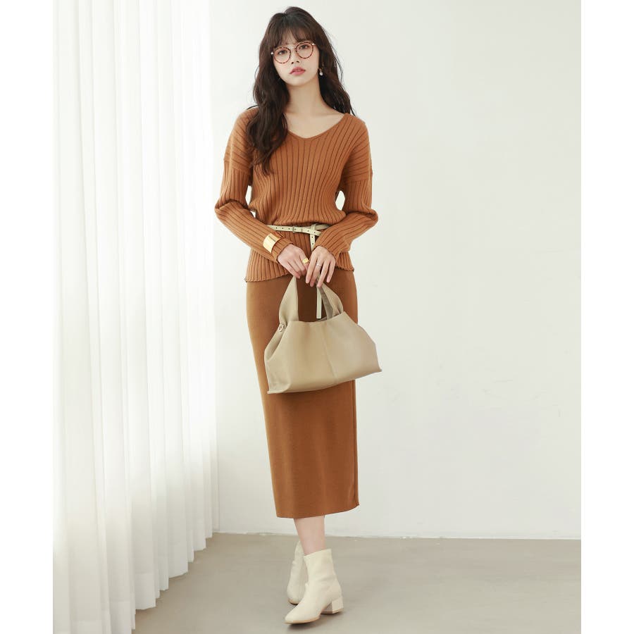 ニットのリラクシーな質感と長めの丈感でシーンを選ばず着回せるニットナロースカート。