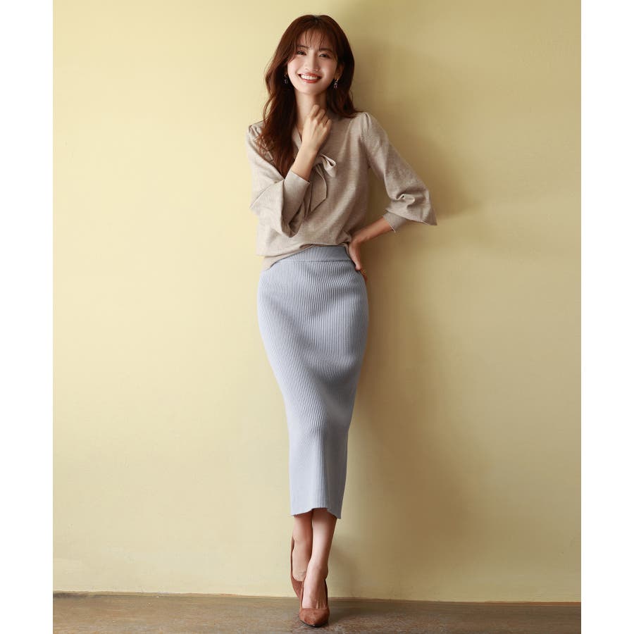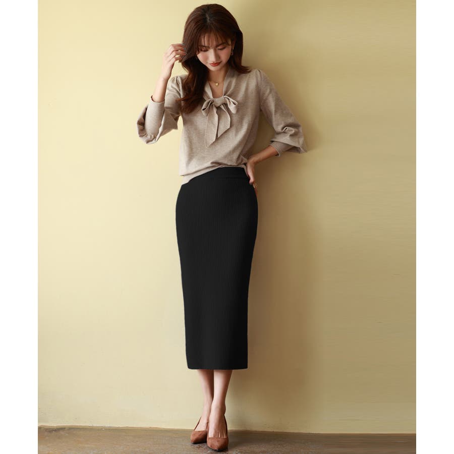 シンプルに仕上げたニットスカートはきちんと感もありオフィスカジュアルにも最適です。