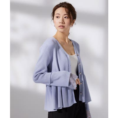 コンパクトなシルエットに裾の揺れ感が映えるペプラムニットカーディガン。カーヴィーラインを出しつつ、気になる部分をカバーするペプラムデザインが女性らしさを惹き立てる一枚です。身頃の上部や袖はボディラインに柔らかく沿うリブ編み仕様。編地の縦ラインが、ぐっと印象を引き締めます。裾のペプラムはハイウエスト位置で切り替えられているので脚長な印象に。たっぷりのドレープは気になるお腹・腰回りをカバーしてくれます。袖は長めで袖口に向かって少し広がるデザイン。リブとレースで2か所切り替えられていて袖口から覗くレースが手元を華やかに飾ります。前立てには小ぶりなパールボタン付き。オシャレなボタンには、スタイル全体の高見え効果もあり。ボタンを閉めて、プルオーバー風の着こなしもOK一枚でコーディネートの幅が広がります。