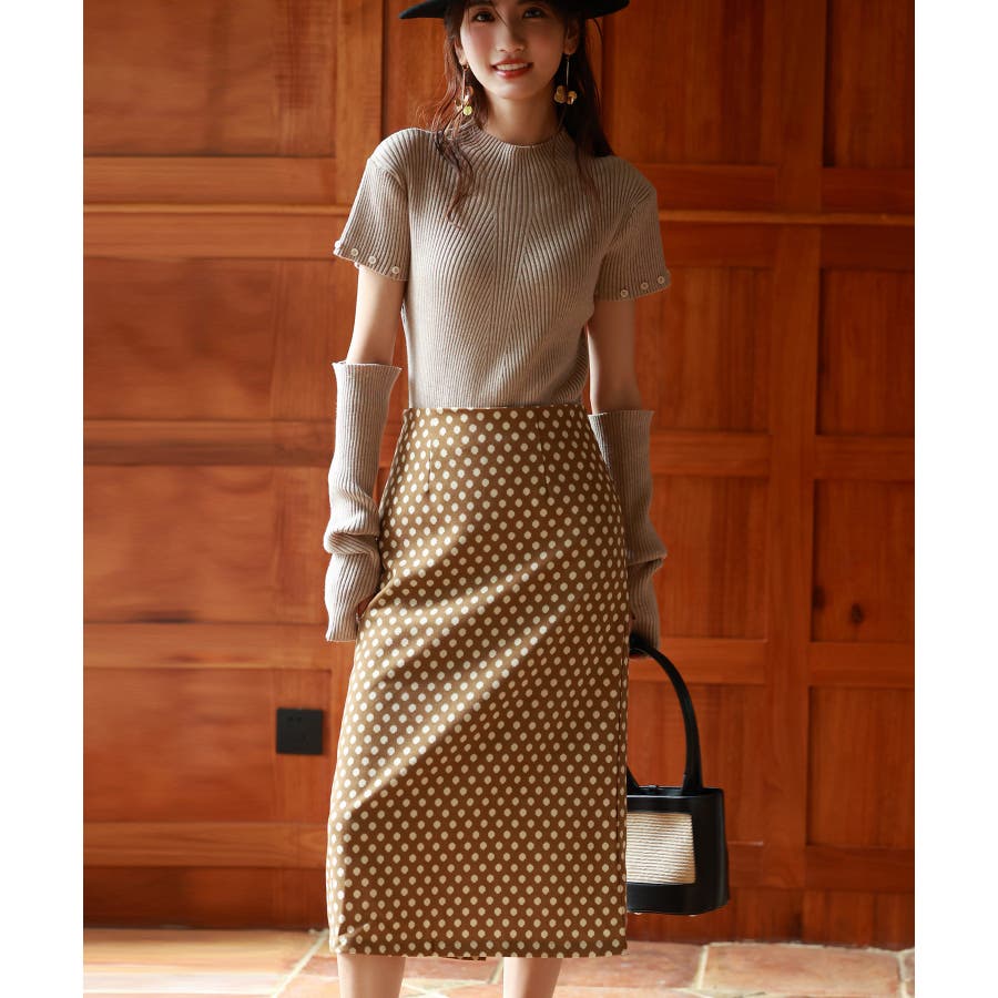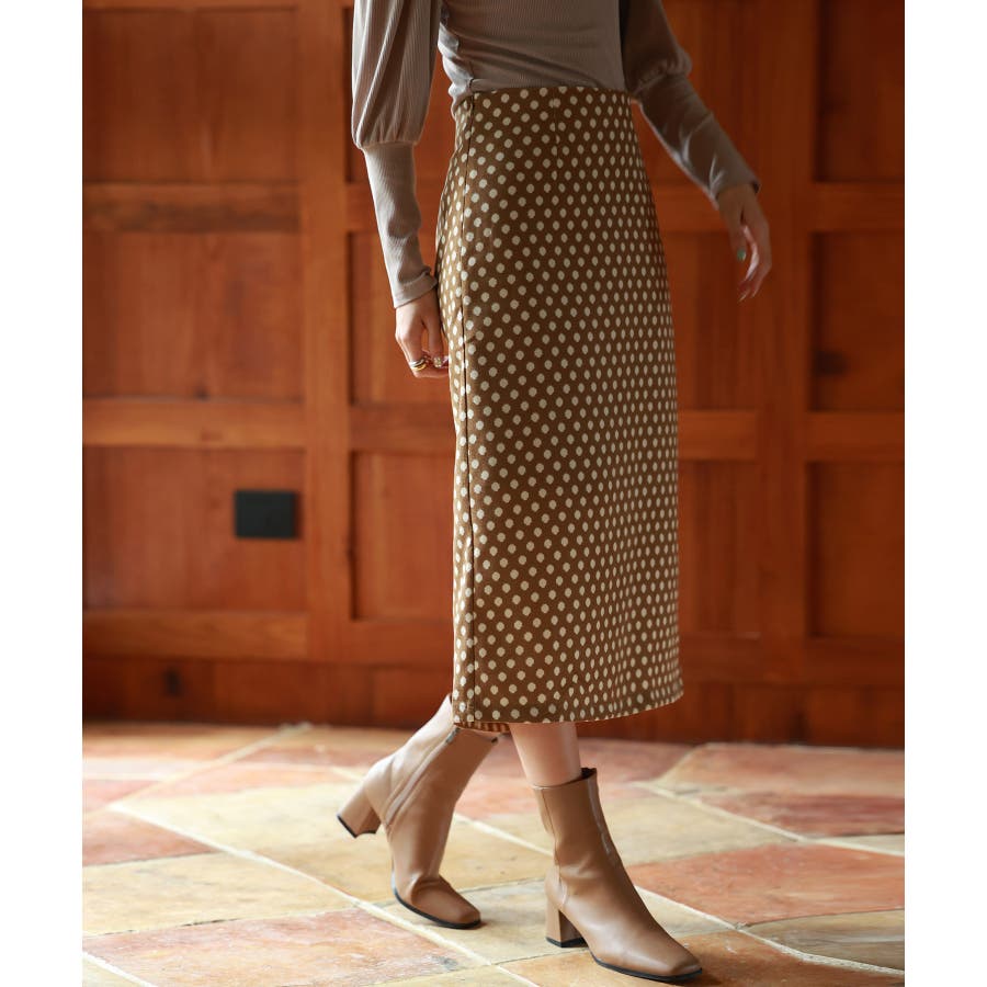 ベーシックなシルエットにドット柄のアクセントが映えるコーデュロイ素材のナロースカート。薄手なので、秋冬から春先までロングシーズンで着回せます。コーデュロイならではの立体的な起毛感が表情豊かで洗練された雰囲気に。バックスリット入りでかっちりとしたタイトスカートに適度な抜け感と動きをプラス。バックウエストはゴム入りなので締め付け感が少なく着心地も快適です。※ATTENTION※ロットによりファフナーは右側となる場合がございます、ご了承ください。