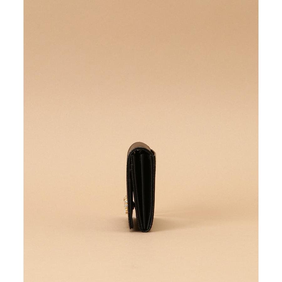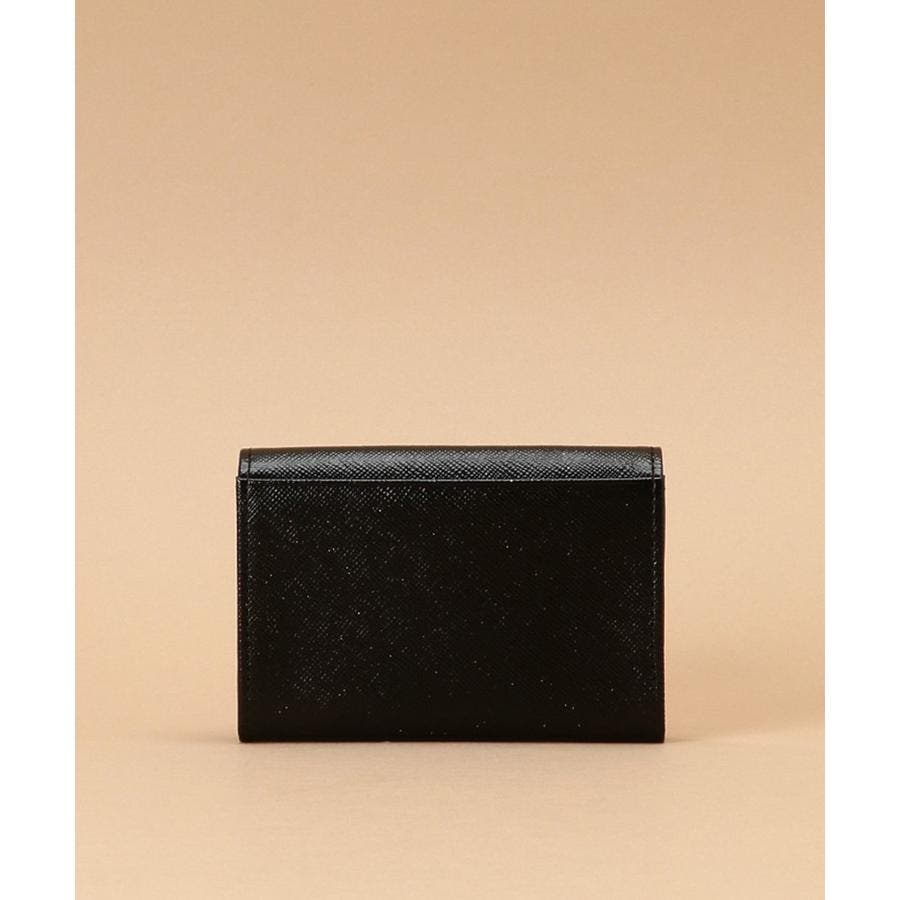 ラメ加工を施したレザーに、ロゴにあしらったビジューが輝きをプラスしています。