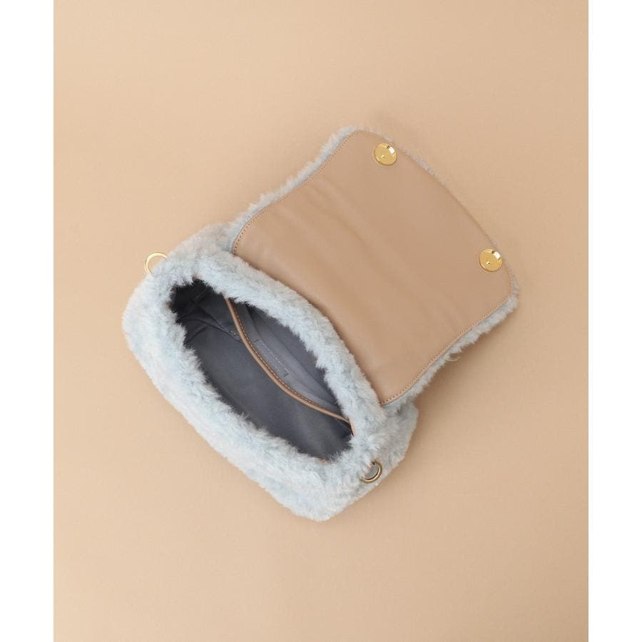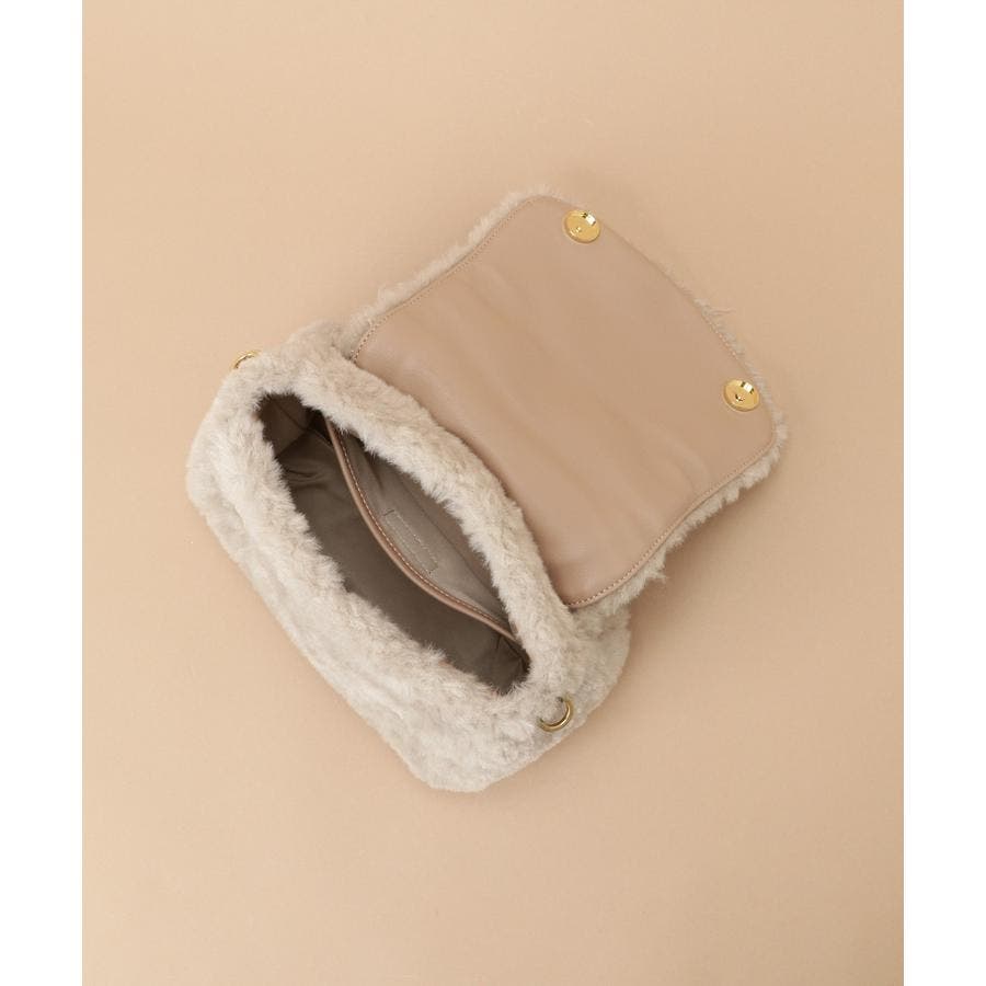 柔らかなファーの質感と、ショルダーチェーンのメタルの輝きでほんのりモードな印象で仕上げました。