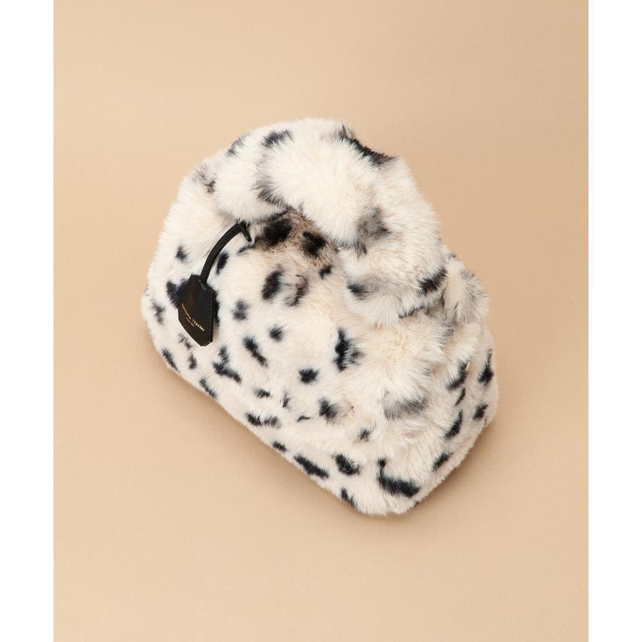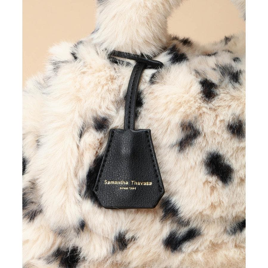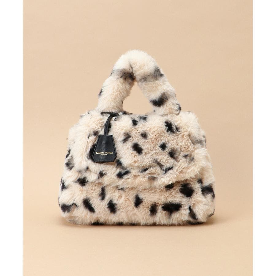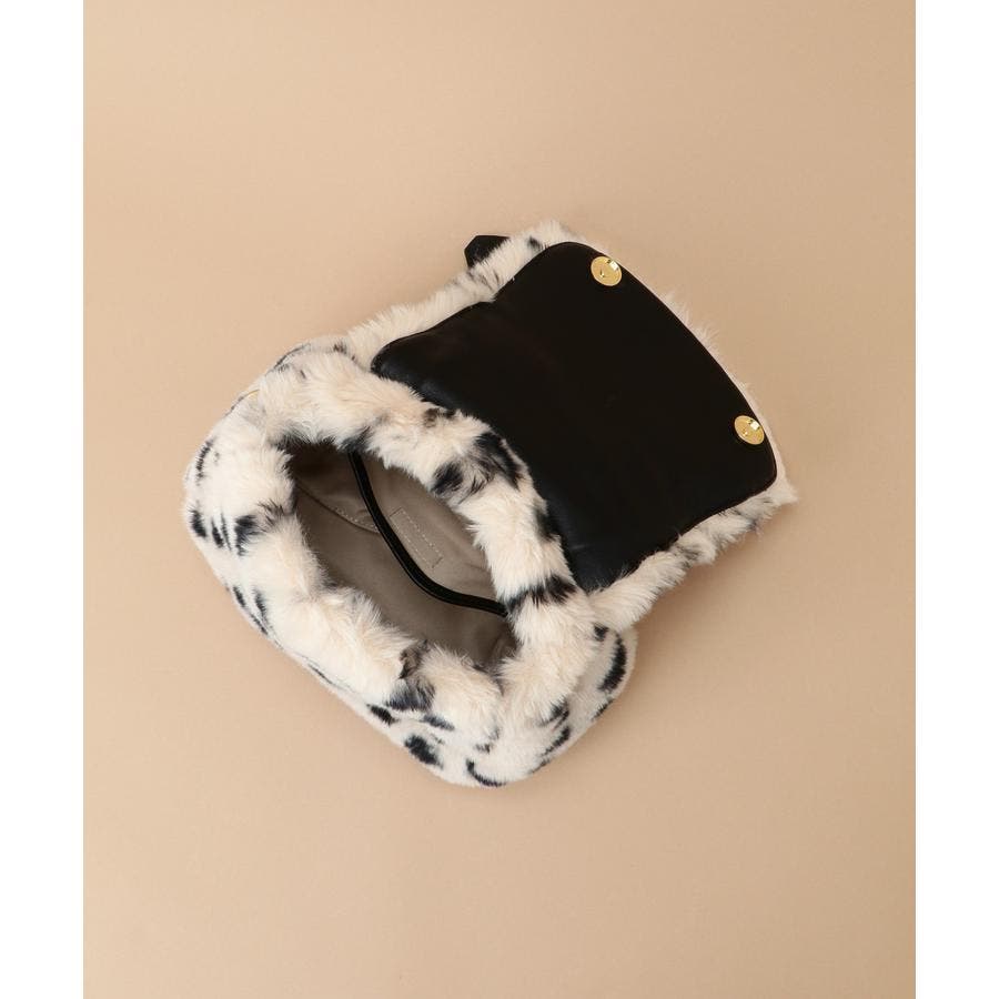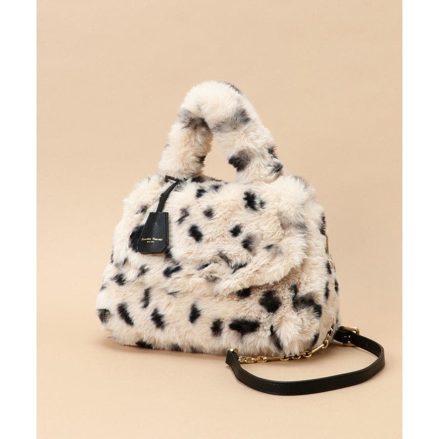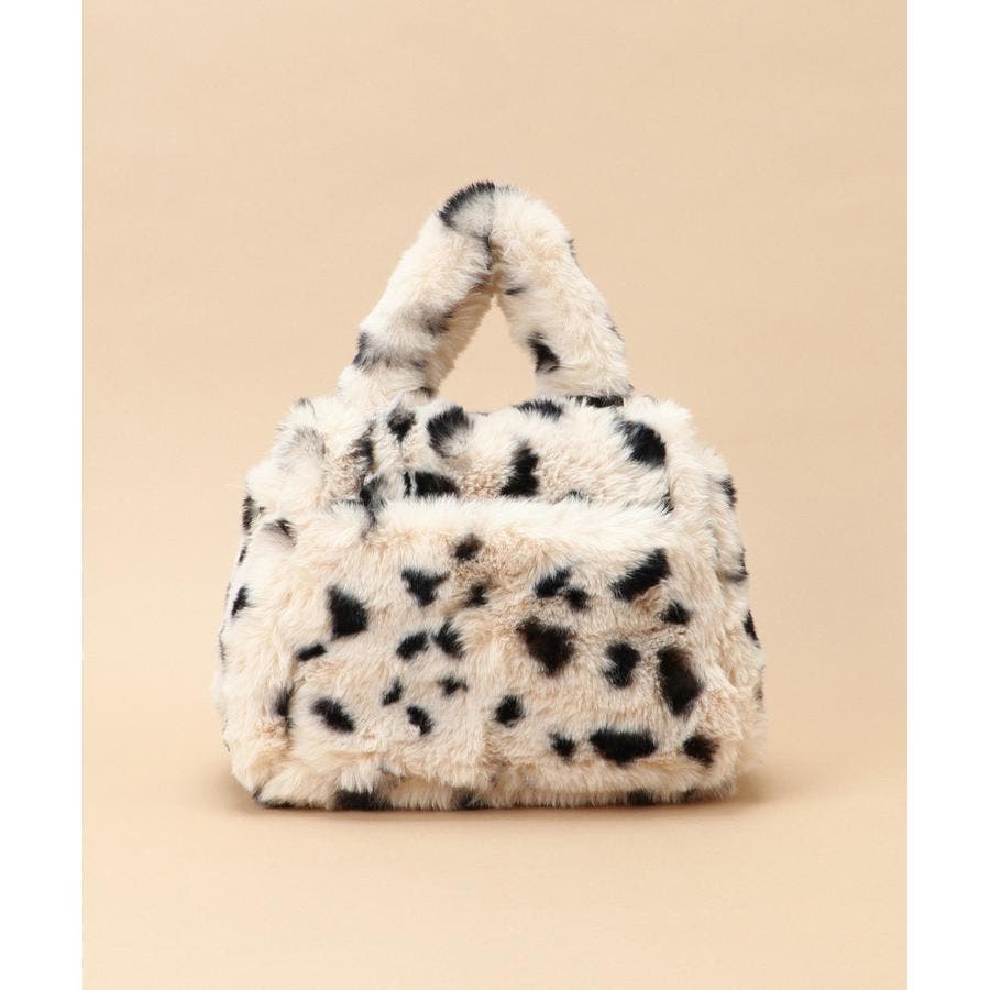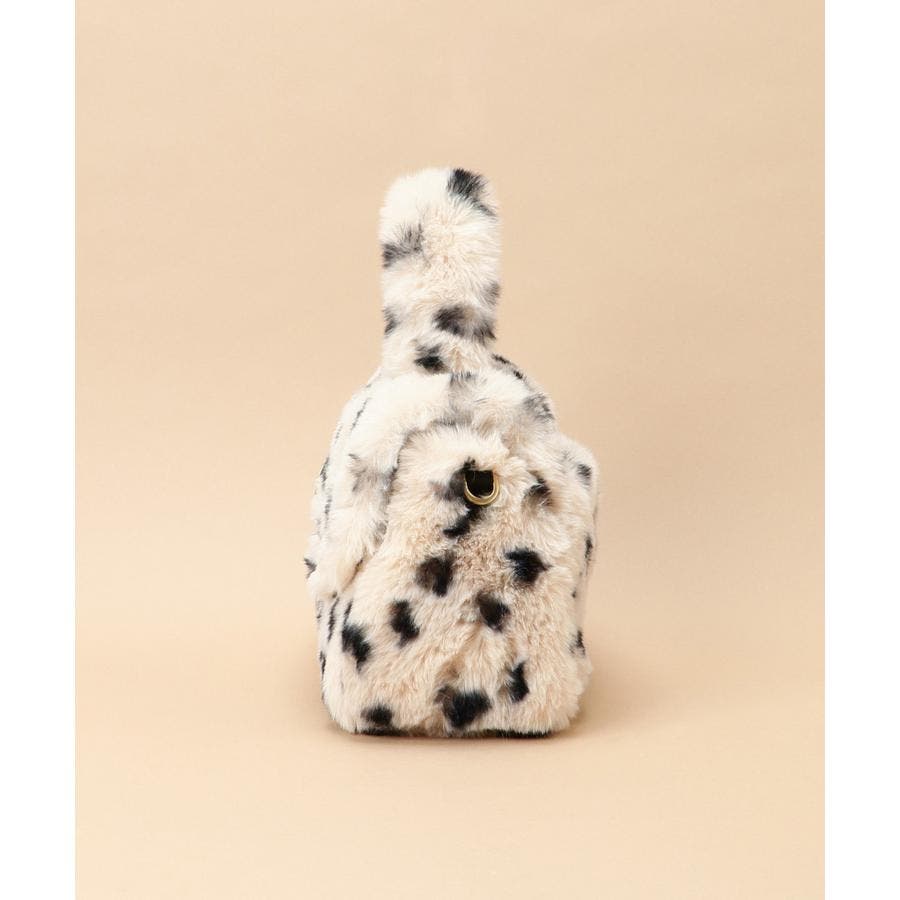 巻き毛が可愛らしいファーと手触りのいいダルメシアン柄のファーデザインのハンドバッグ。