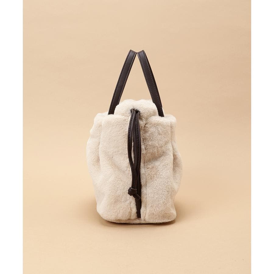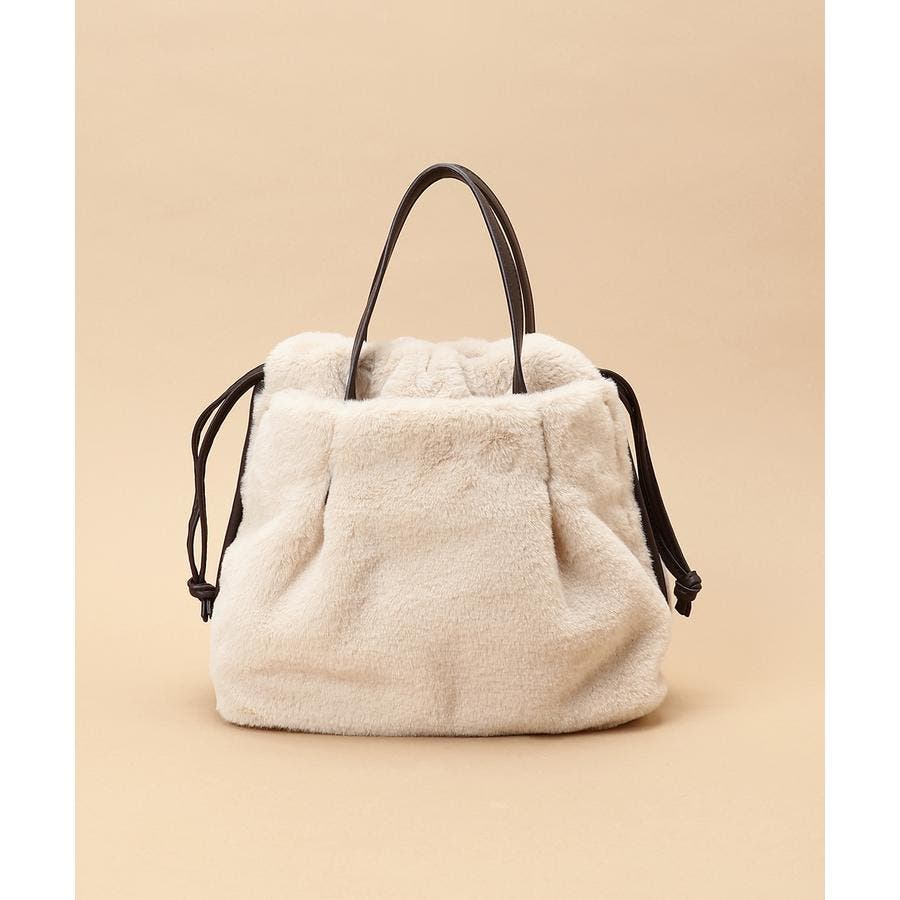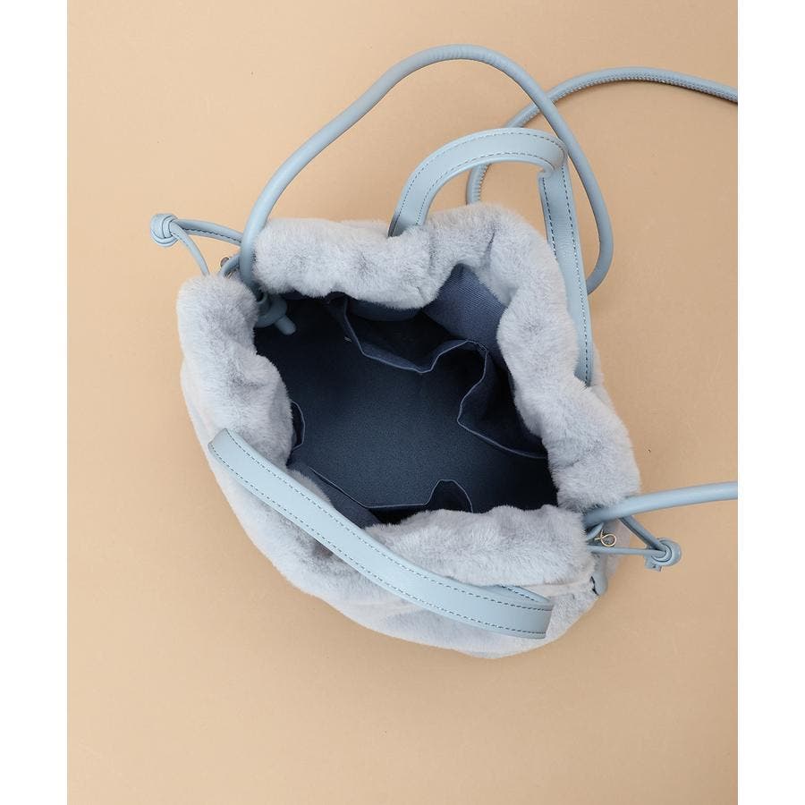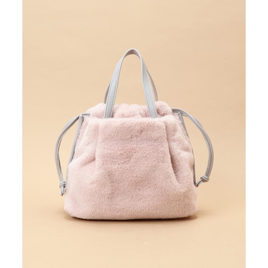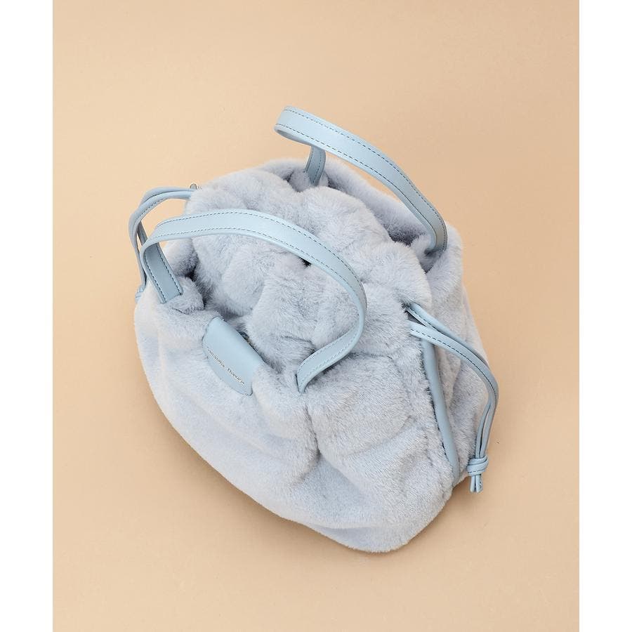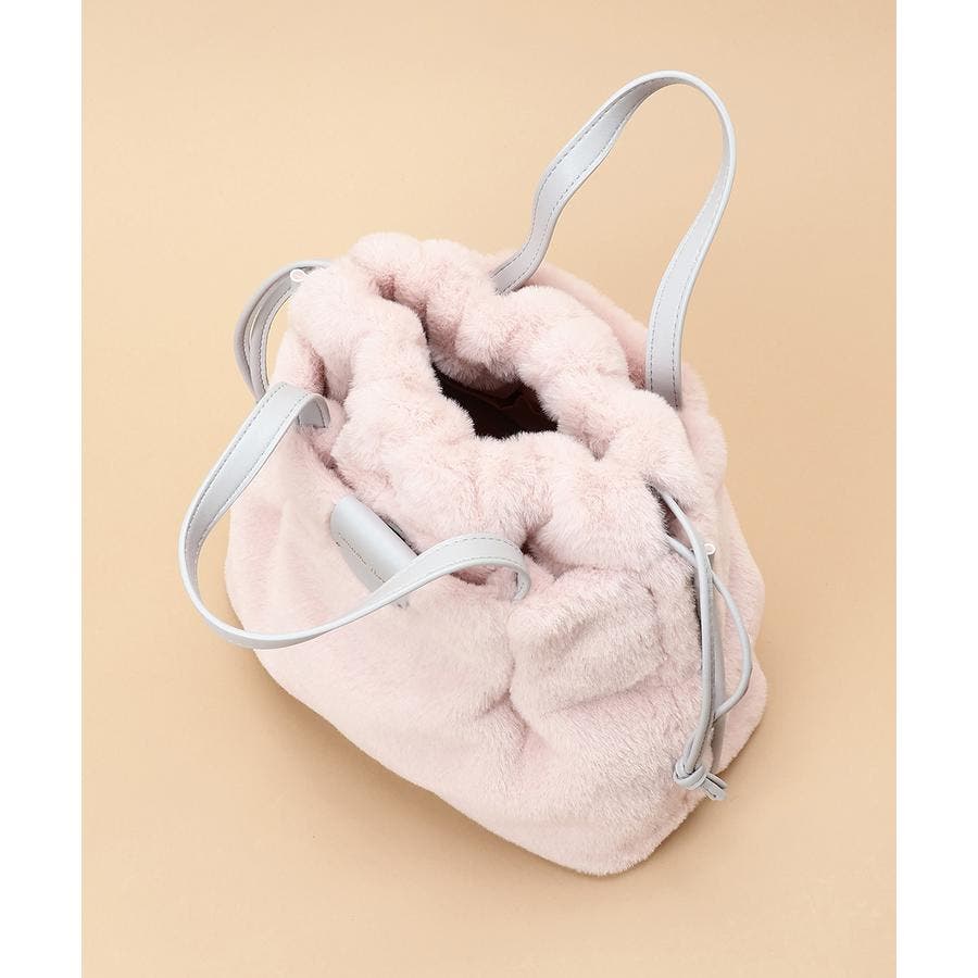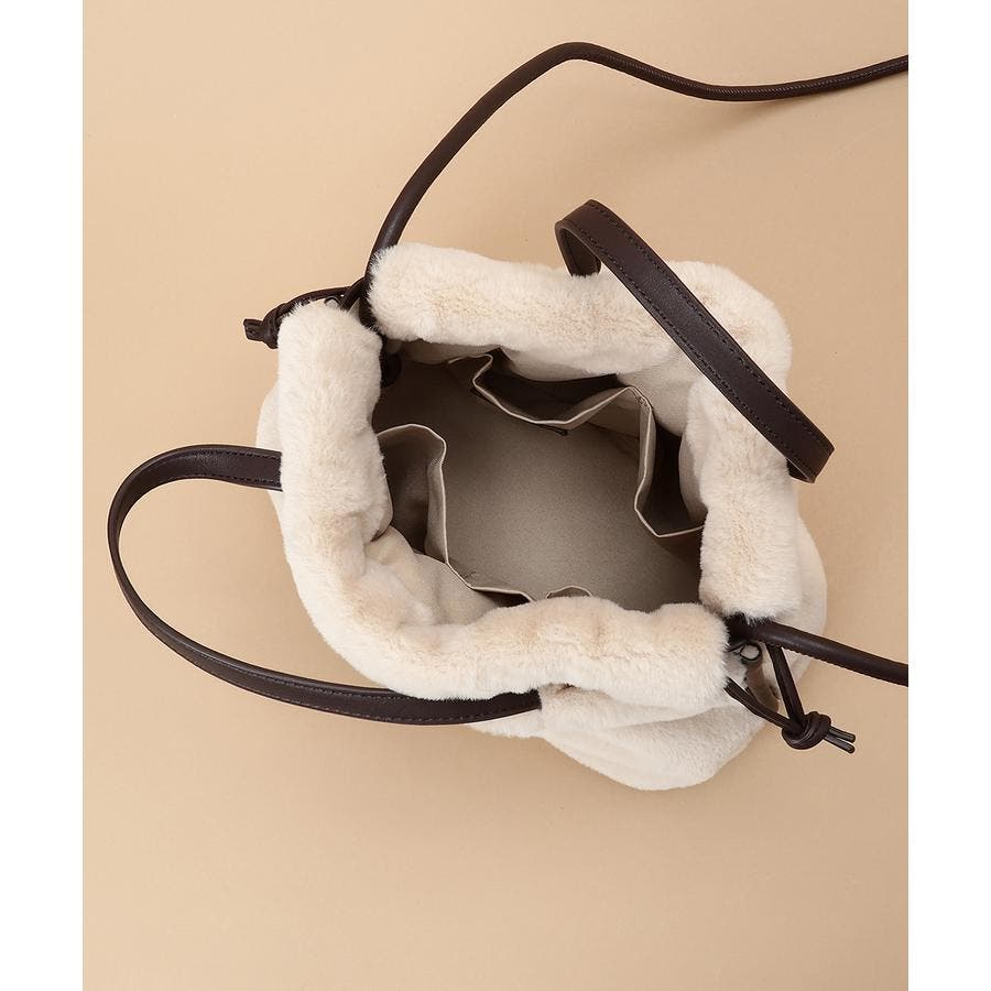 ファーとコロンとしたシルエットがフェミニンで大人可愛い印象の巾着バッグ。