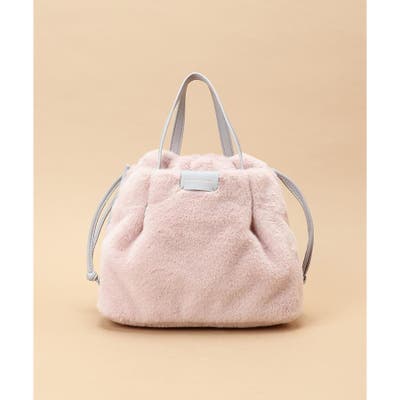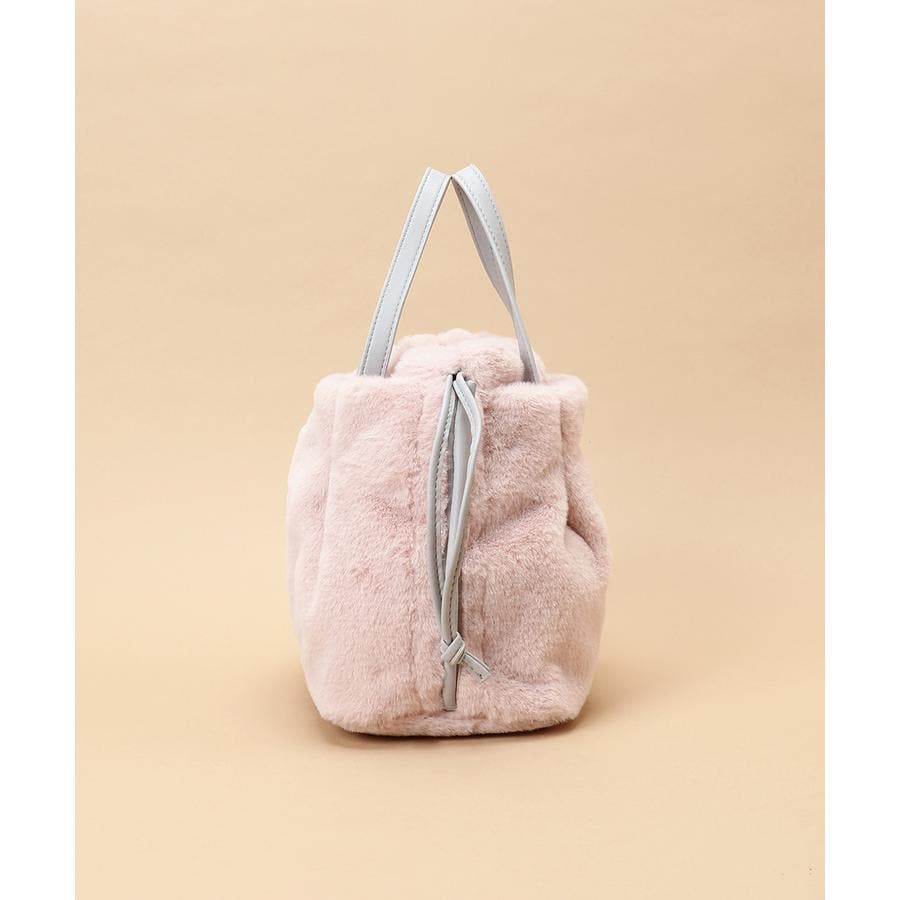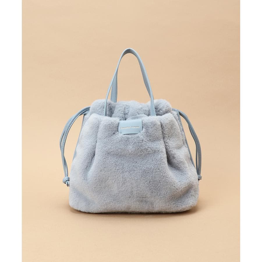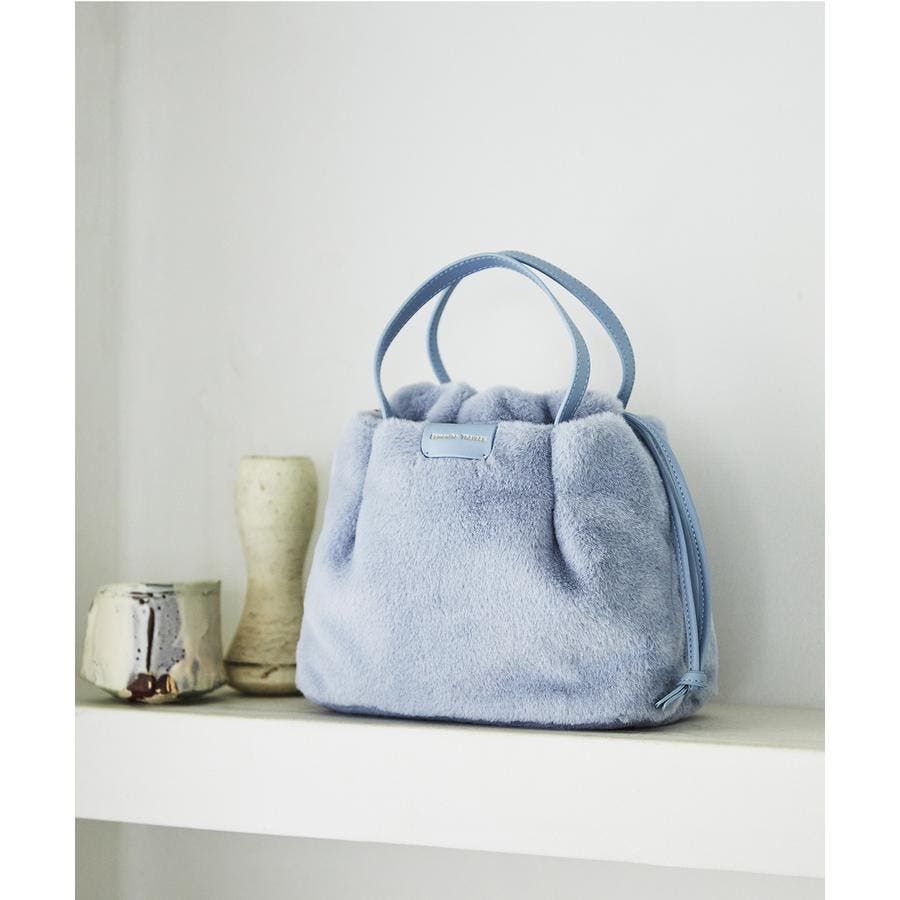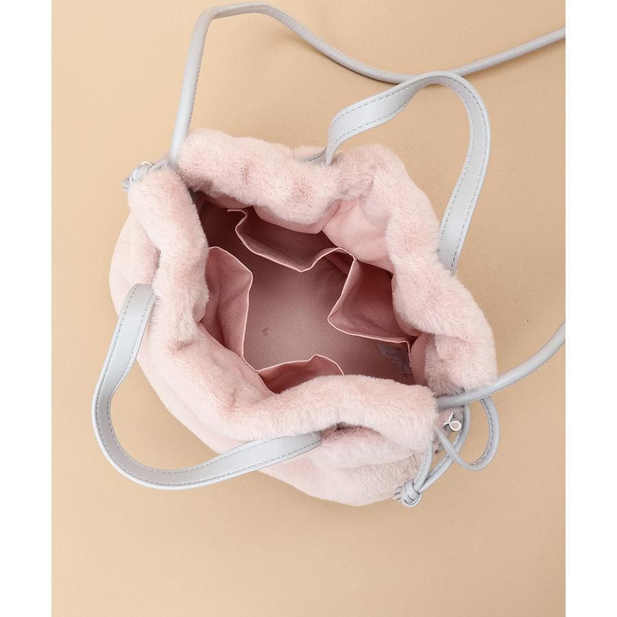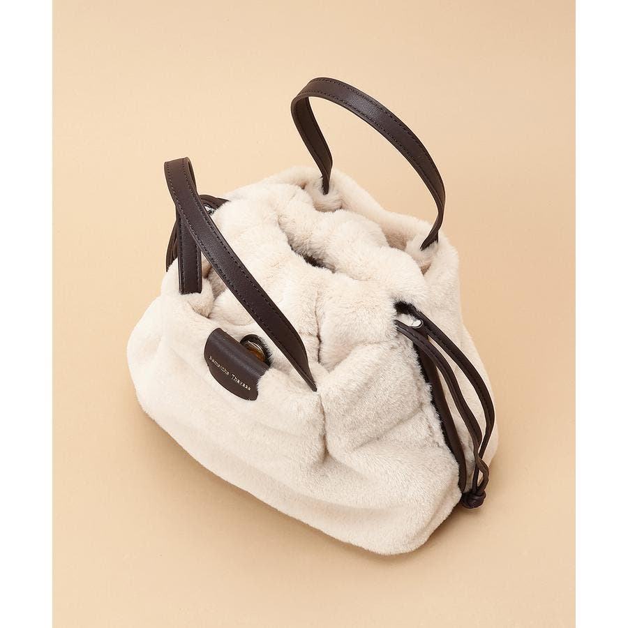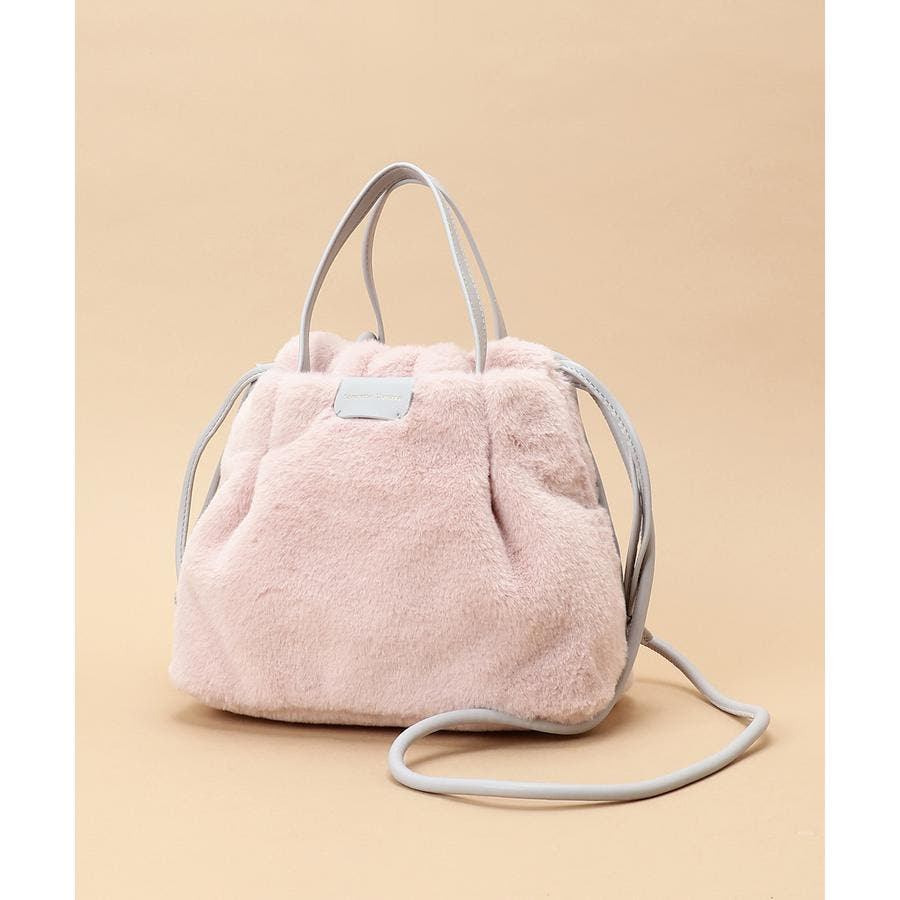 ファーとコロンとしたシルエットがフェミニンで大人可愛い印象の巾着バッグ。