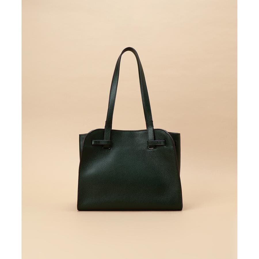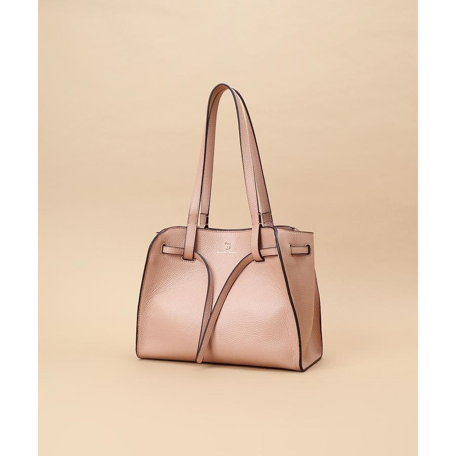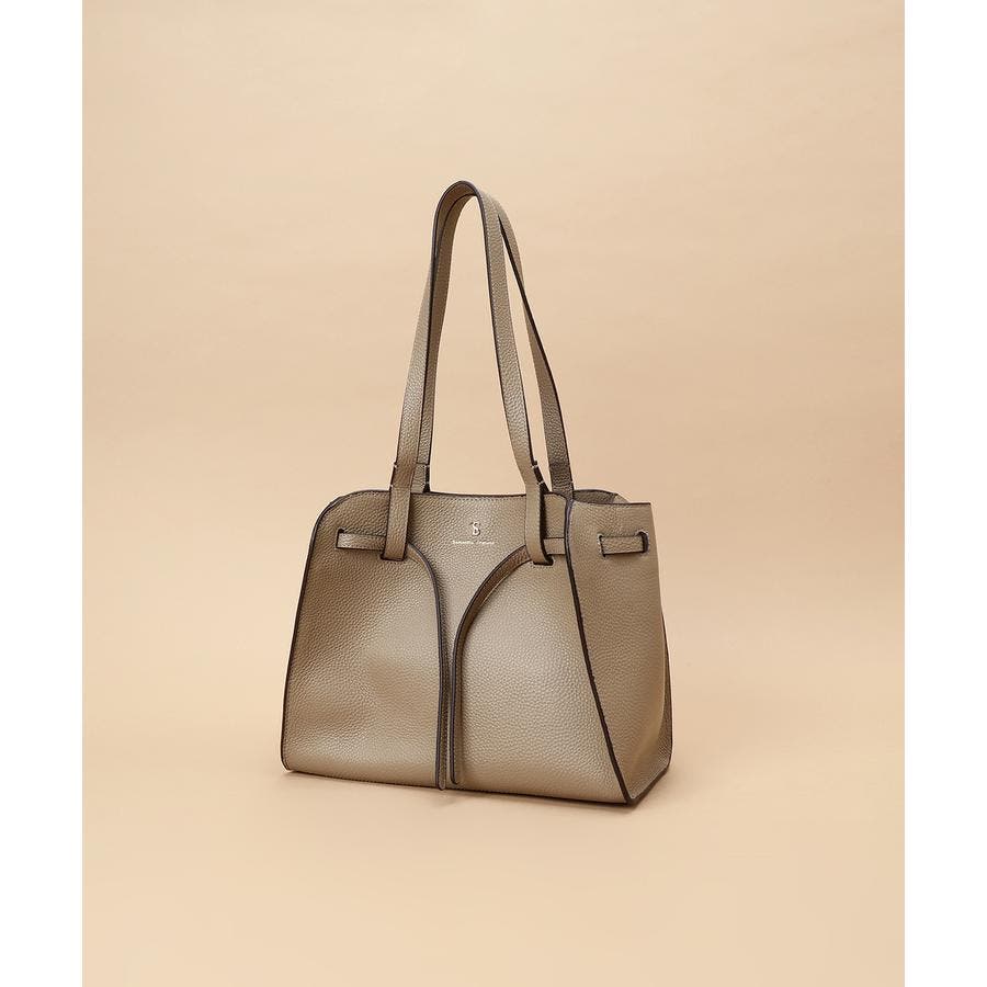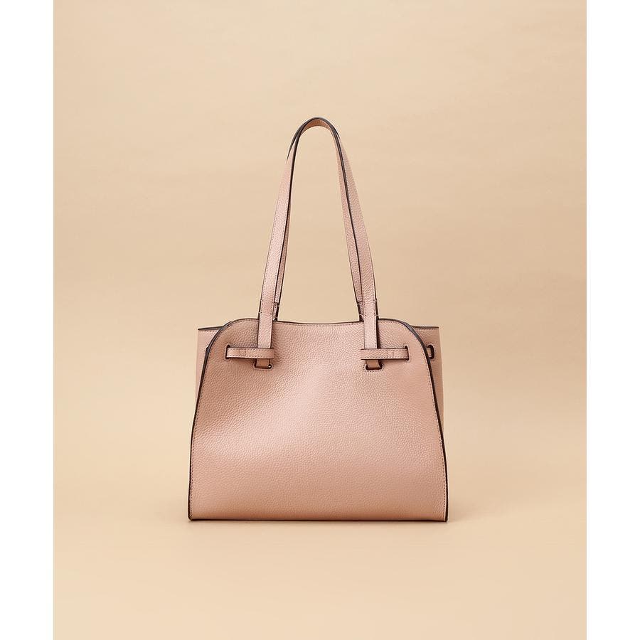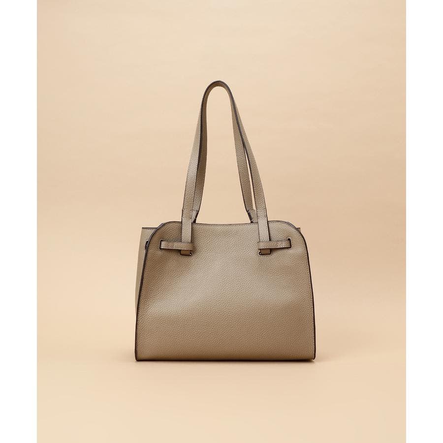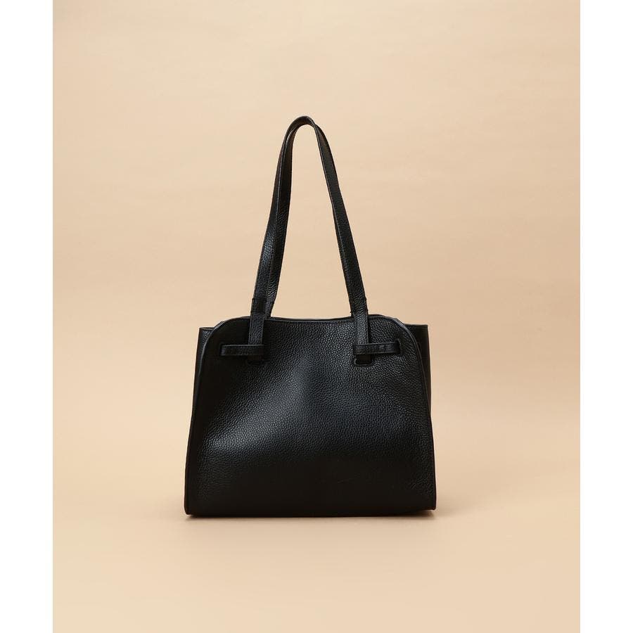 ベルトデザインがトレンド感ある雰囲気のレザートートバッグ。