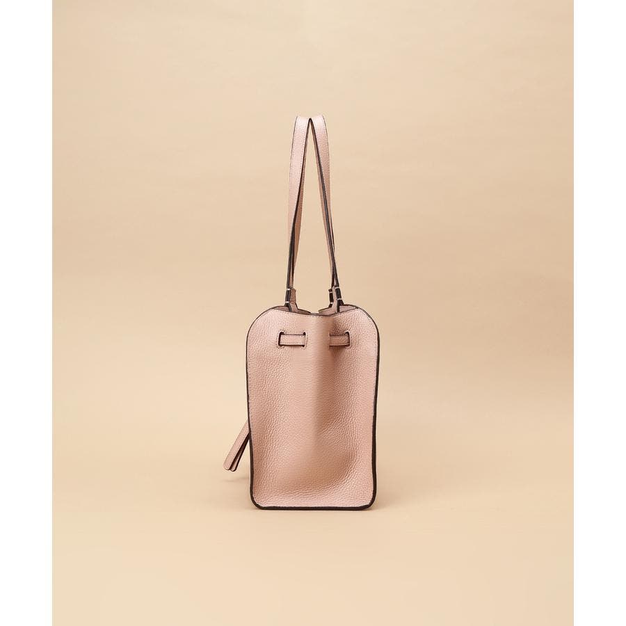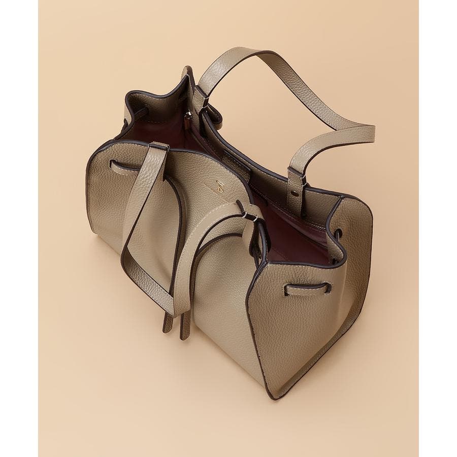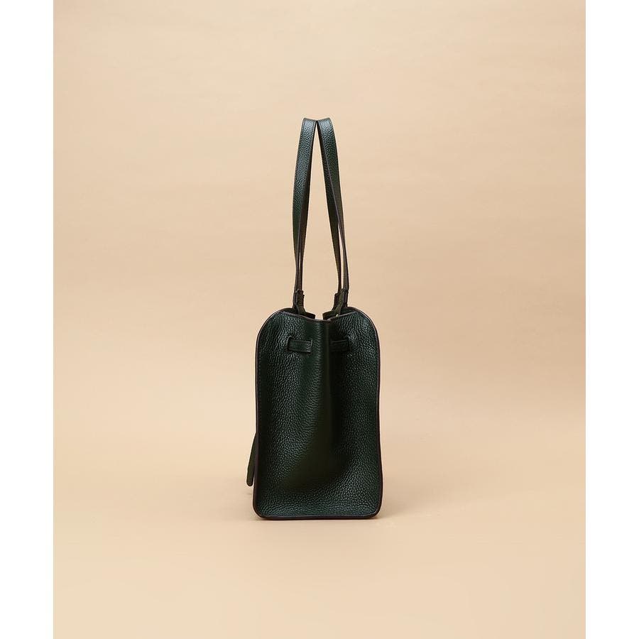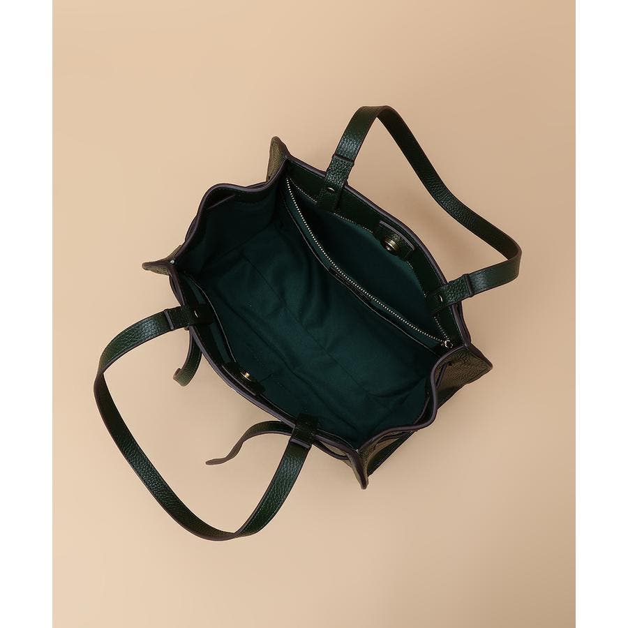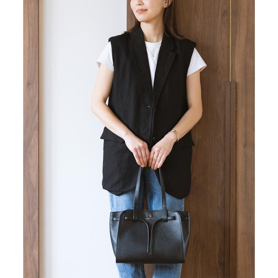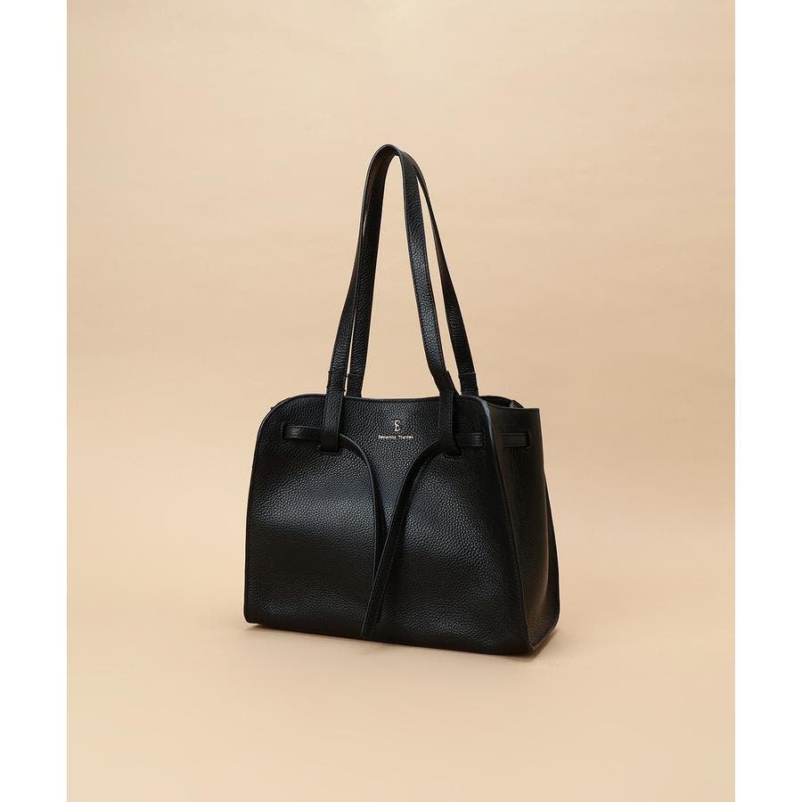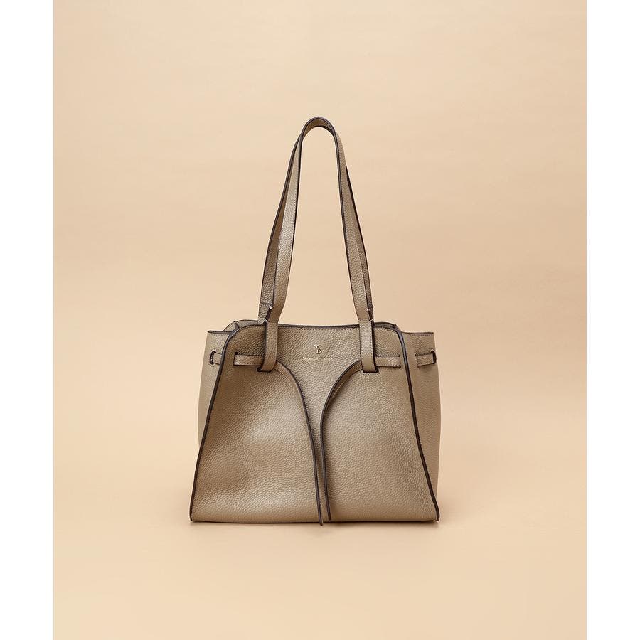 ベルトデザインがトレンド感ある雰囲気のレザートートバッグ。