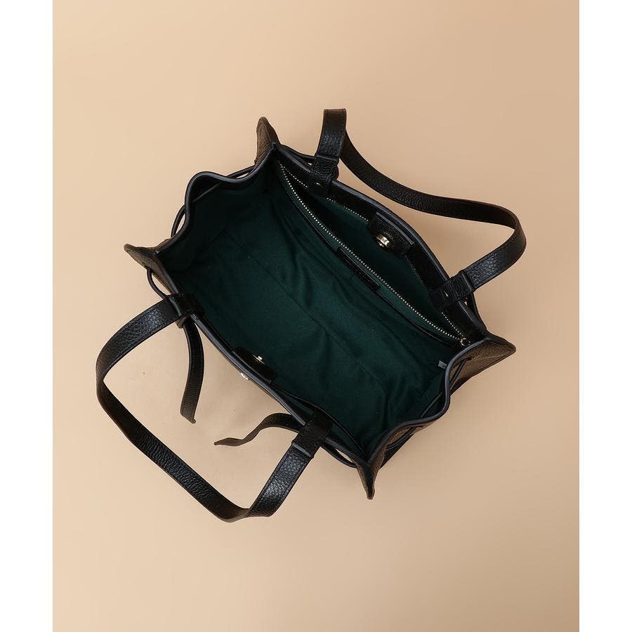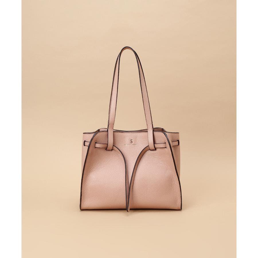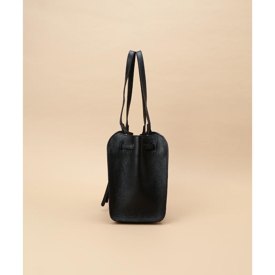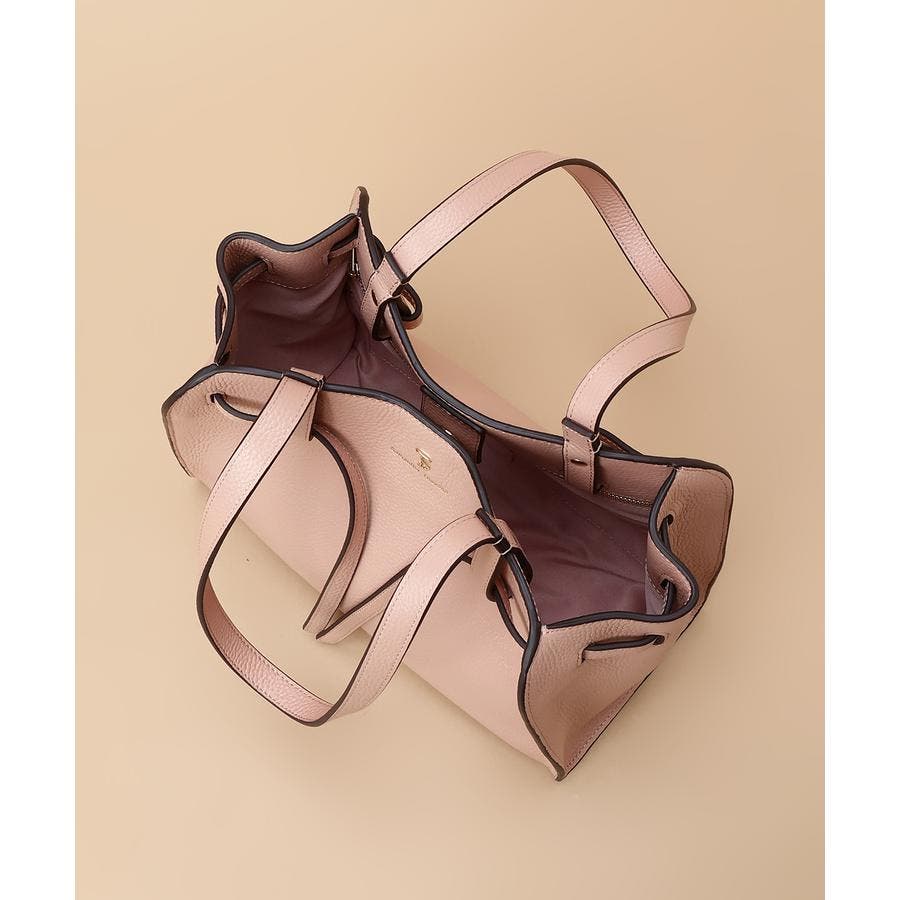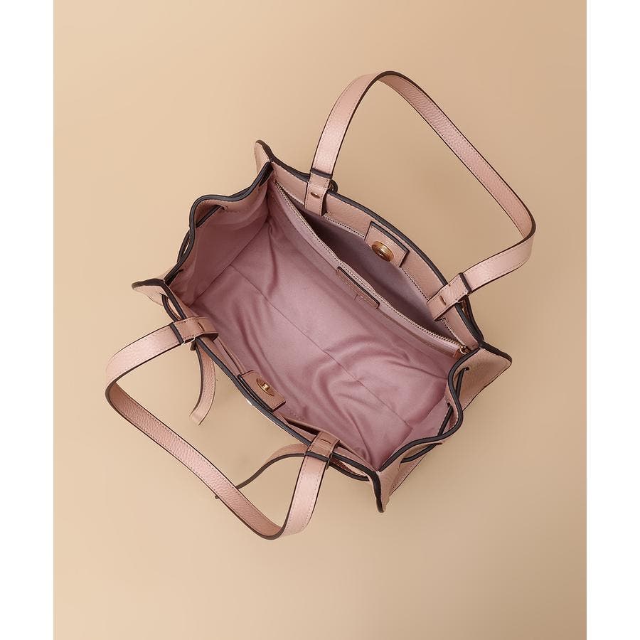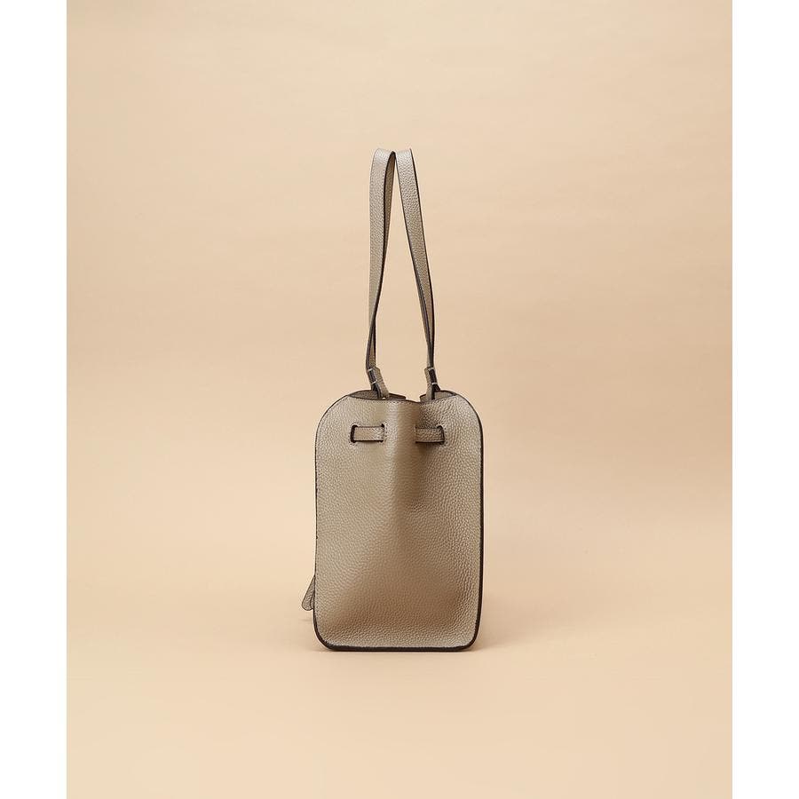 ベルトデザインがトレンド感ある雰囲気のレザートートバッグ。