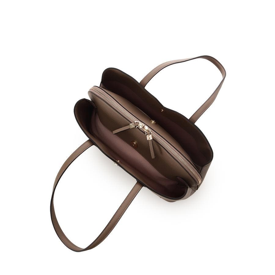 シンプルで曲線を描くようなカッティングが美しいトートバッグ。
