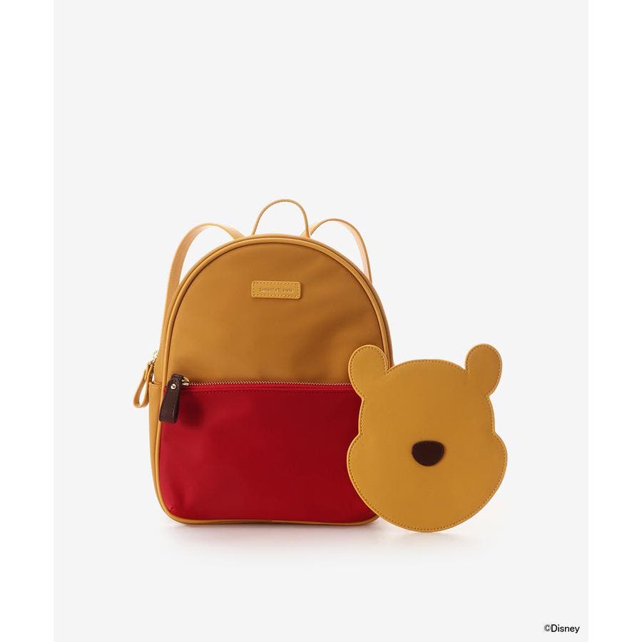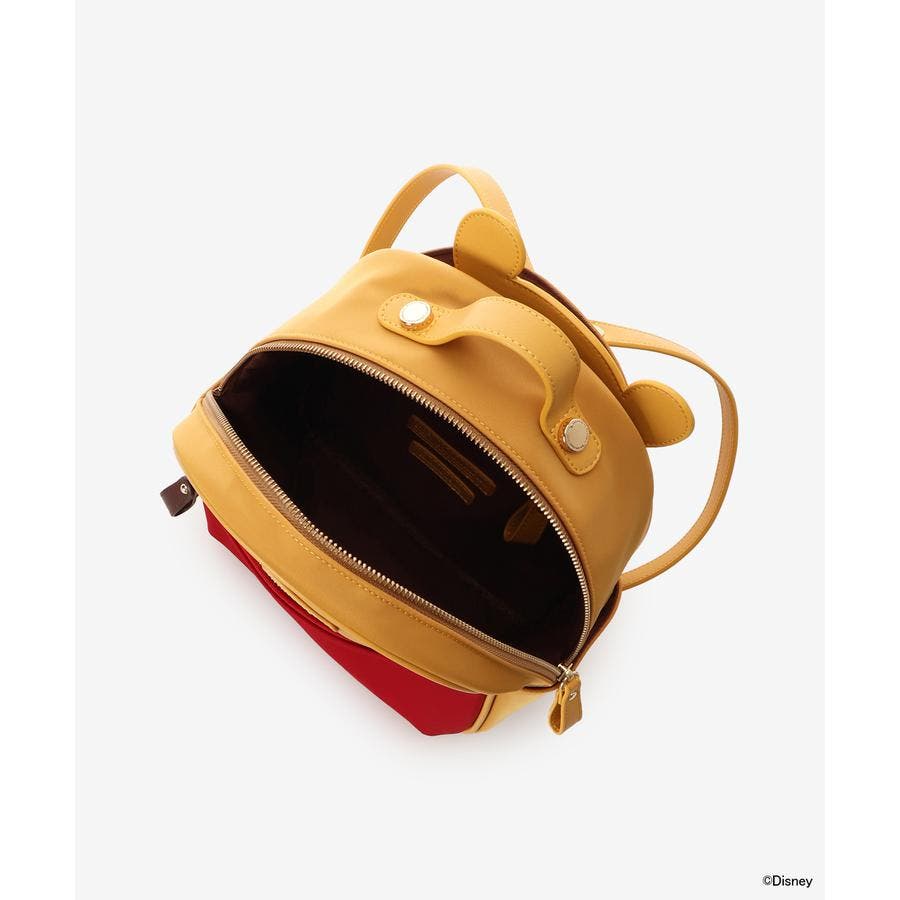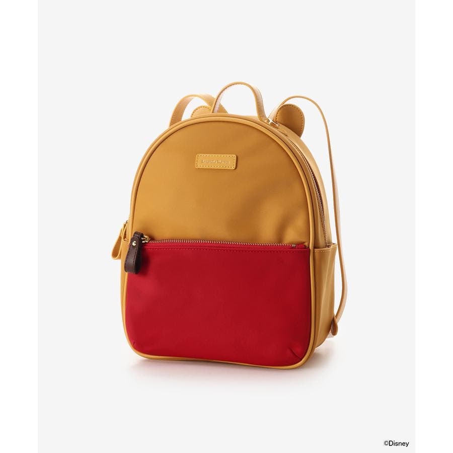 「プー」をイメージしたイエロー×レッドの配色のリュック。フロントにはファスナーポケットもついているのでIDカードなどすぐに取り出したいものをさっと収納が可能です。