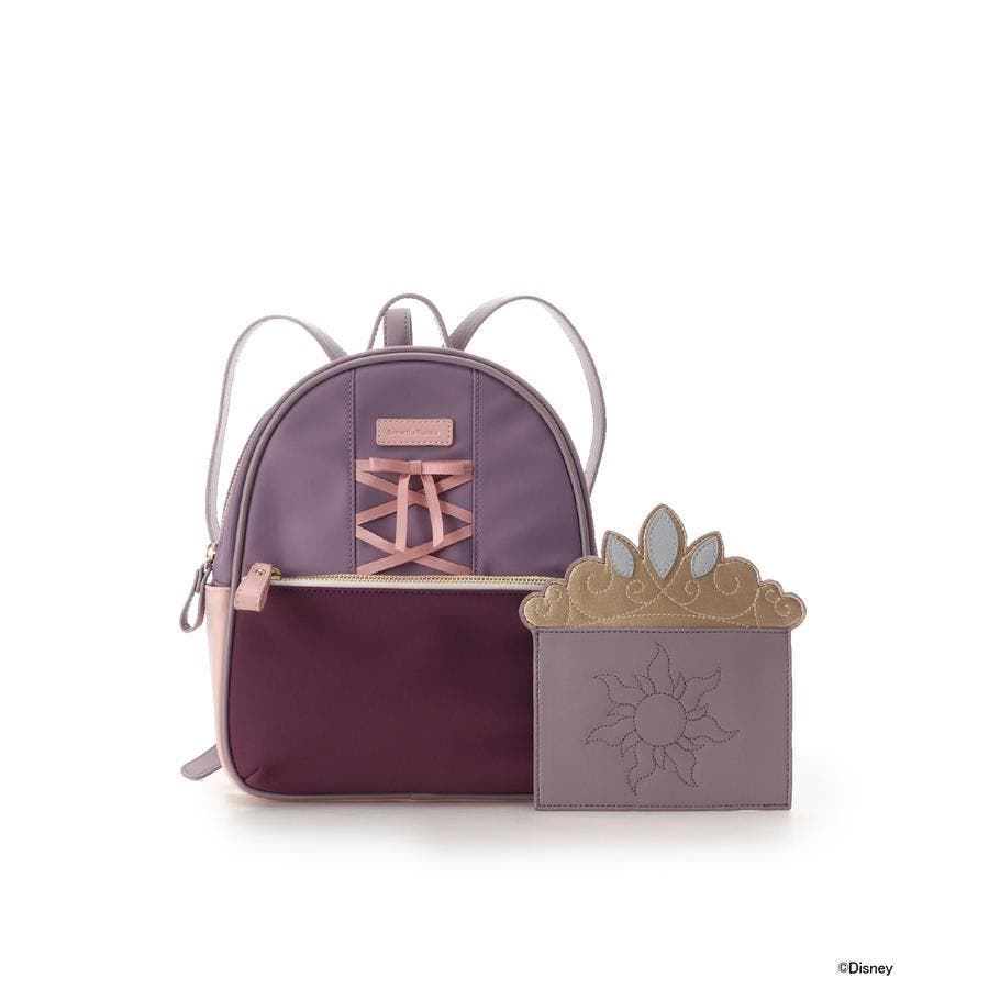キャラクターが着ているドレスをイメージした華やかなカラーリングとリボンディティールで「ラプンツェル」を表現。