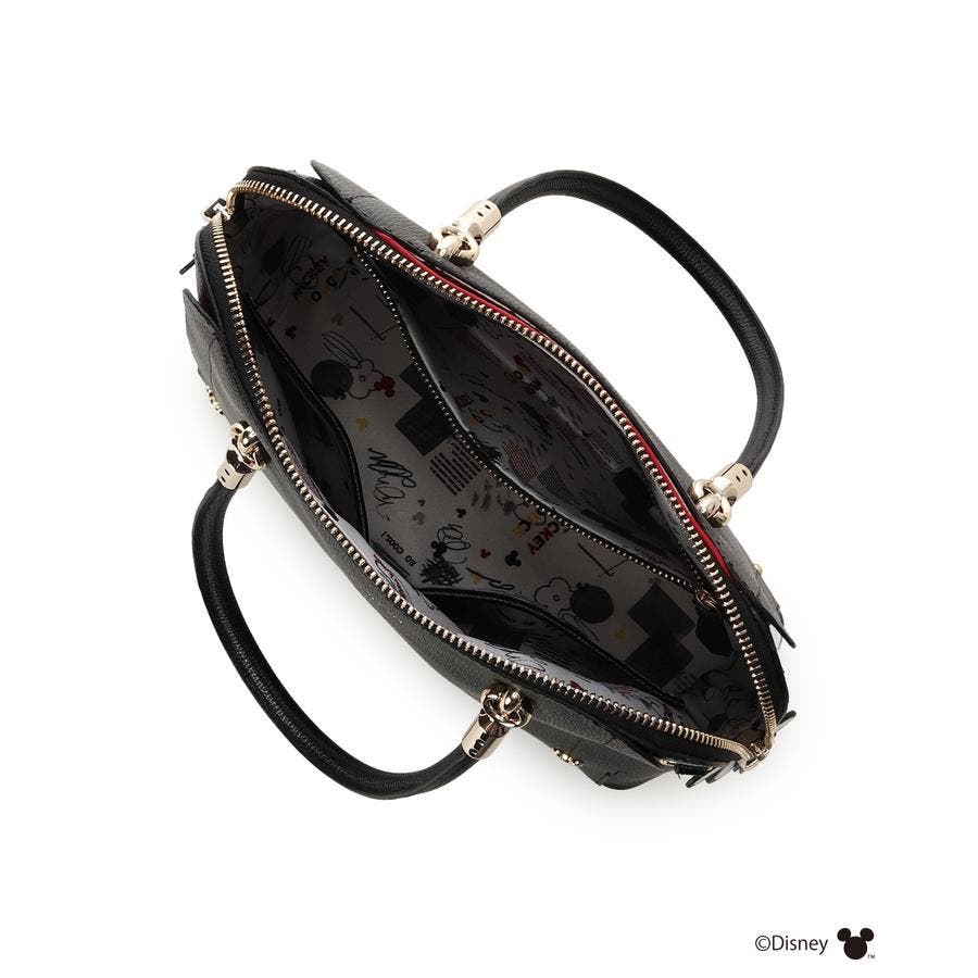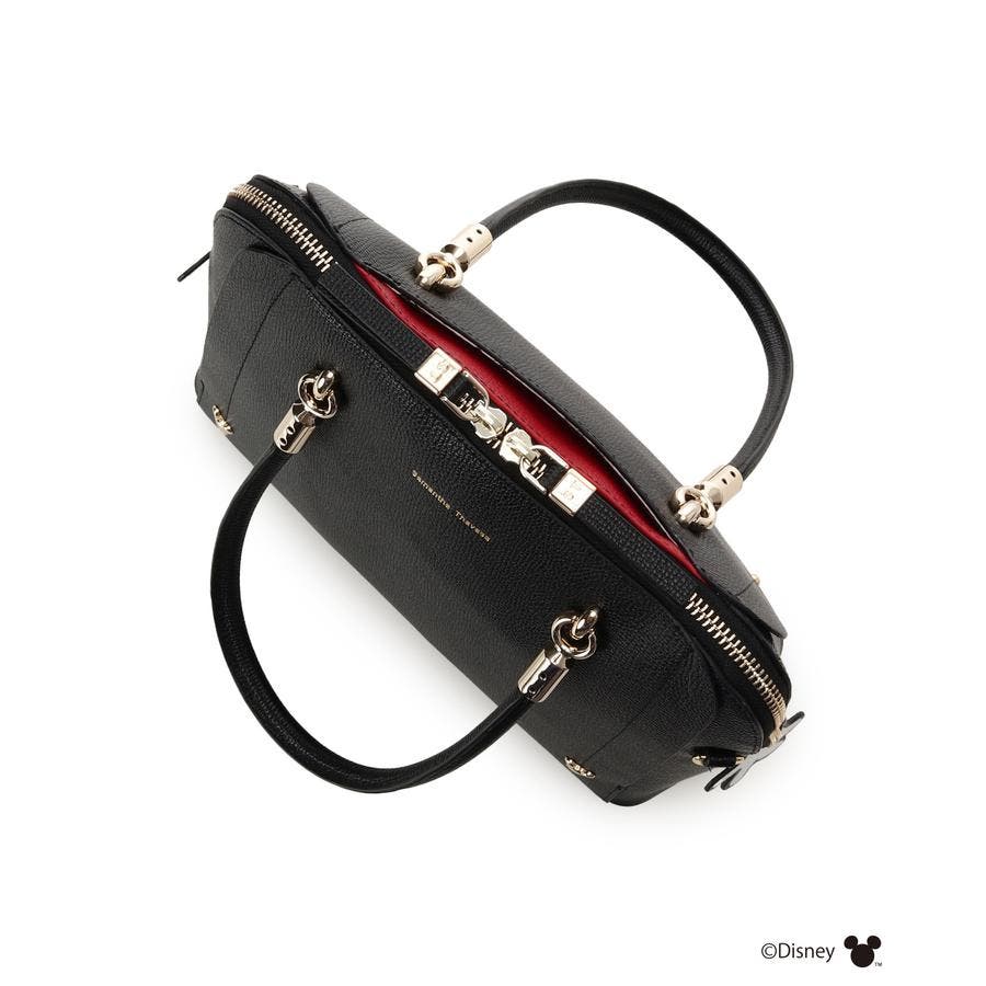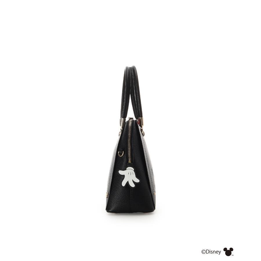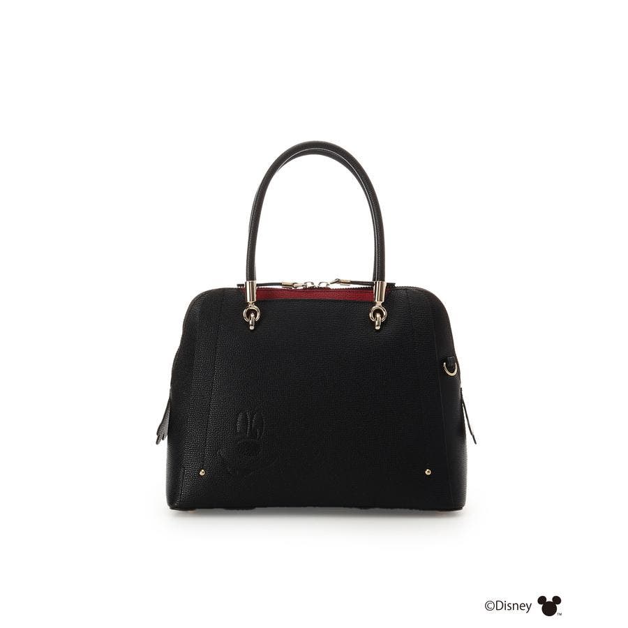 「ミッキー」をイメージしたブラックカラーのレザーにゴールドカラーのシルエット金具が輝く高級感溢れるハンドバッグ。