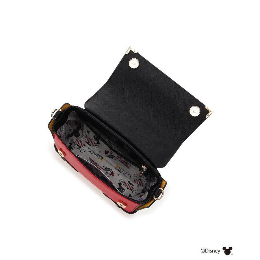 「ミッキー」をイメージしたオールブラックカラーとブラック×レッドカラーの2色展開のショルダーバッグ。