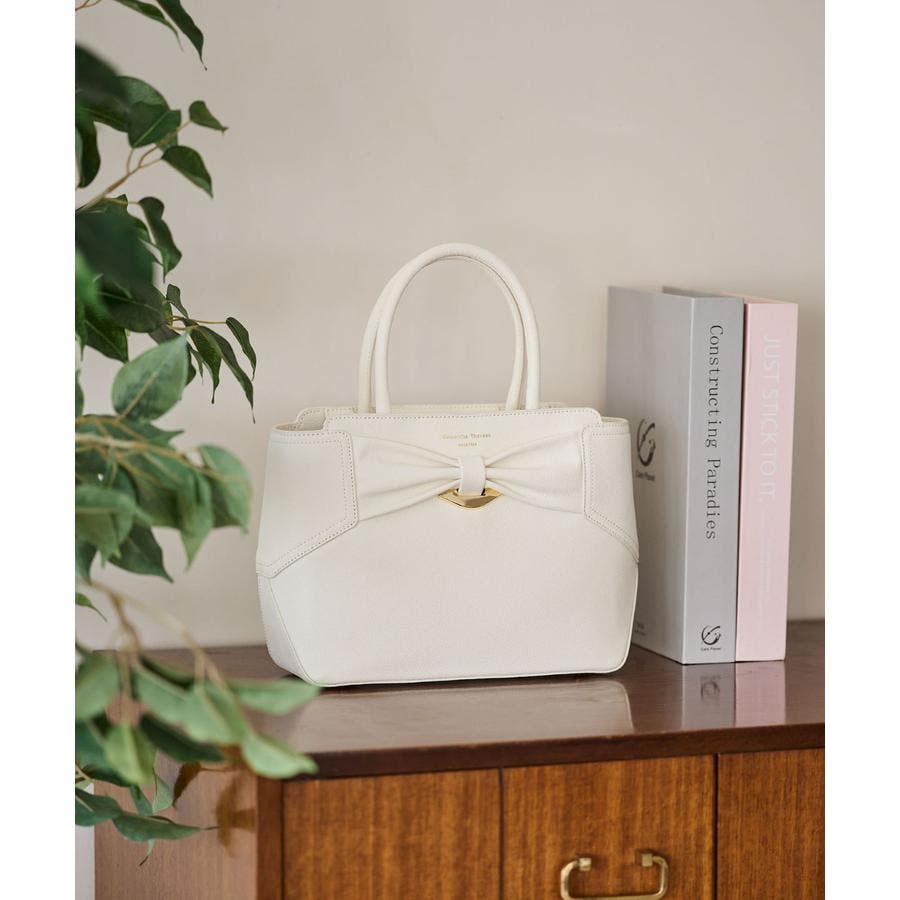 大きめなリボンモチーフがポイントのハンドバッグ。