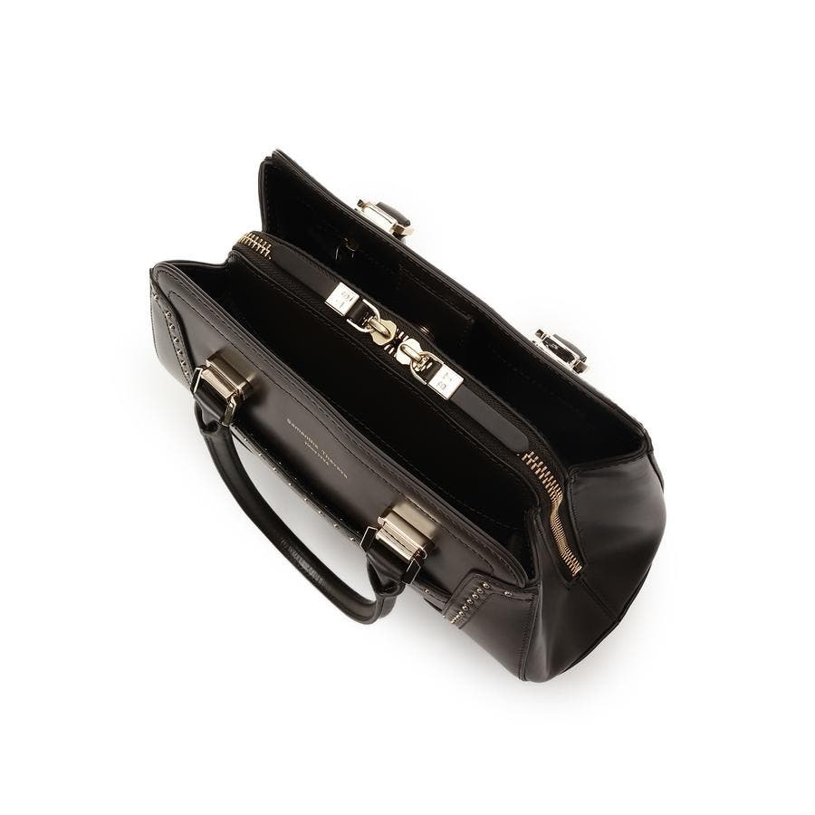 レザーとスタッズのコンビネーションがクールな印象を与えてくれるハンドバッグ。