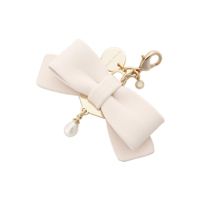 リボンモチーフからさりげなく覗くゴールドの金具とフェイクパールが甘さをとりいれつつも上品な印象に仕上げています。