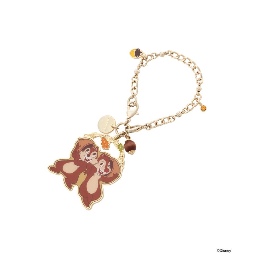 チェーンにはウッドビーズやどんぐりモチーフの金具が輝きます。