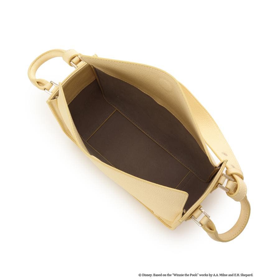 バッグのかぶせには「クリストファー・ロビン」と「プーさん」が仲良く寄り添っているアートを箔押しで表現し遊び心ある仕様になっています。