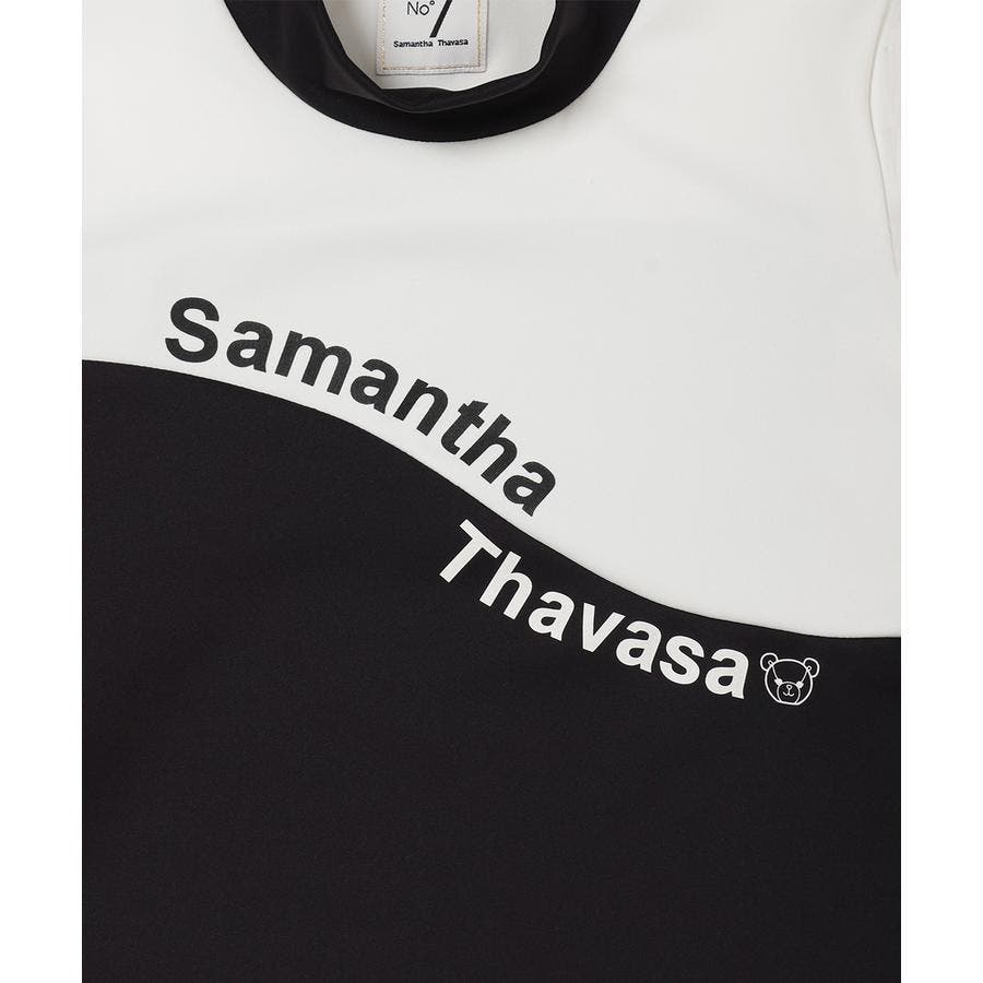 バイカラーデザインにサマンサタバサのロゴがポイントの、スポーティーなモックネック。