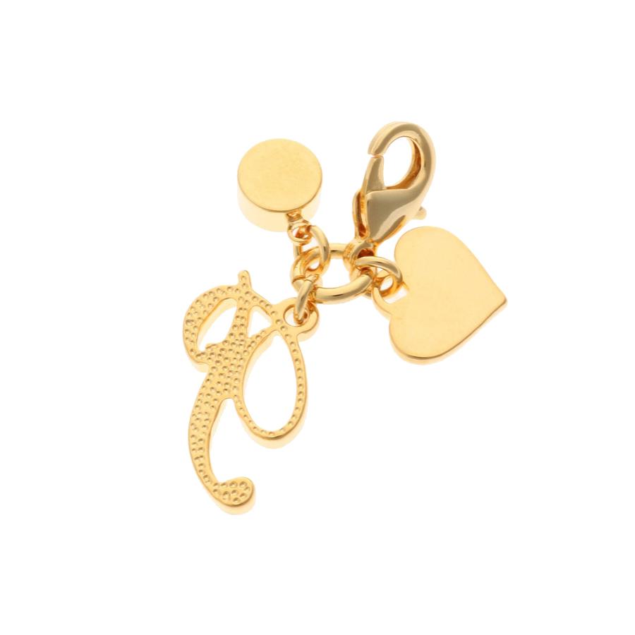 シンプルなイニシャルにストーンを合わせた、上品なファスナーチャーム。