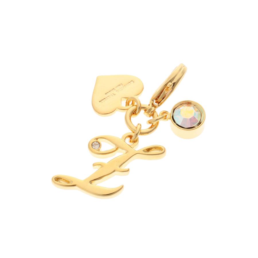 シンプルなイニシャルにストーンを合わせた、上品なファスナーチャーム。