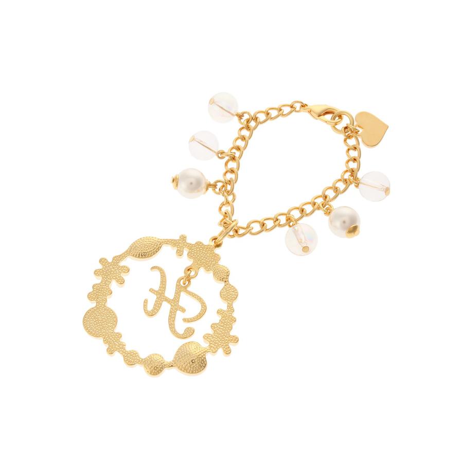 フラワーモチーフに華奢なイニシャルをプラスしたバッグチャーム。