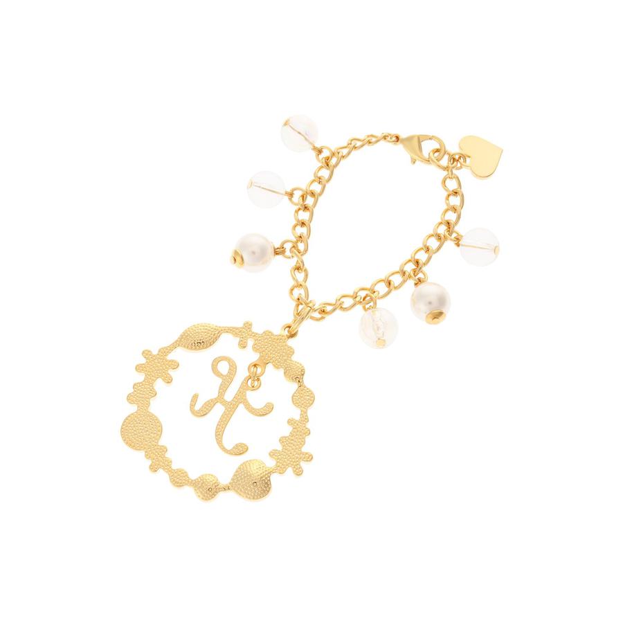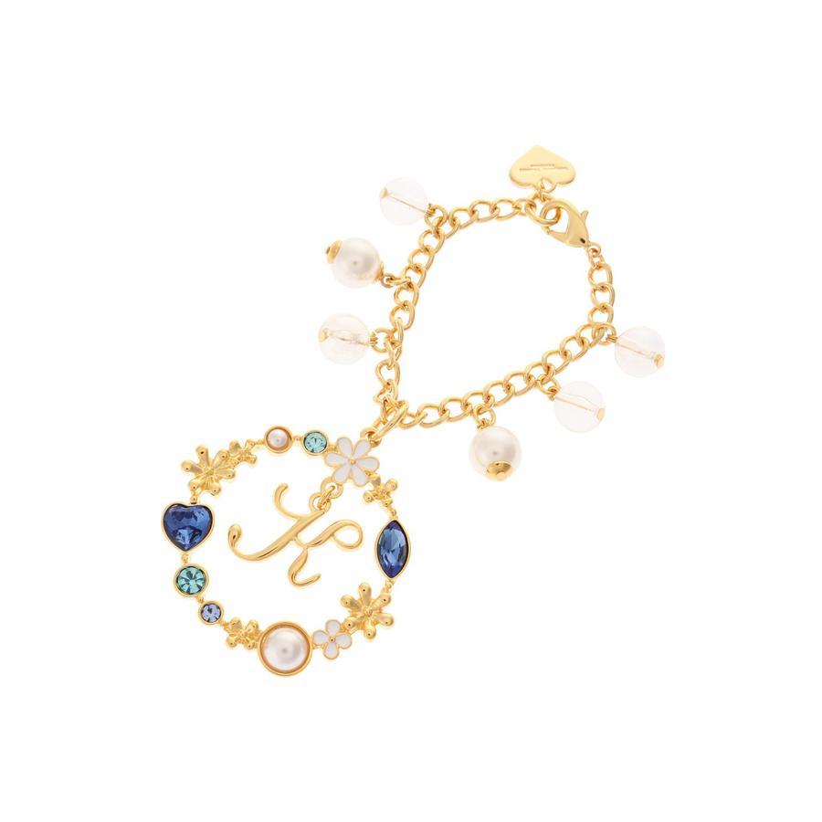 フラワーモチーフに華奢なイニシャルをプラスしたバッグチャーム。