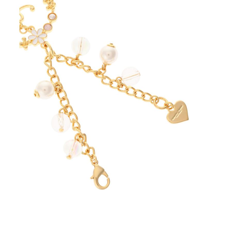 イニシャルの周りにはハートのラインストーンやフラワーモチーフをあしらい、華やかな印象のアイテムです。
