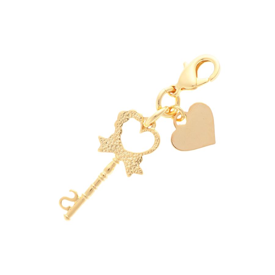 ハート型のキーモチーフにリボンをあしらった可愛らしいアイテム。