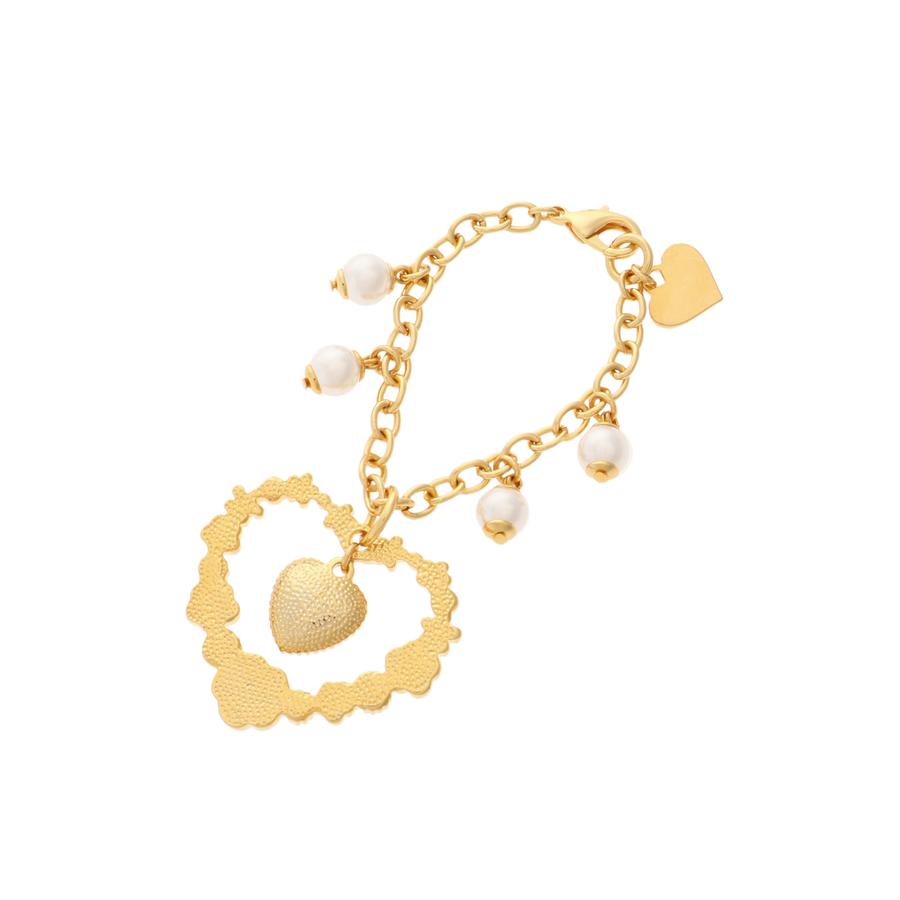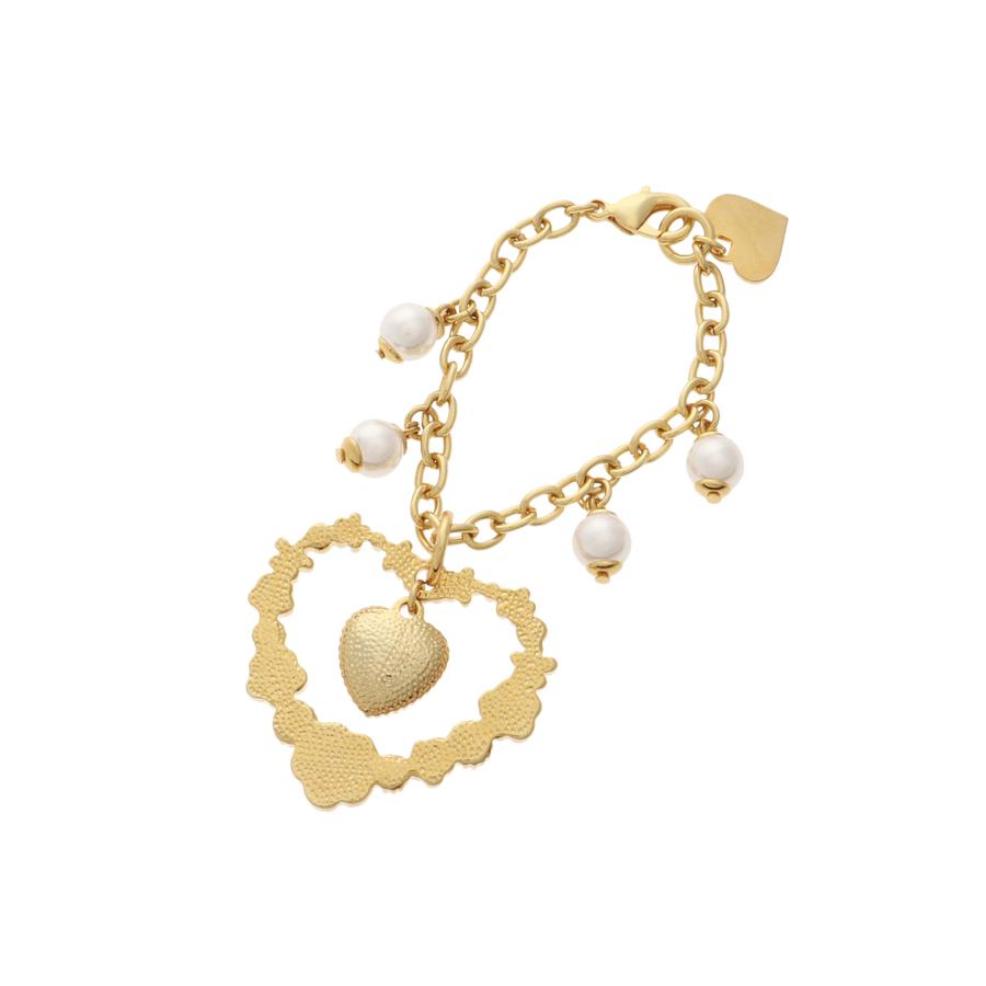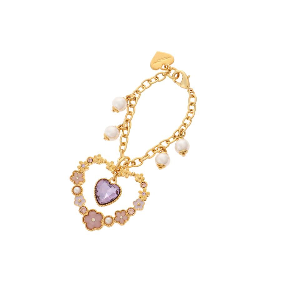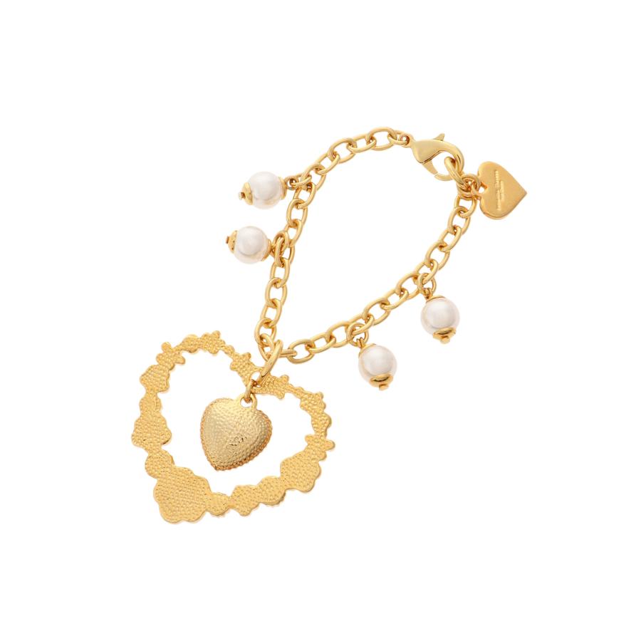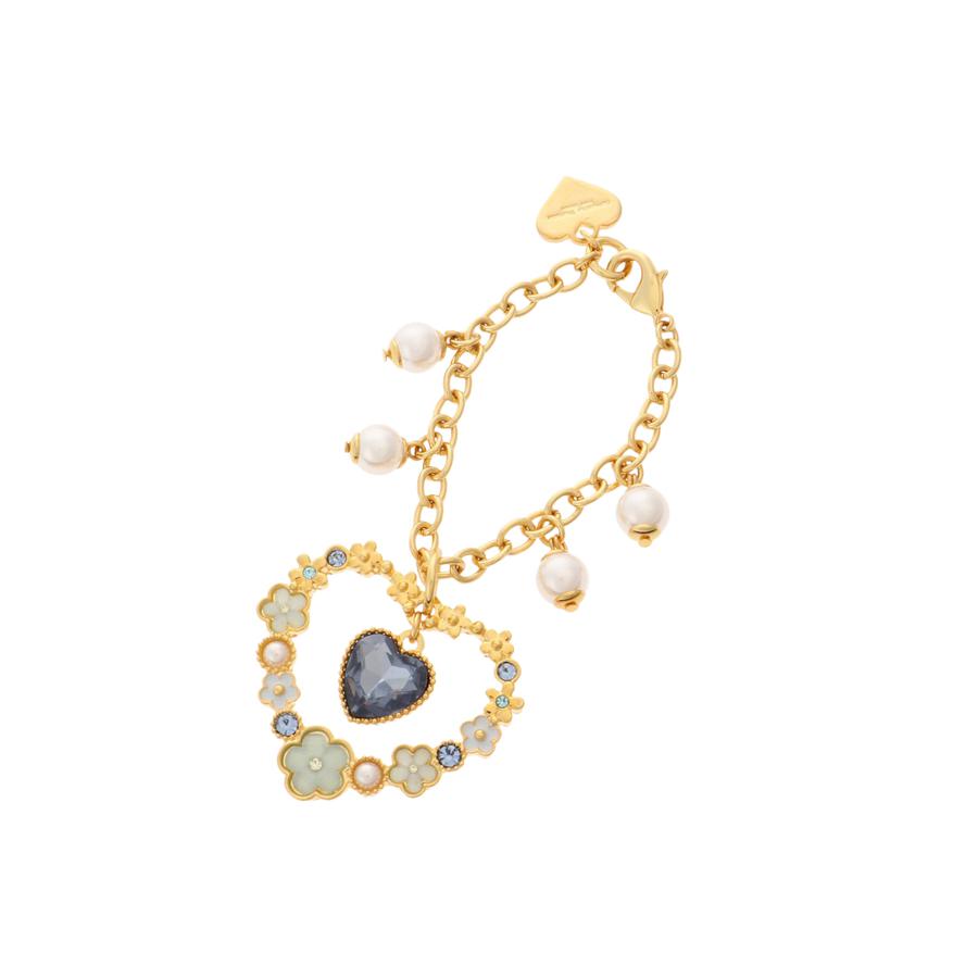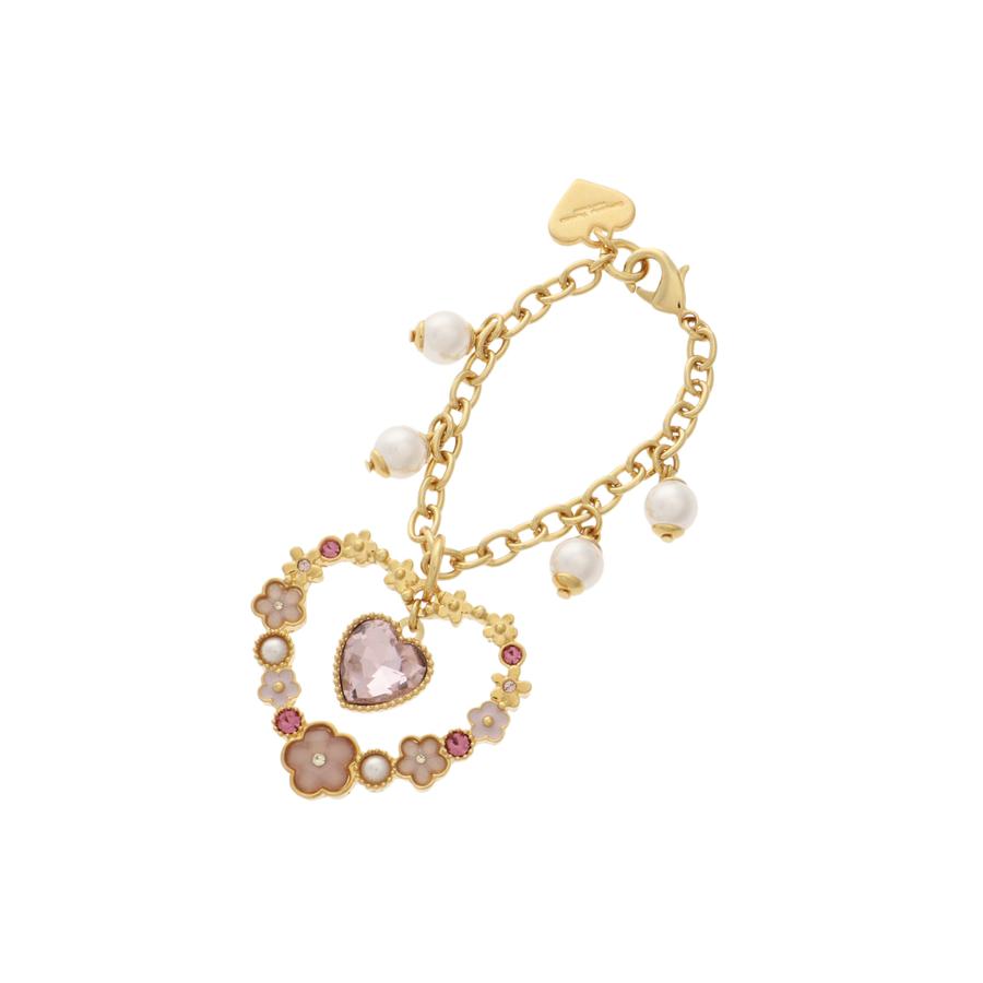 ハート型にお花をデザインした、キュートなバッグチャーム。