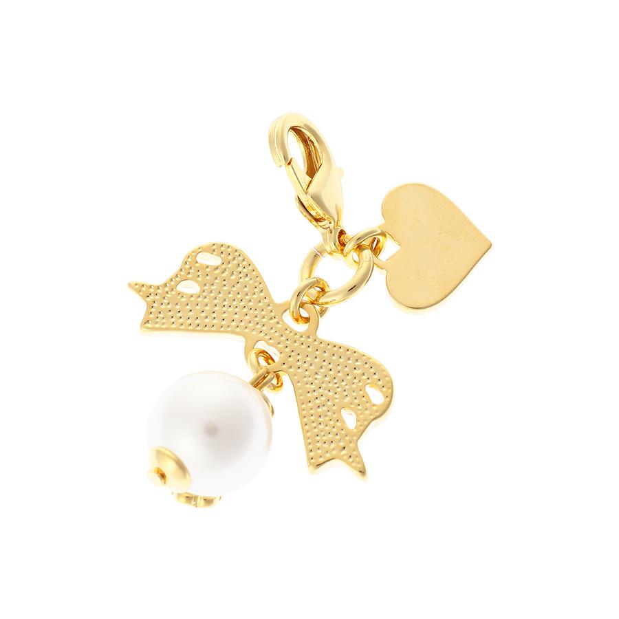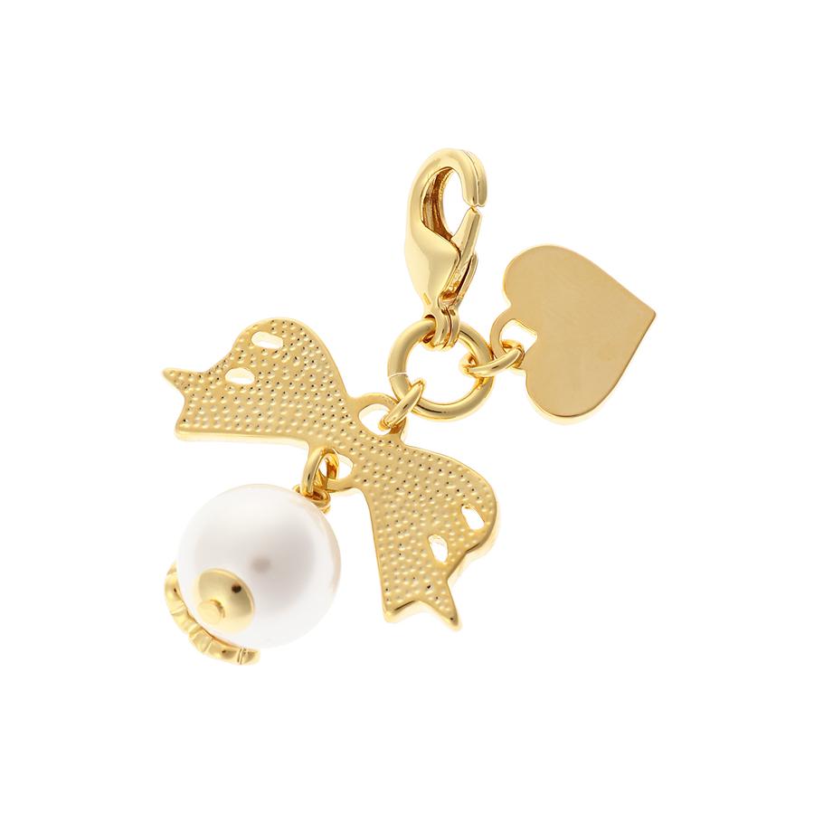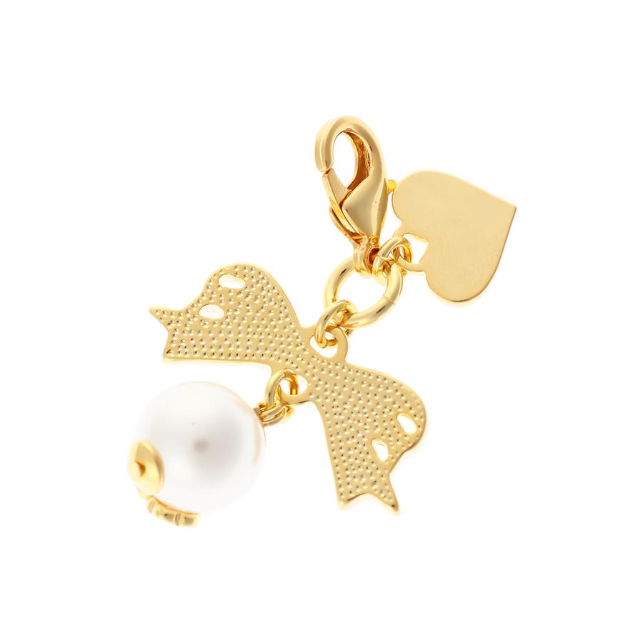 リボン×パールのデザインがキュートなファスナーチャーム。