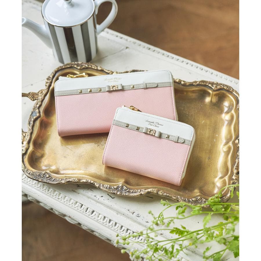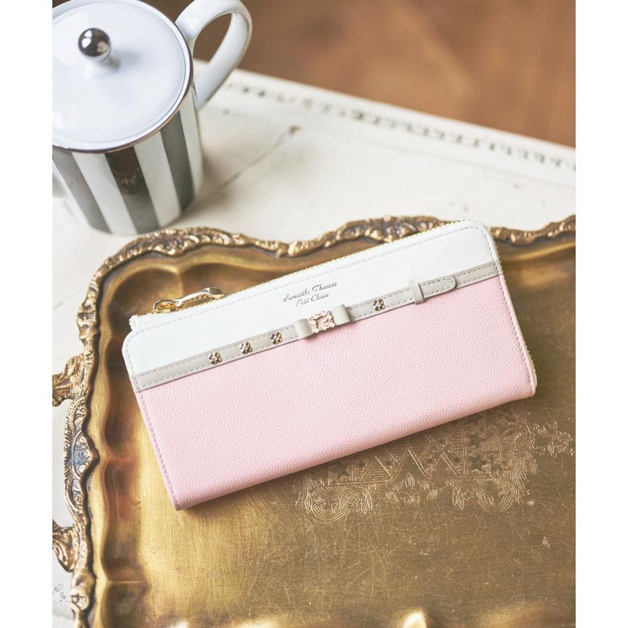 パールストーンをあしらったリボンベルトがキュートな長財布。