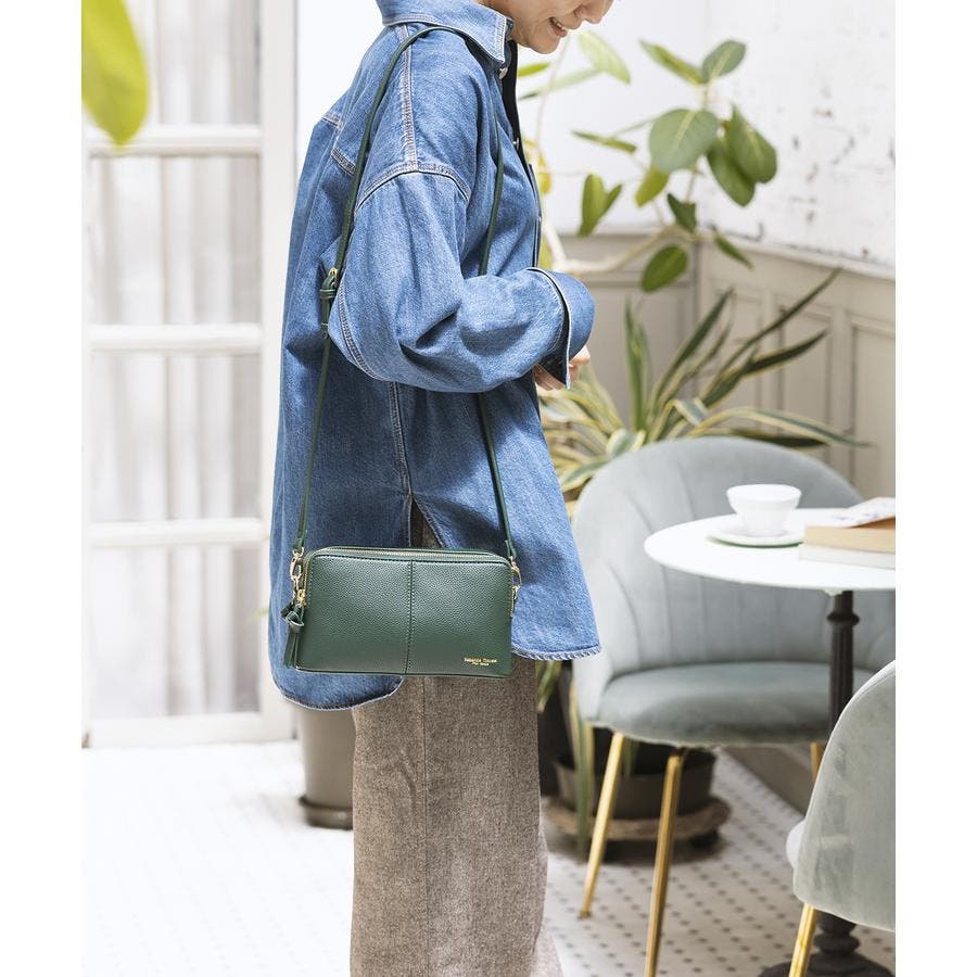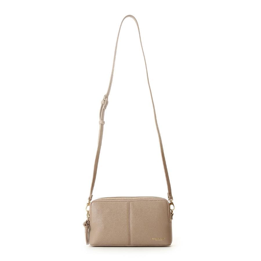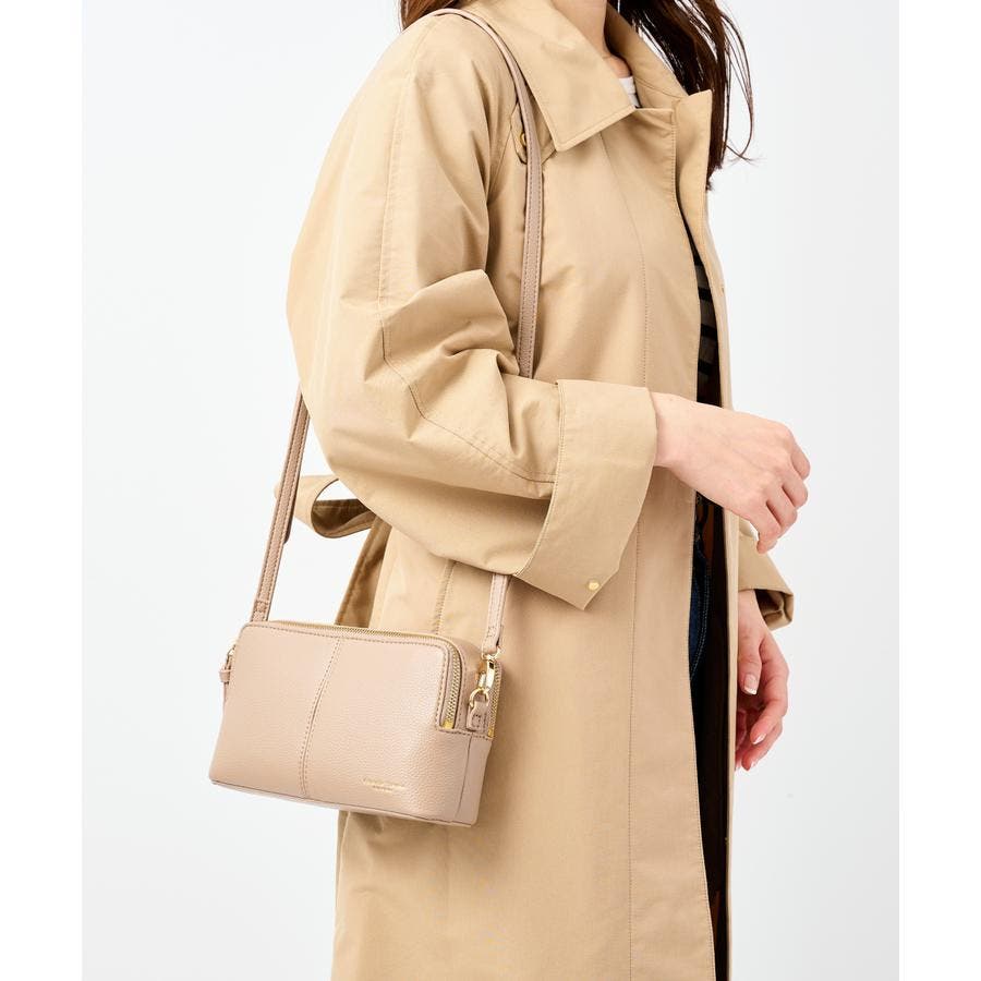 ・センターのステッチがワンポイントの大人可愛いミニショルダーバッグ。