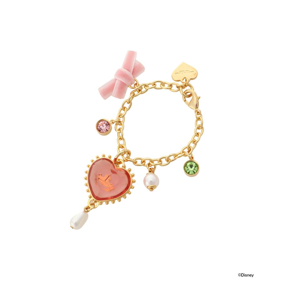 「オーロラ姫」をイメージした柔らかいピンクや、きらりと輝く王冠がポイントのチャーム。