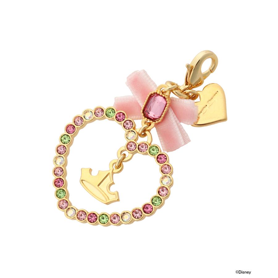 「オーロラ姫」をイメージした柔らかいピンクや、きらりと輝く王冠がポイントのチャーム。