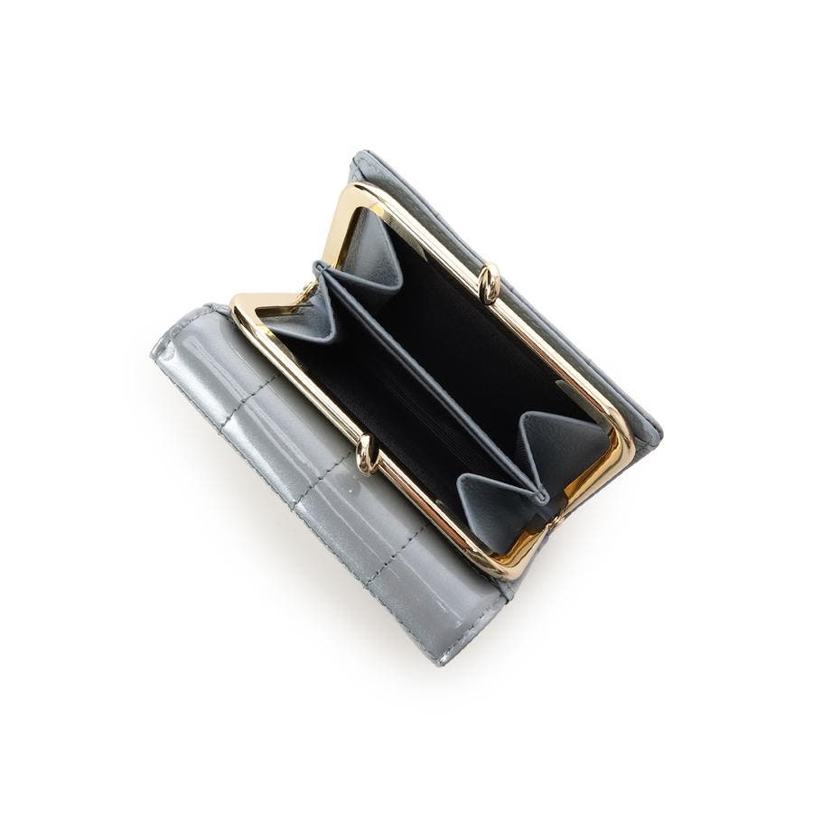 エナメルキルティング がま口折財布