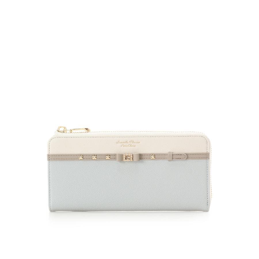 パールストーンをあしらったリボンベルトがキュートな長財布。