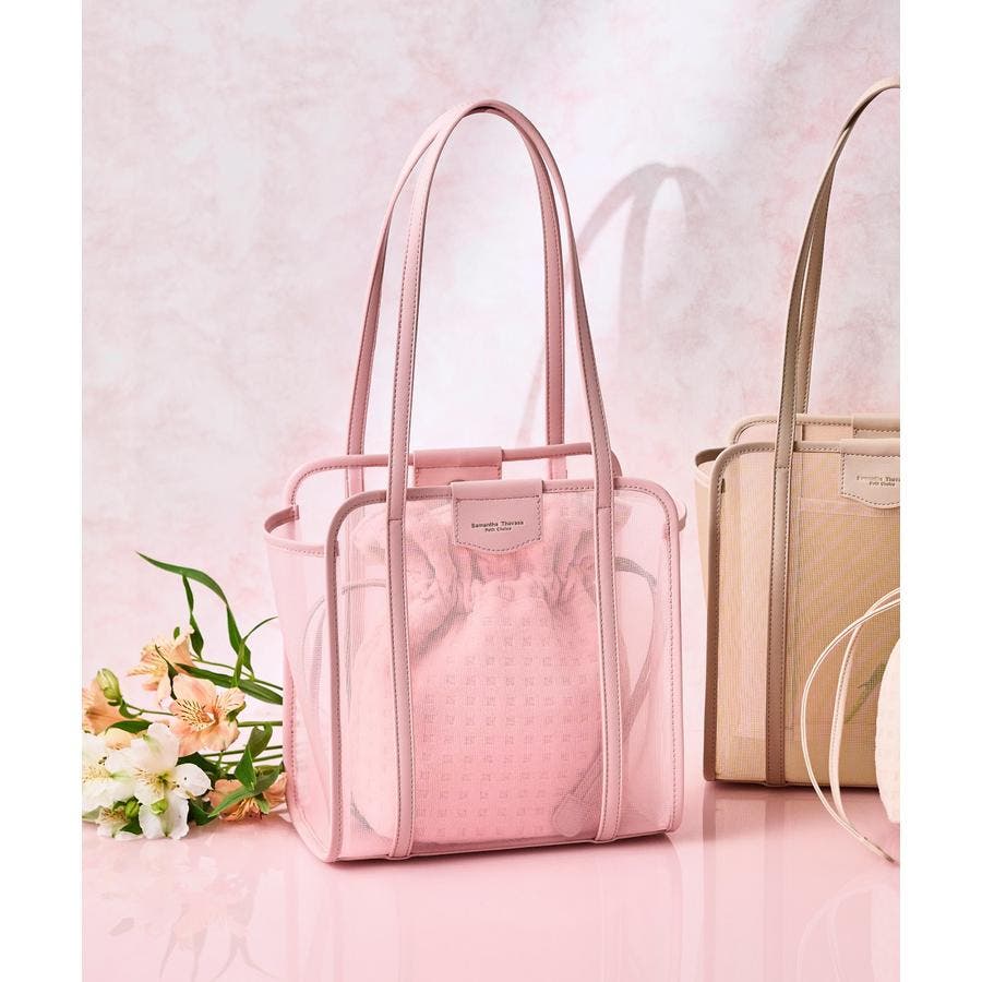 ・涼しげな透け感のあるチュール素材を使用したトートバッグ。