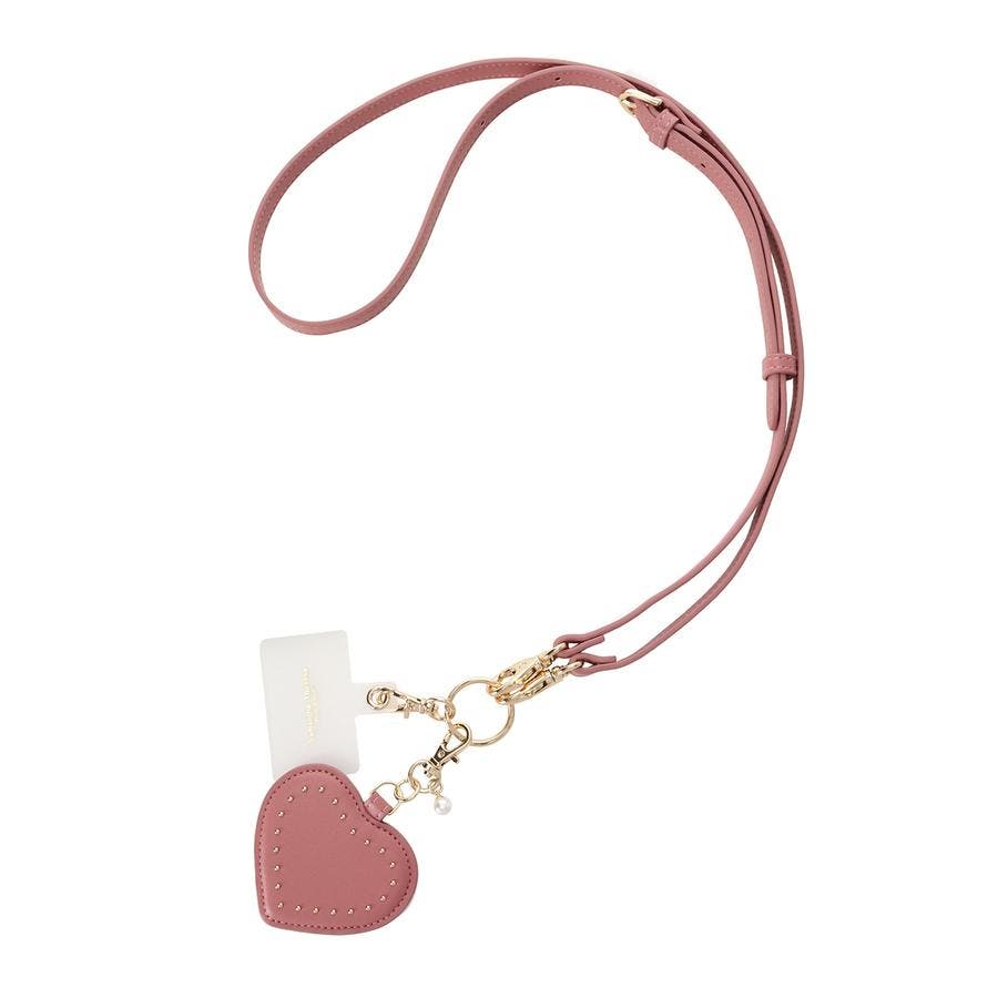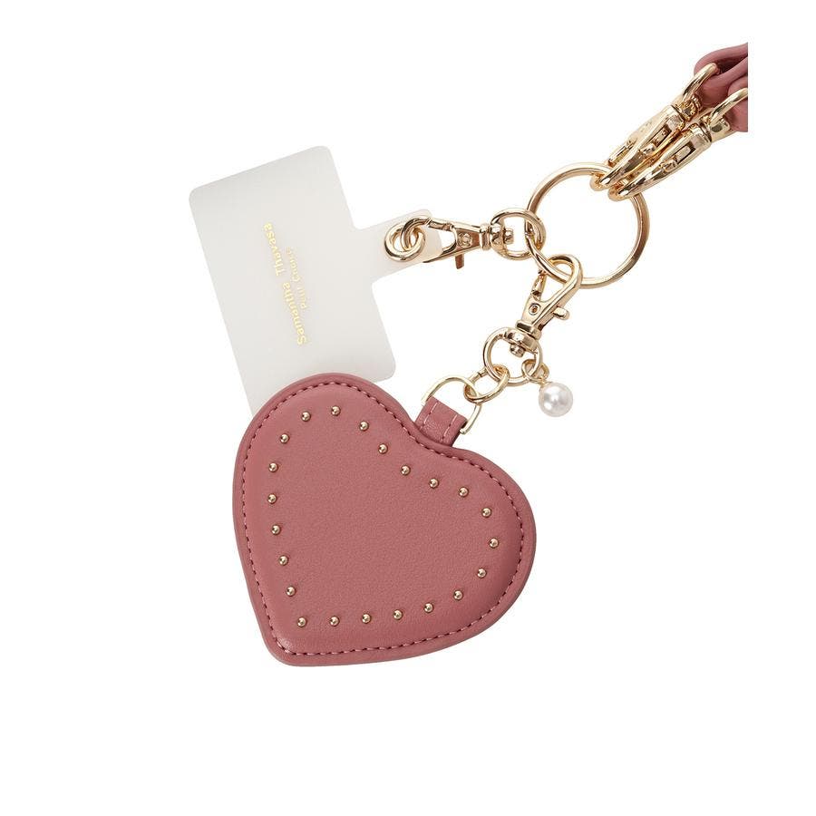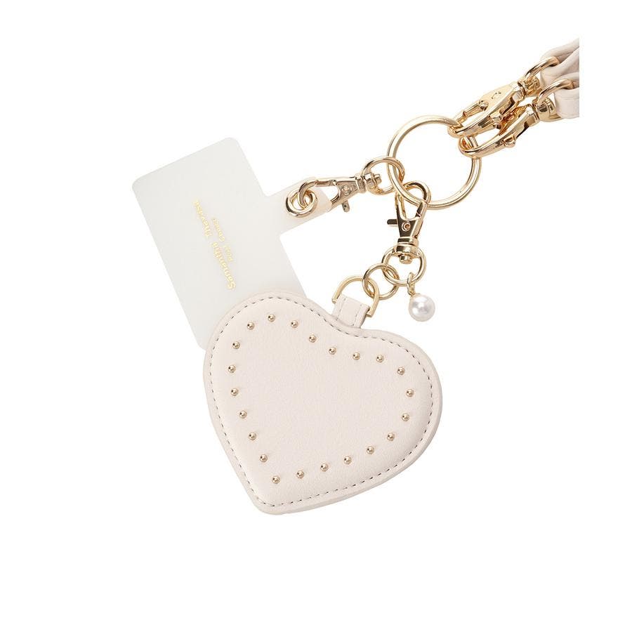 ハートモチーフのキュートなスマホストラップ。