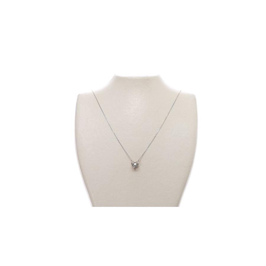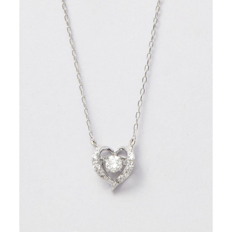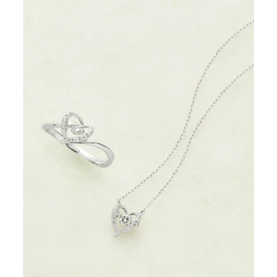 小ぶりなダイヤモンドがあしらわれたハートの空間に、ダイヤモンドが宙に浮いてるようにセットされています。